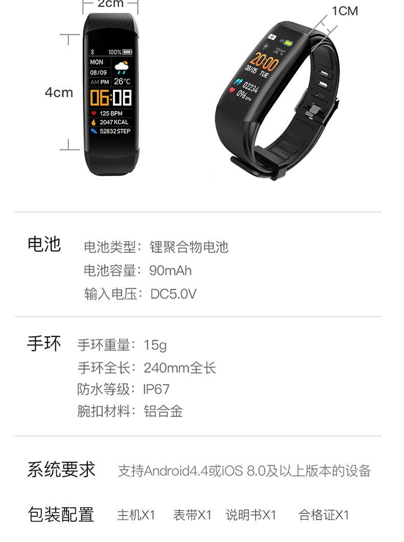 Smart bracelet watch large color screen Waterproof Digital men's and women's Neutral monitoring blood pressure heart rate exercise pedometer multi-function