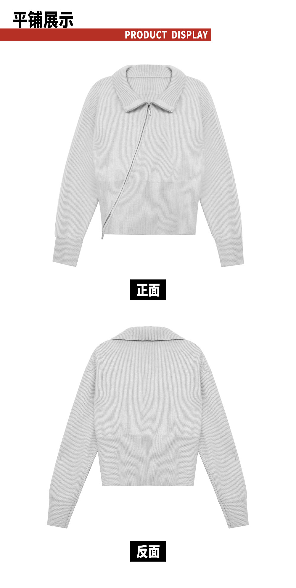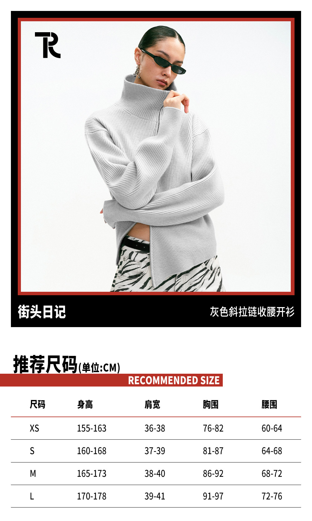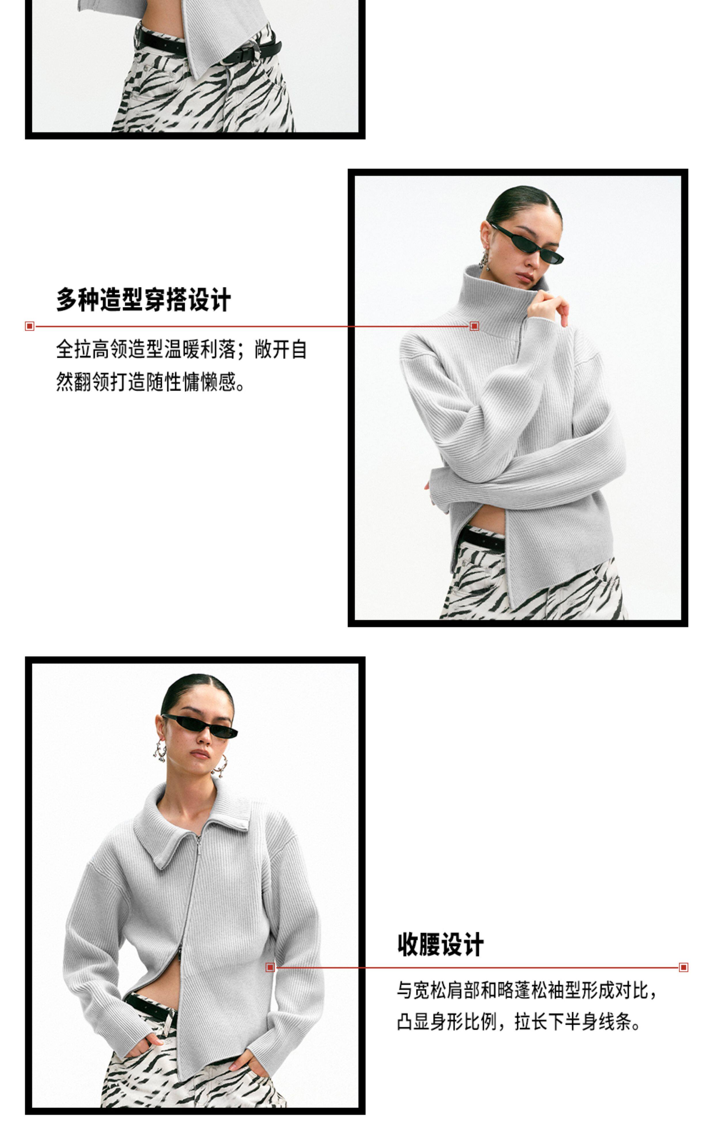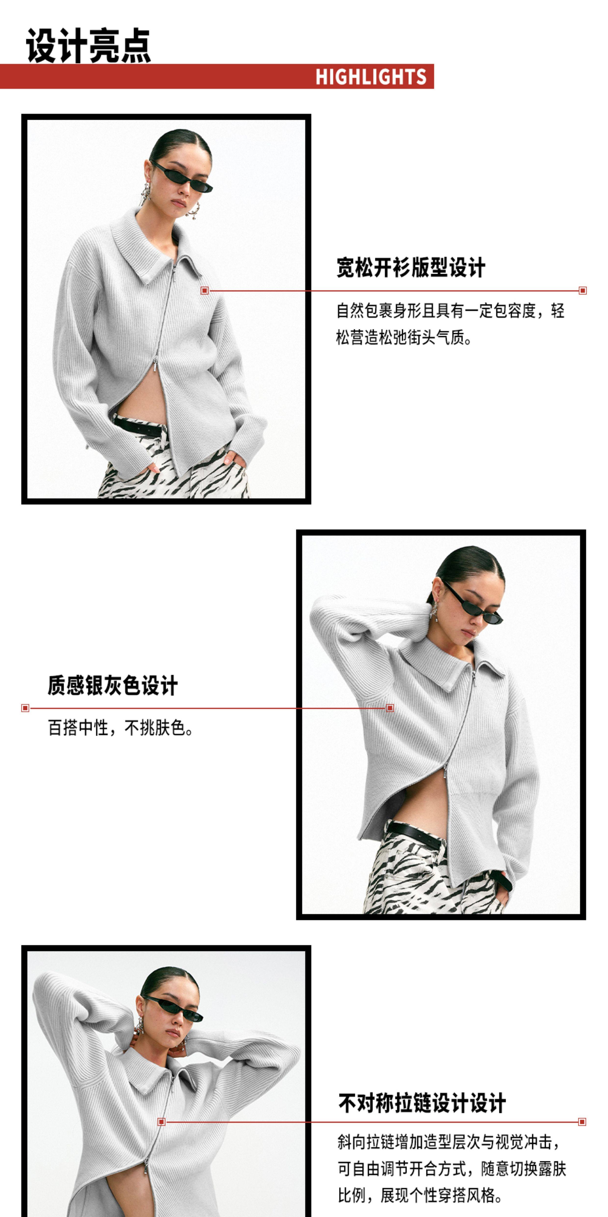 Tr She's Hot Street Diary Gray Diagonal Zipper Vintage Slimming Waist-Cinching Versatile Knitted Cardigan Outerwear