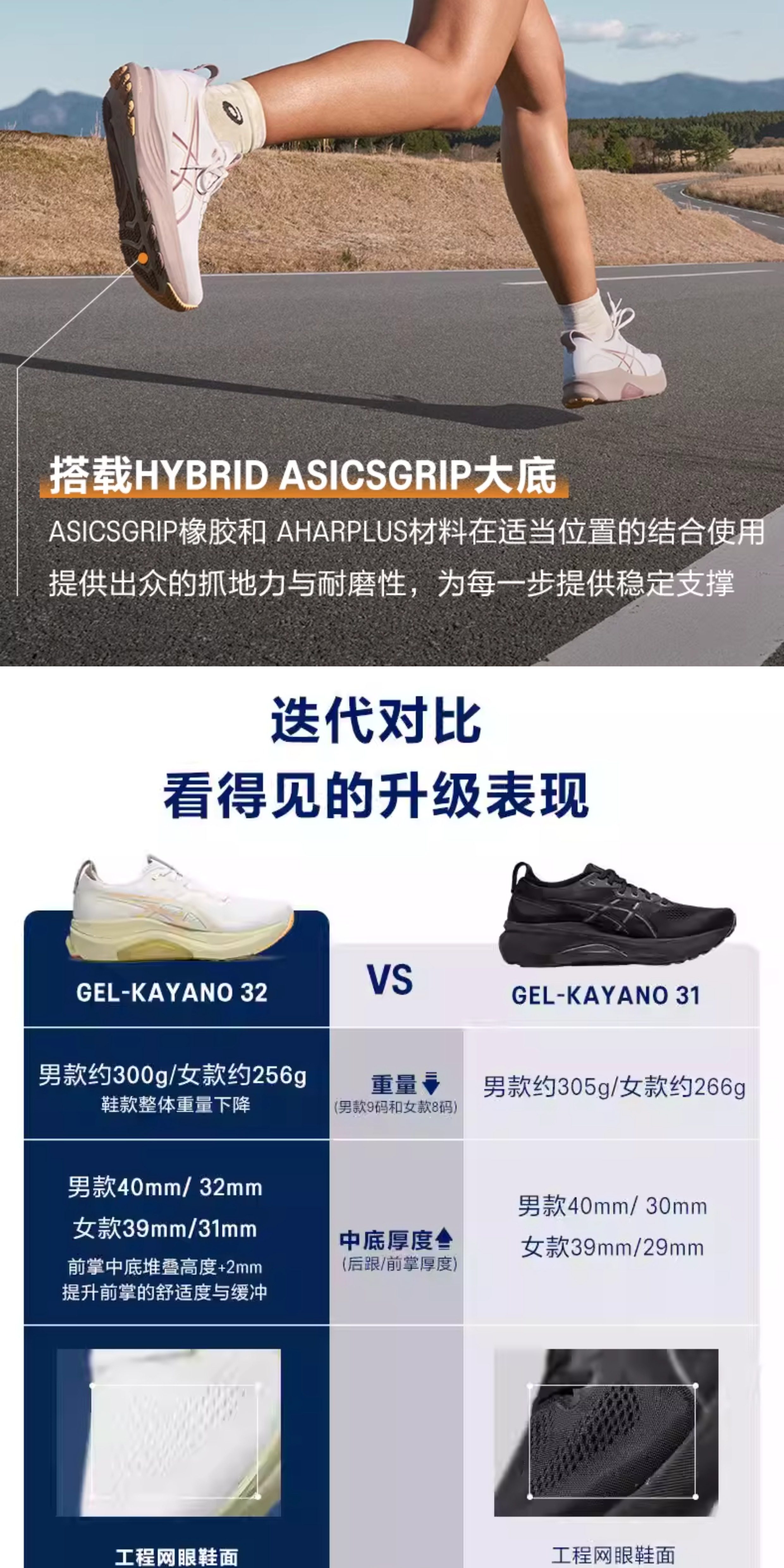 Asics New Gel-Kayano 32 Women's Stable Support Running Shoes, Breathable and Comfortable Sports Shoes
