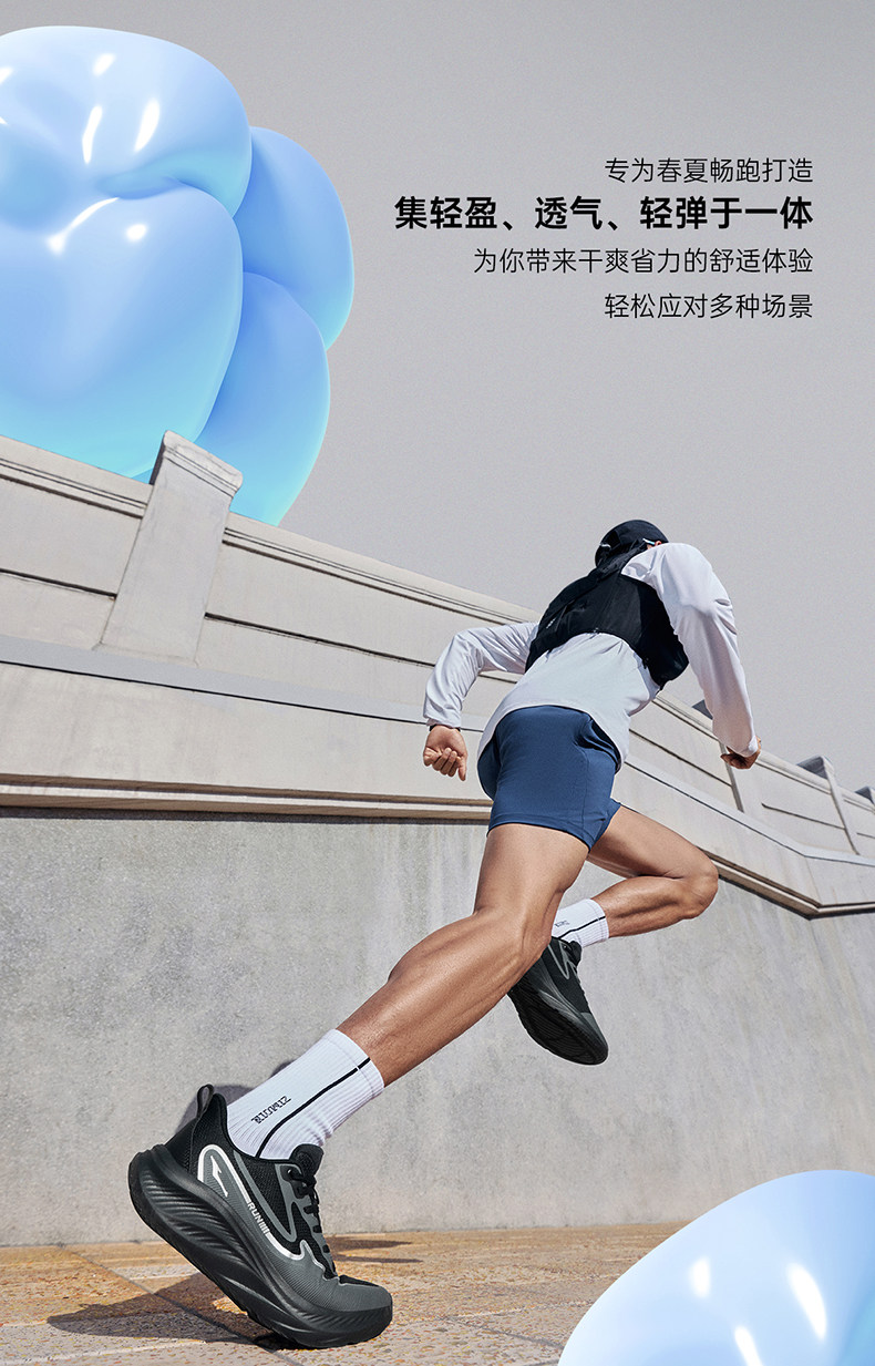 Yunyi 2 Hongxing Erke Men's Running Shoes, New Summer Model, Soft Sole, Wear-Resistant Sports Shoes, Shock-Absorbing, Lightweight Men's Running Shoes
