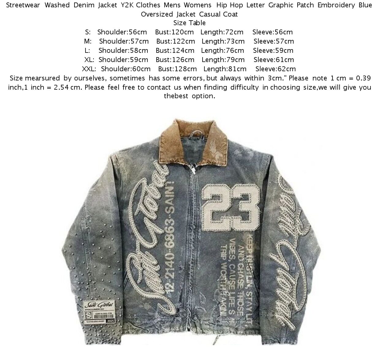 Streetwear Washed Denim Jacket Y2K Clothes Mens Womens Hip H