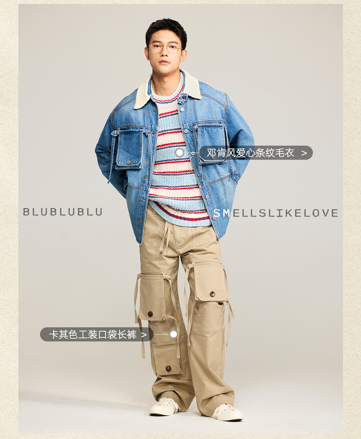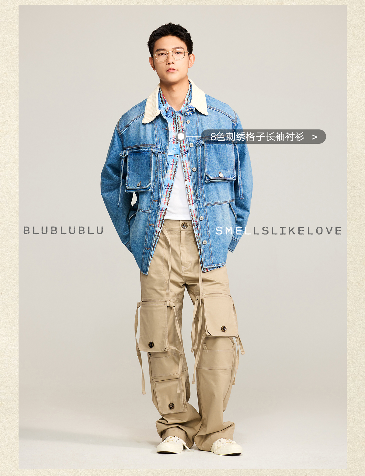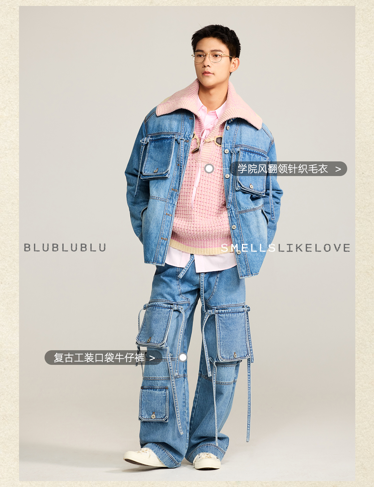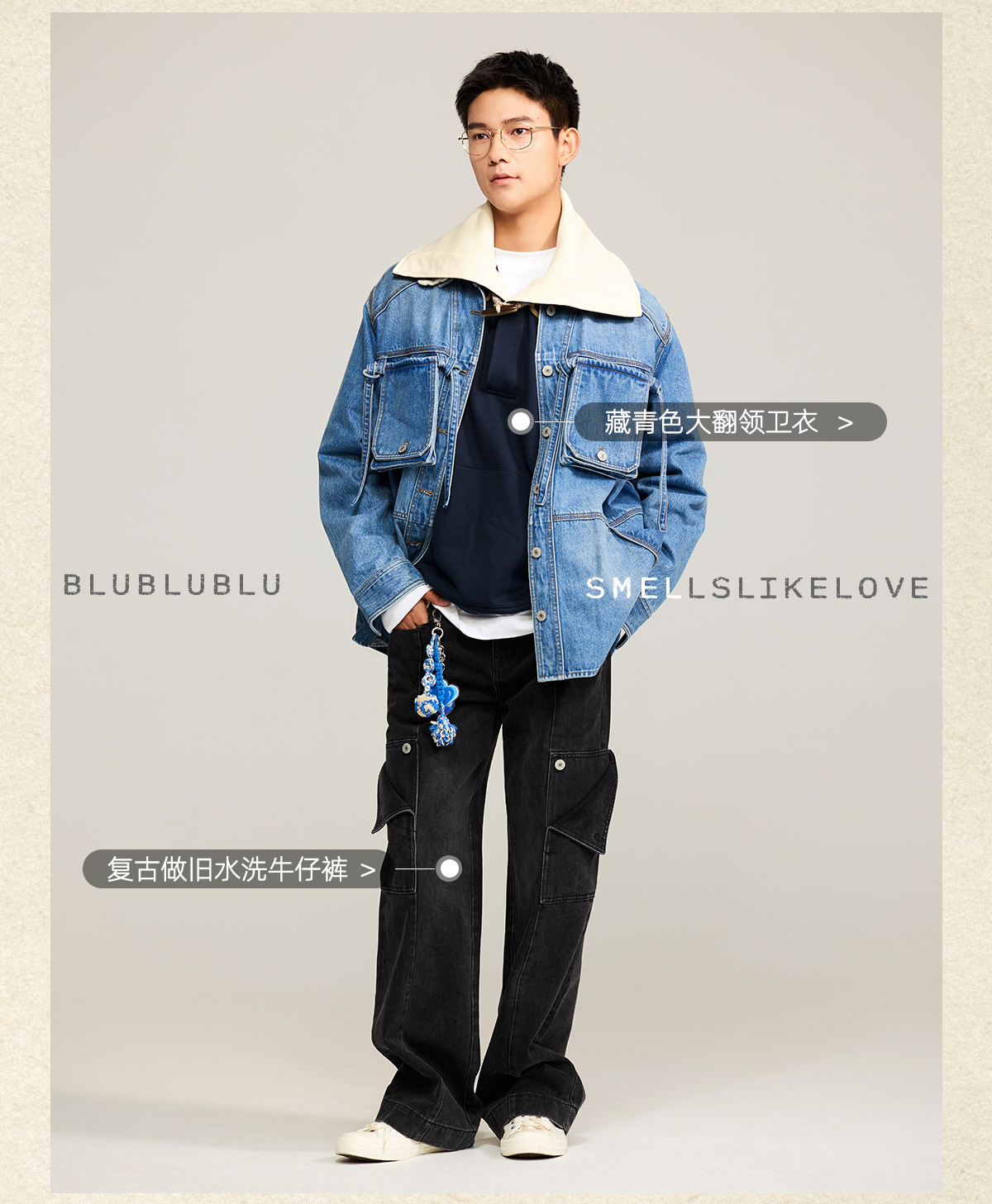 Blublublu Niche Design Men's Workwear Style Retro Denim Jacket Autumn and Winter Distressed Washed Loose Jacket