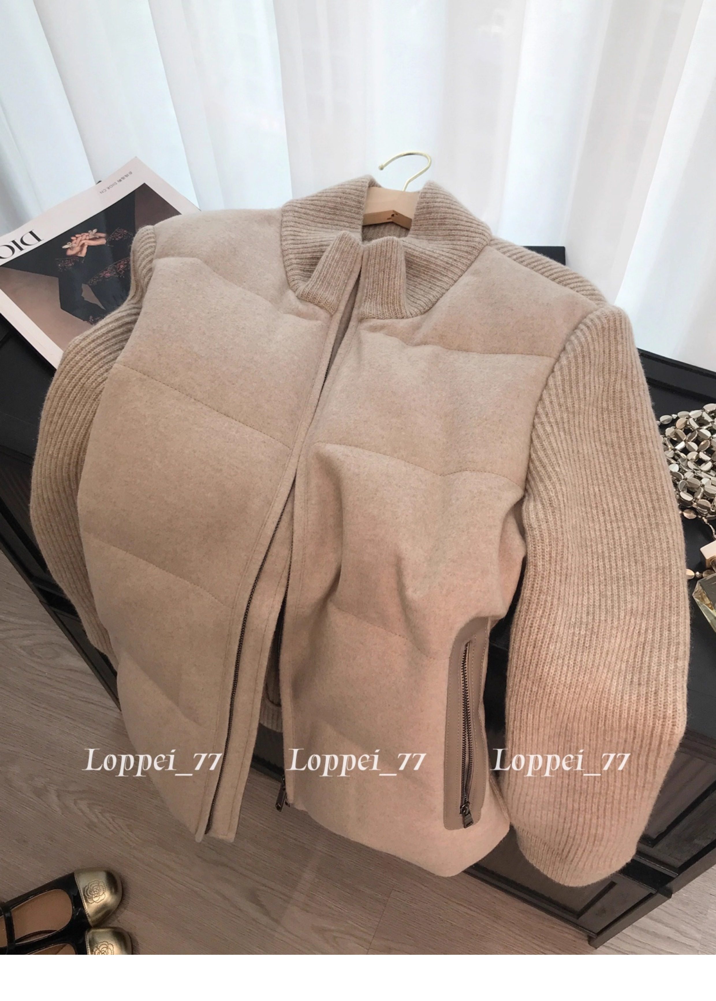 Retro Stand-Up Collar Knitted Patchwork Cotton Jacket for Women, New Winter Style, High-End, Fashionable, Warm, Slimming and Versatile Cotton Jacket