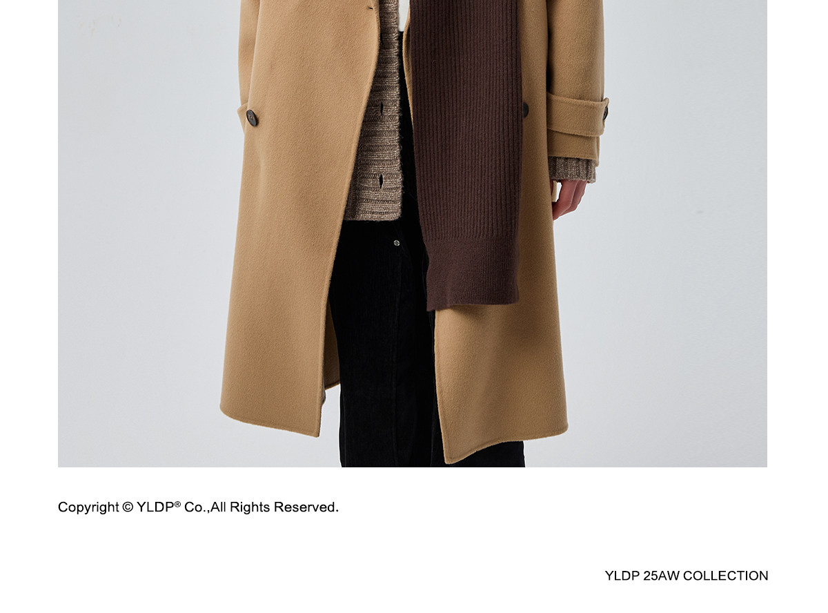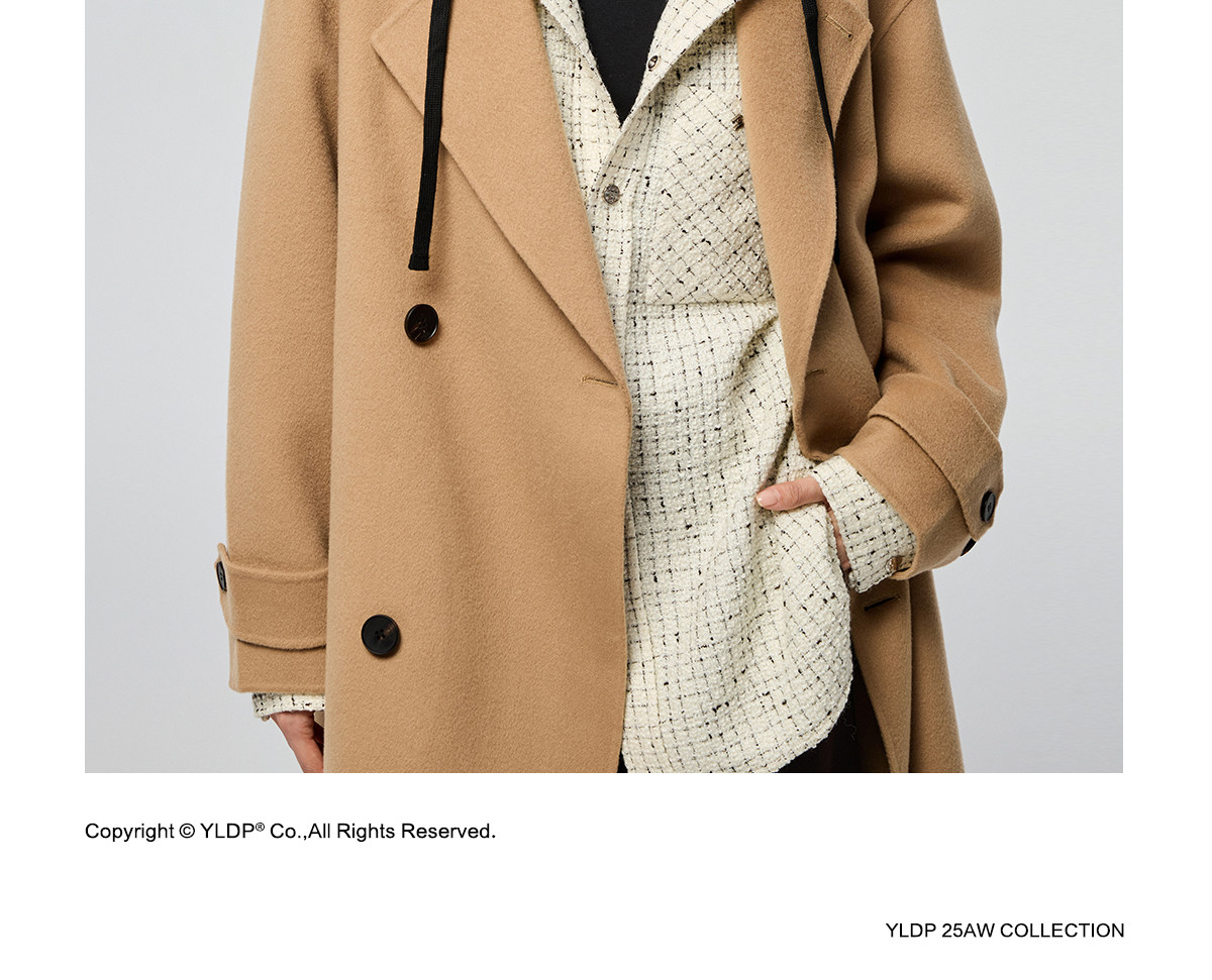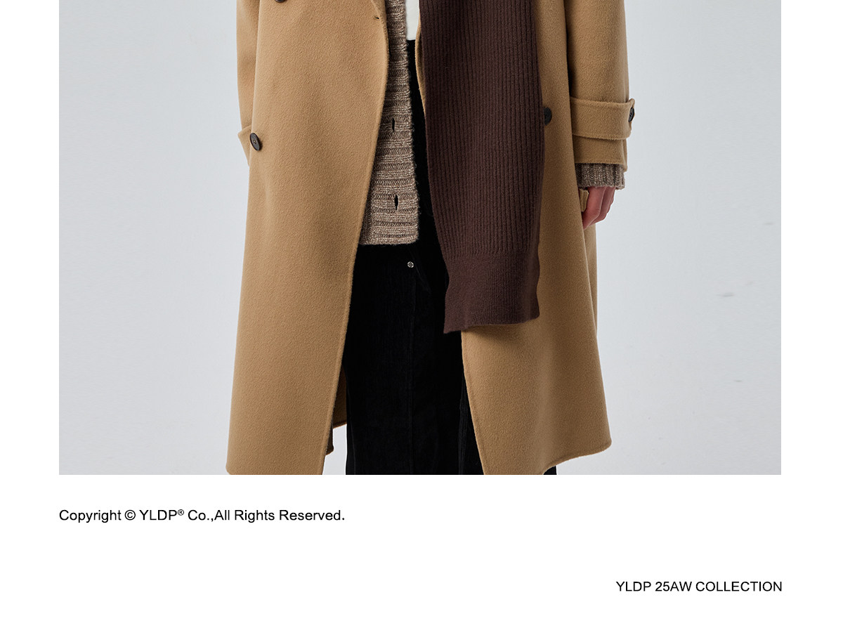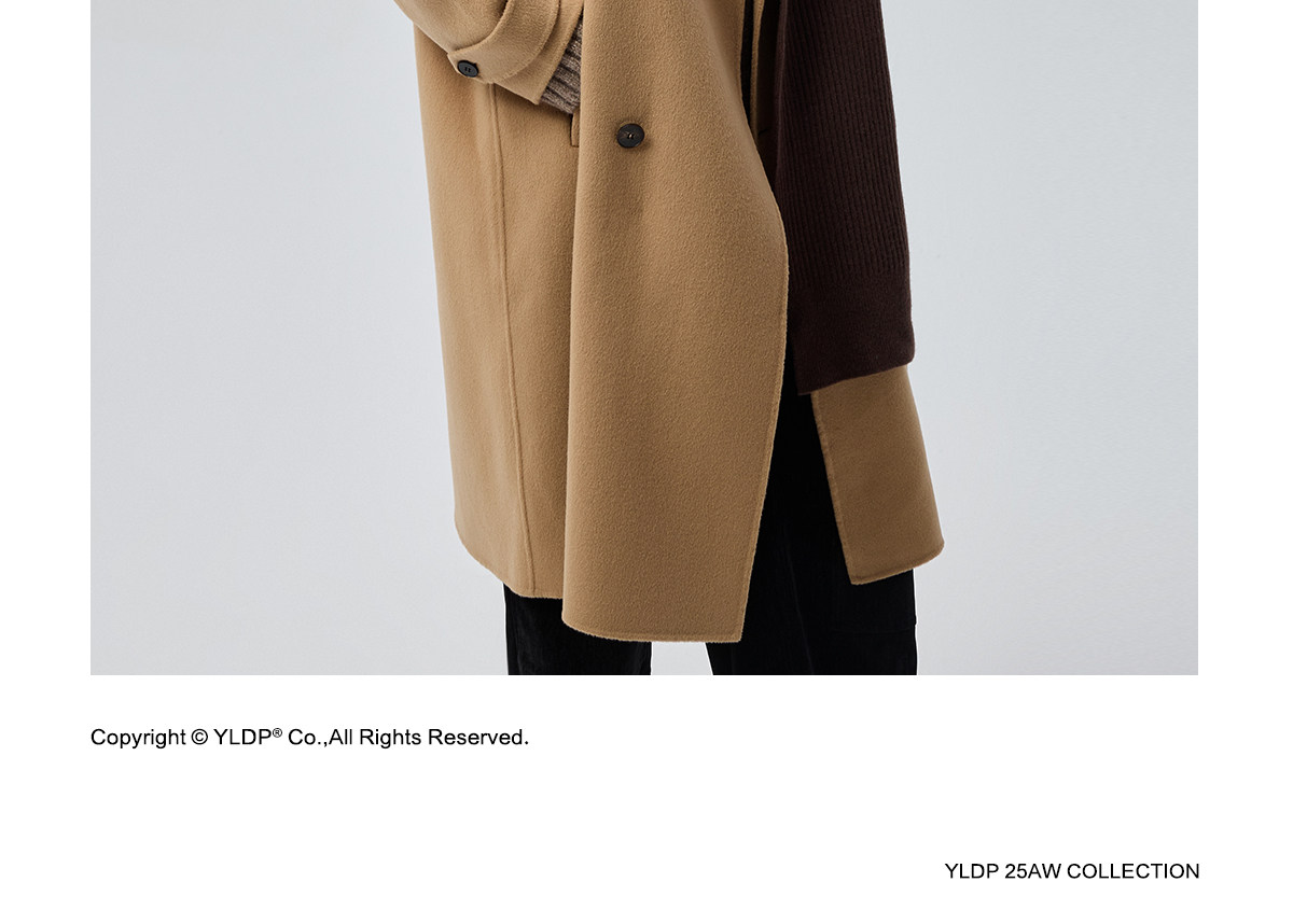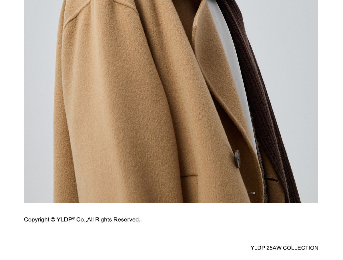 Yldp Ma Jiaqi Style Melard Double-Breasted Lapel Double-Sided Wool Coat Mid-Length Woolen Overcoat