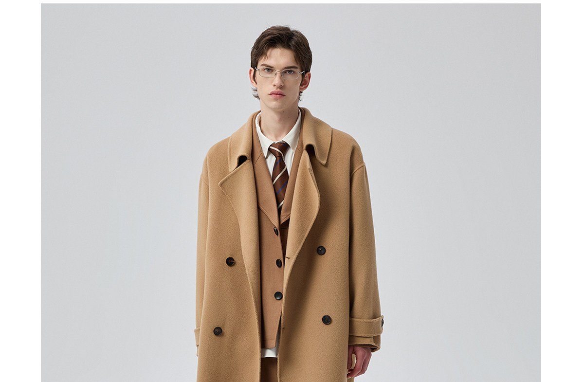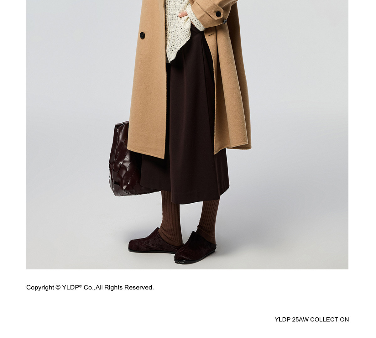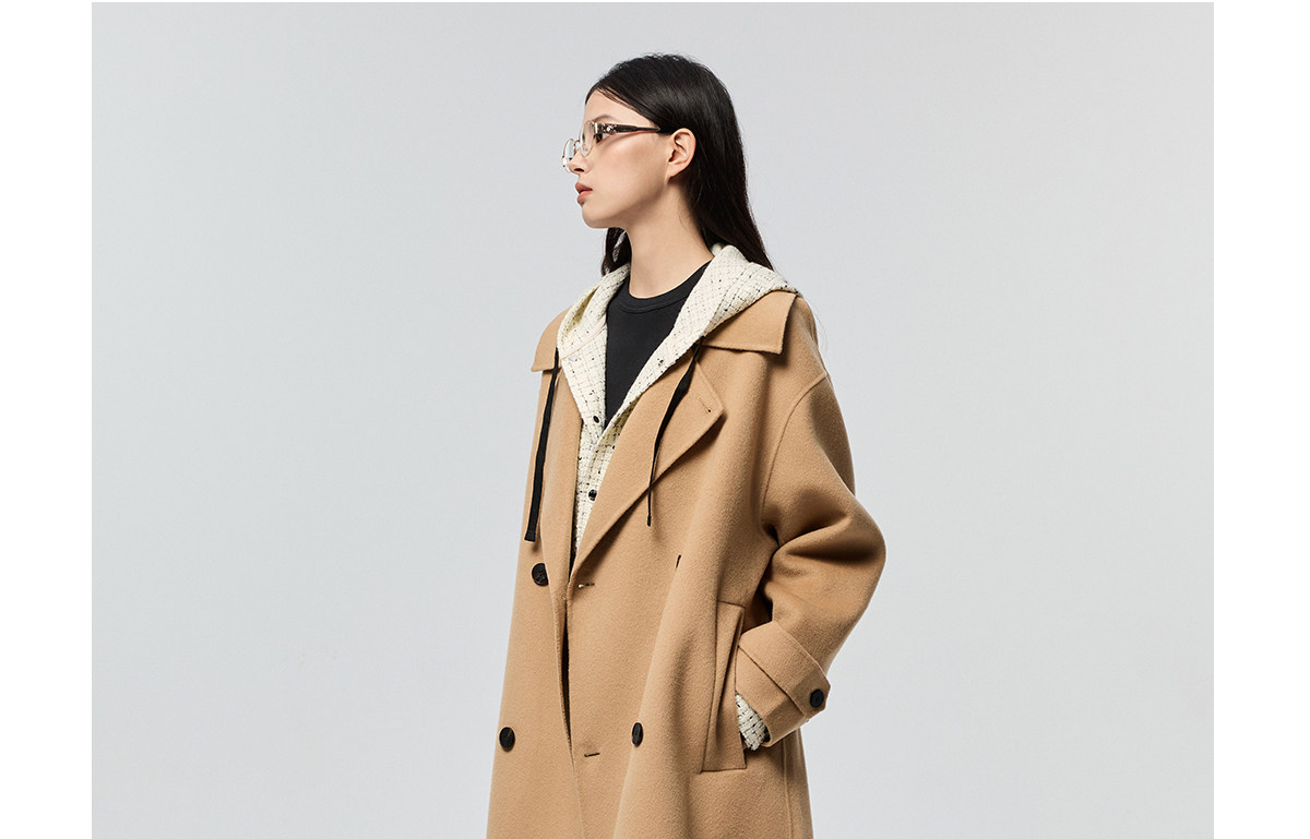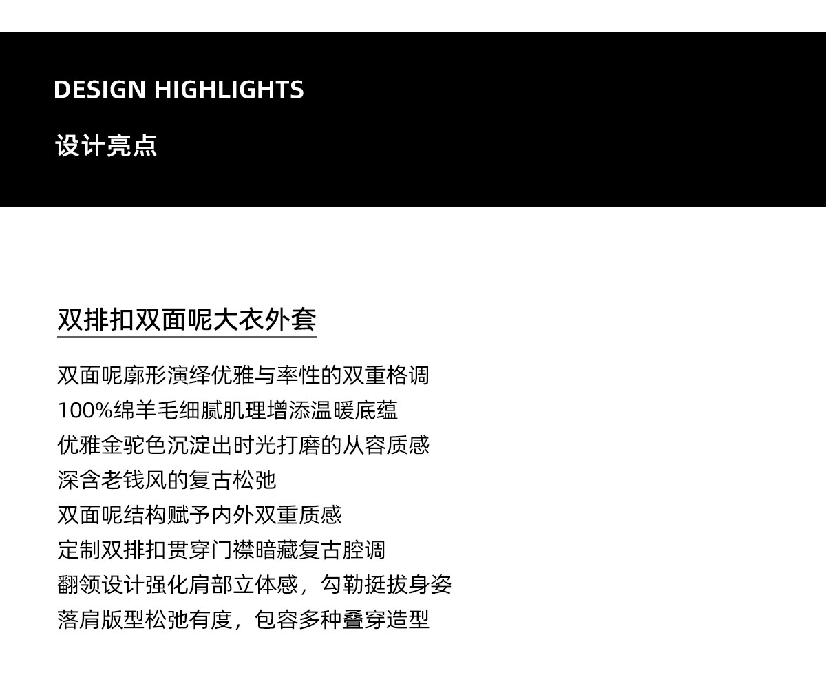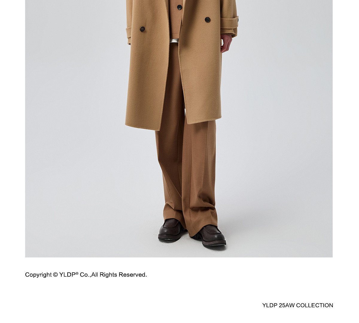 Yldp Ma Jiaqi Style Melard Double-Breasted Lapel Double-Sided Wool Coat Mid-Length Woolen Overcoat