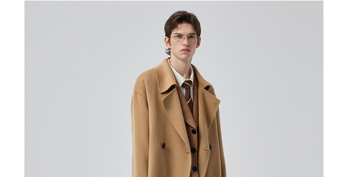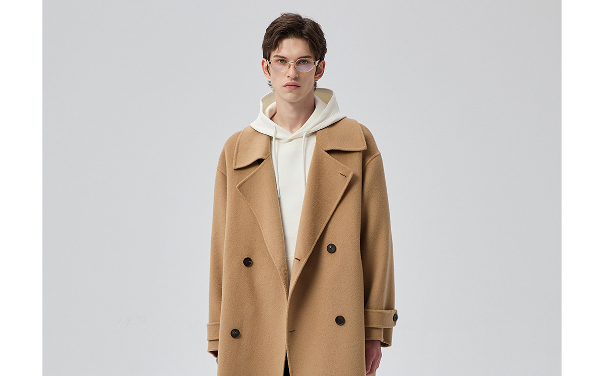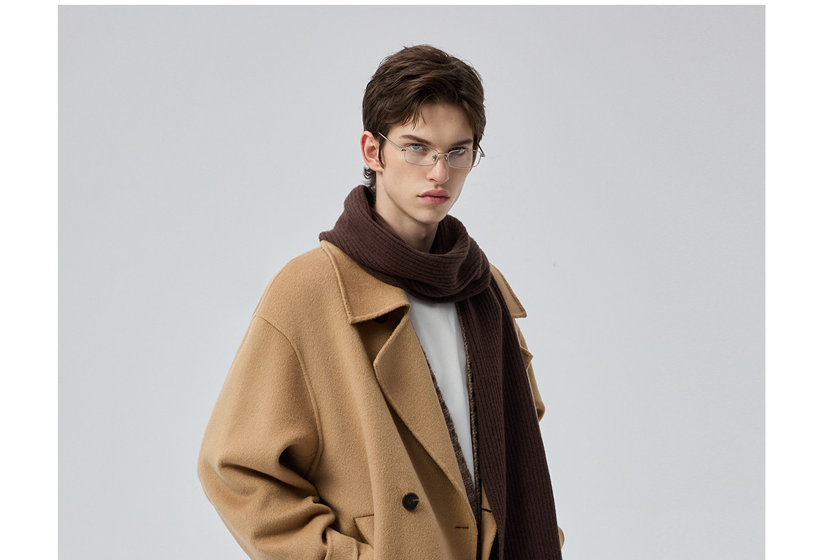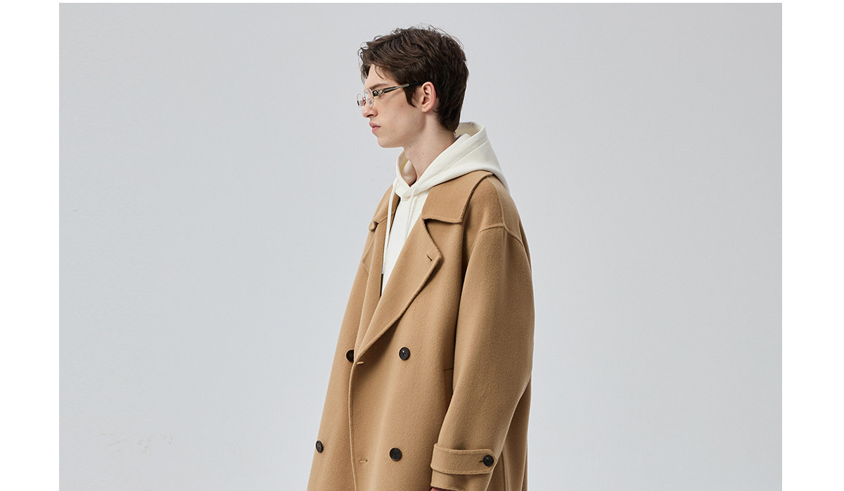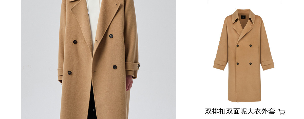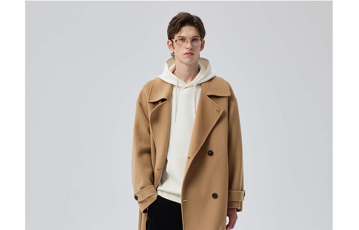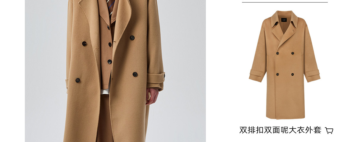 Yldp Ma Jiaqi Style Melard Double-Breasted Lapel Double-Sided Wool Coat Mid-Length Woolen Overcoat