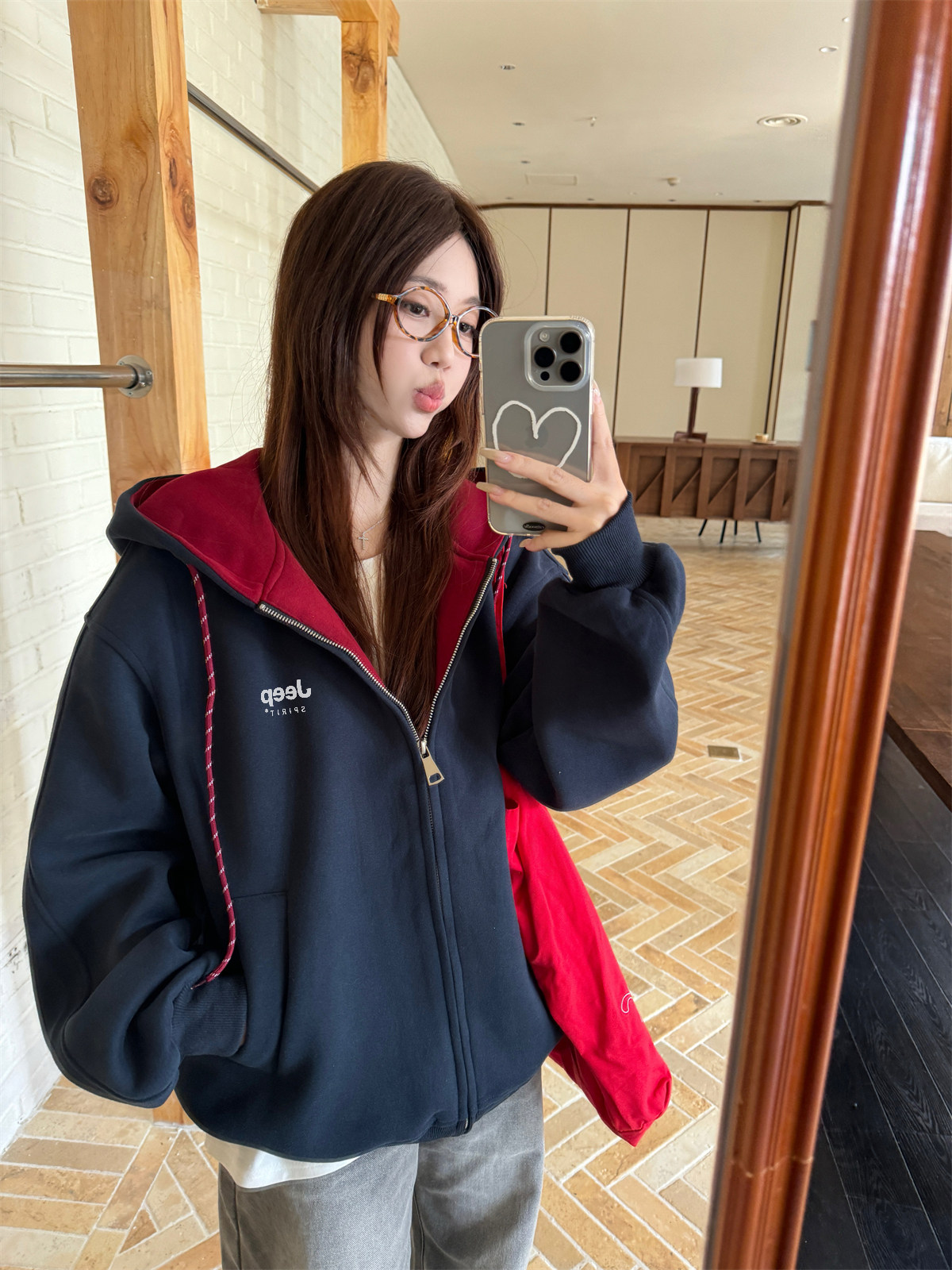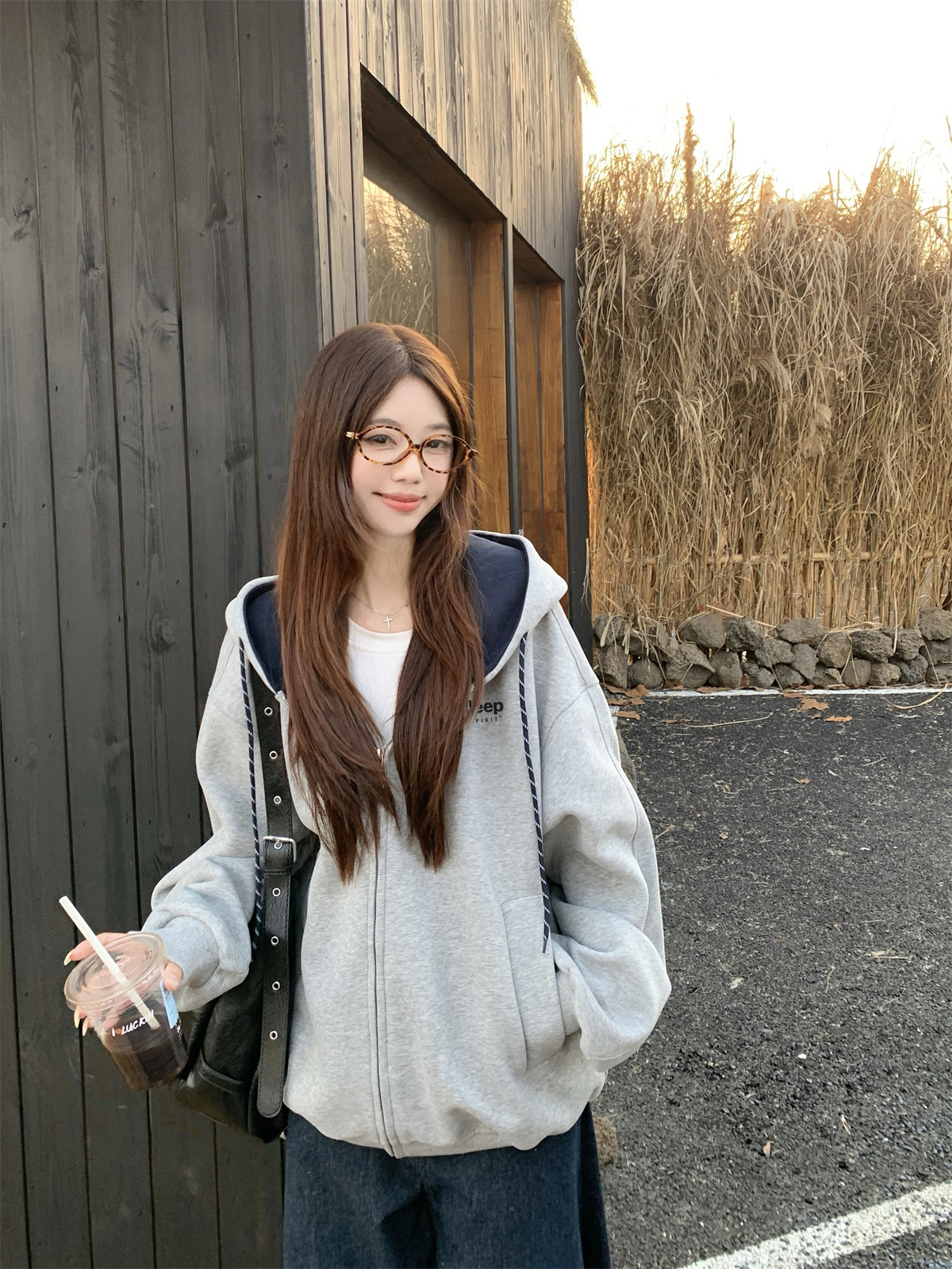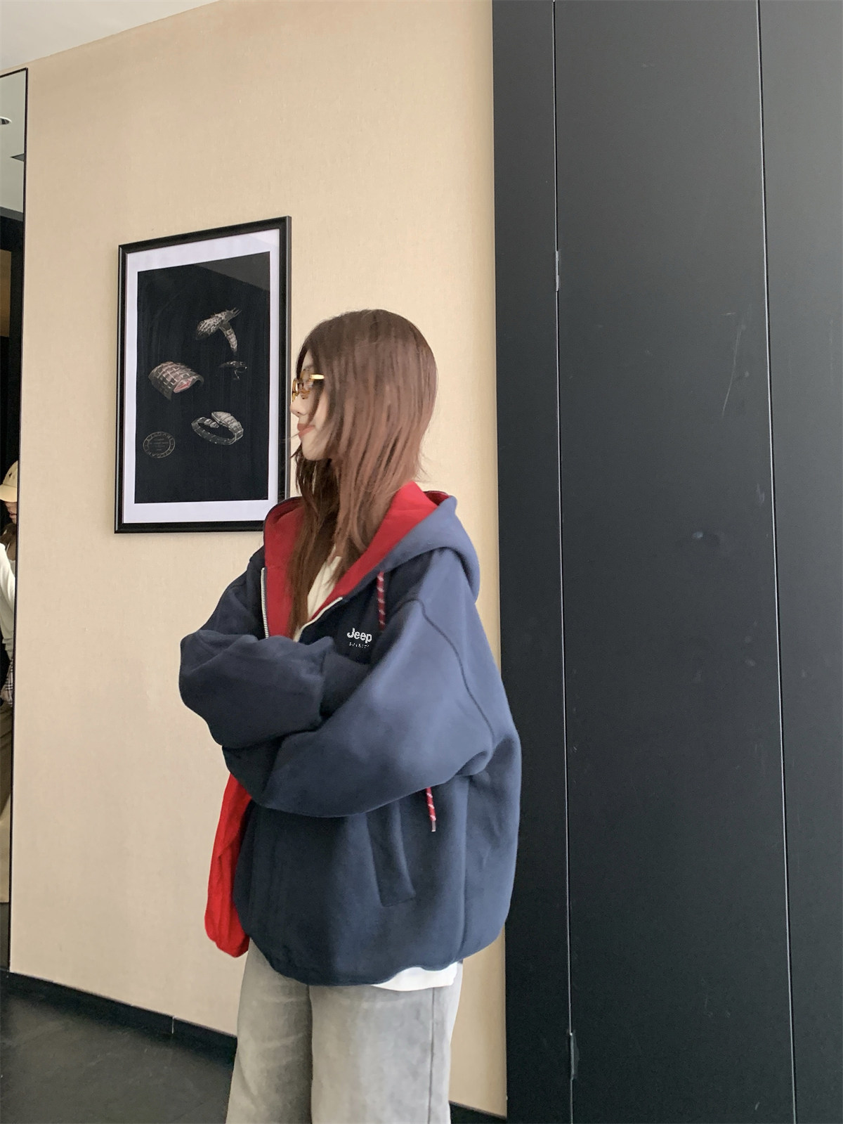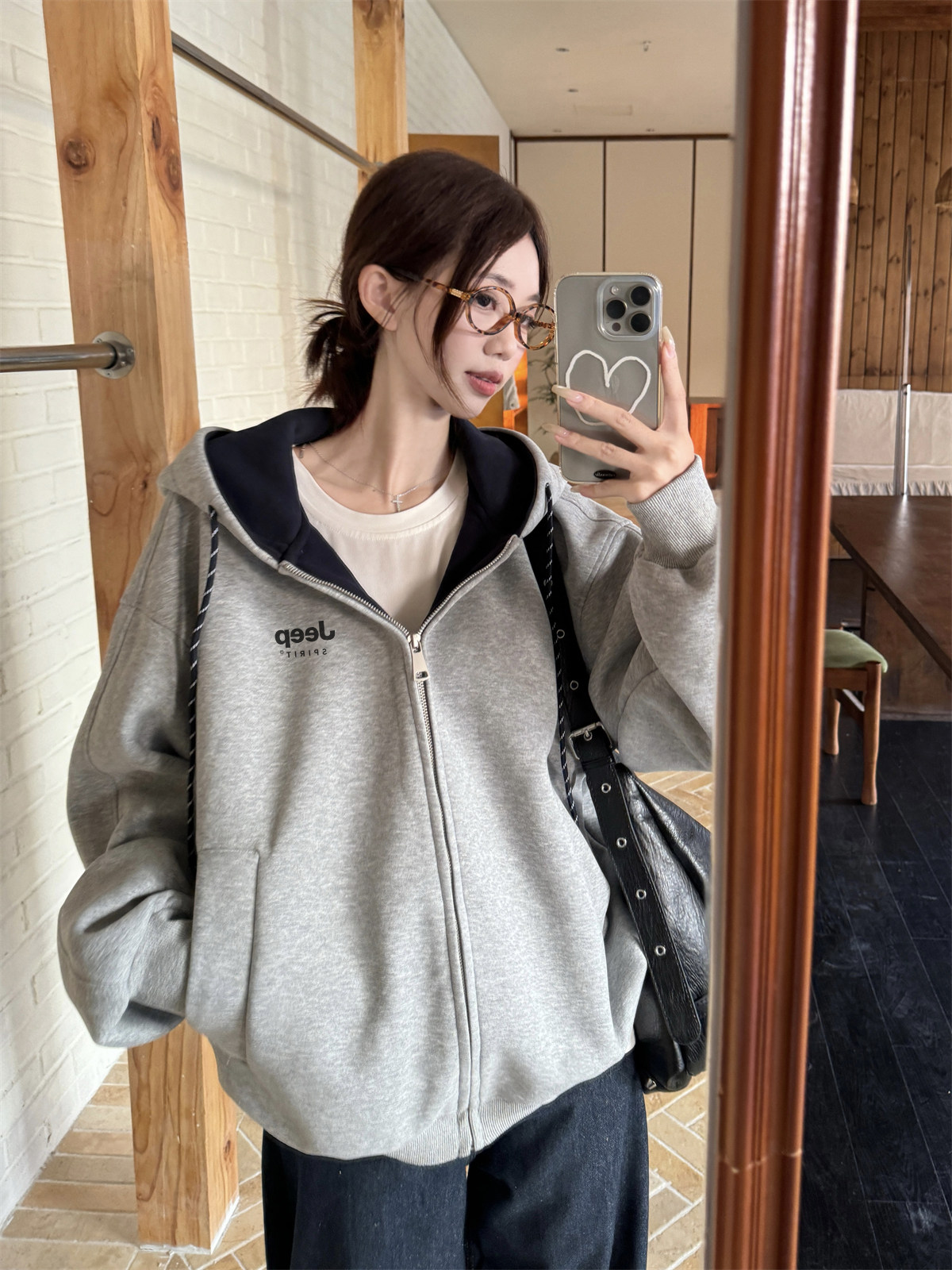 Jeep Gray Cardigan Sweatshirt for Women 2026 New Spring Design Niche Korean Style Early Spring Sports Hooded Jacket