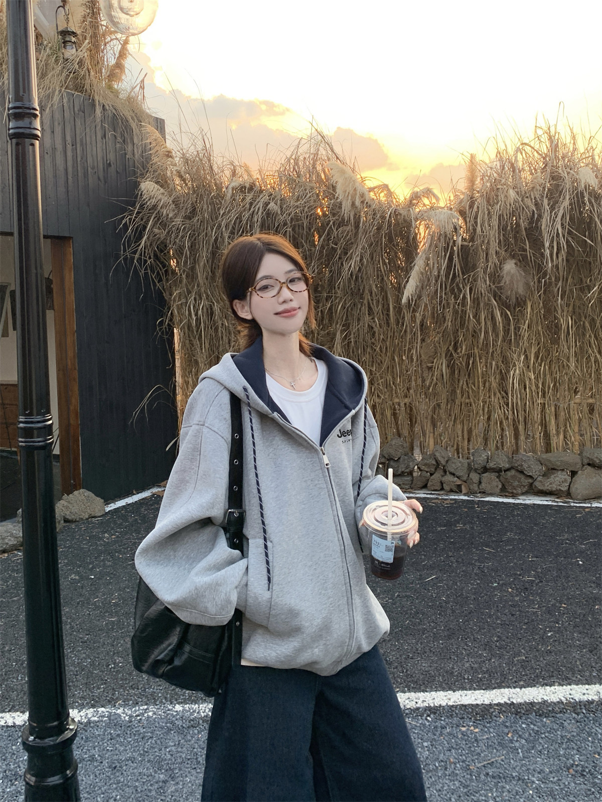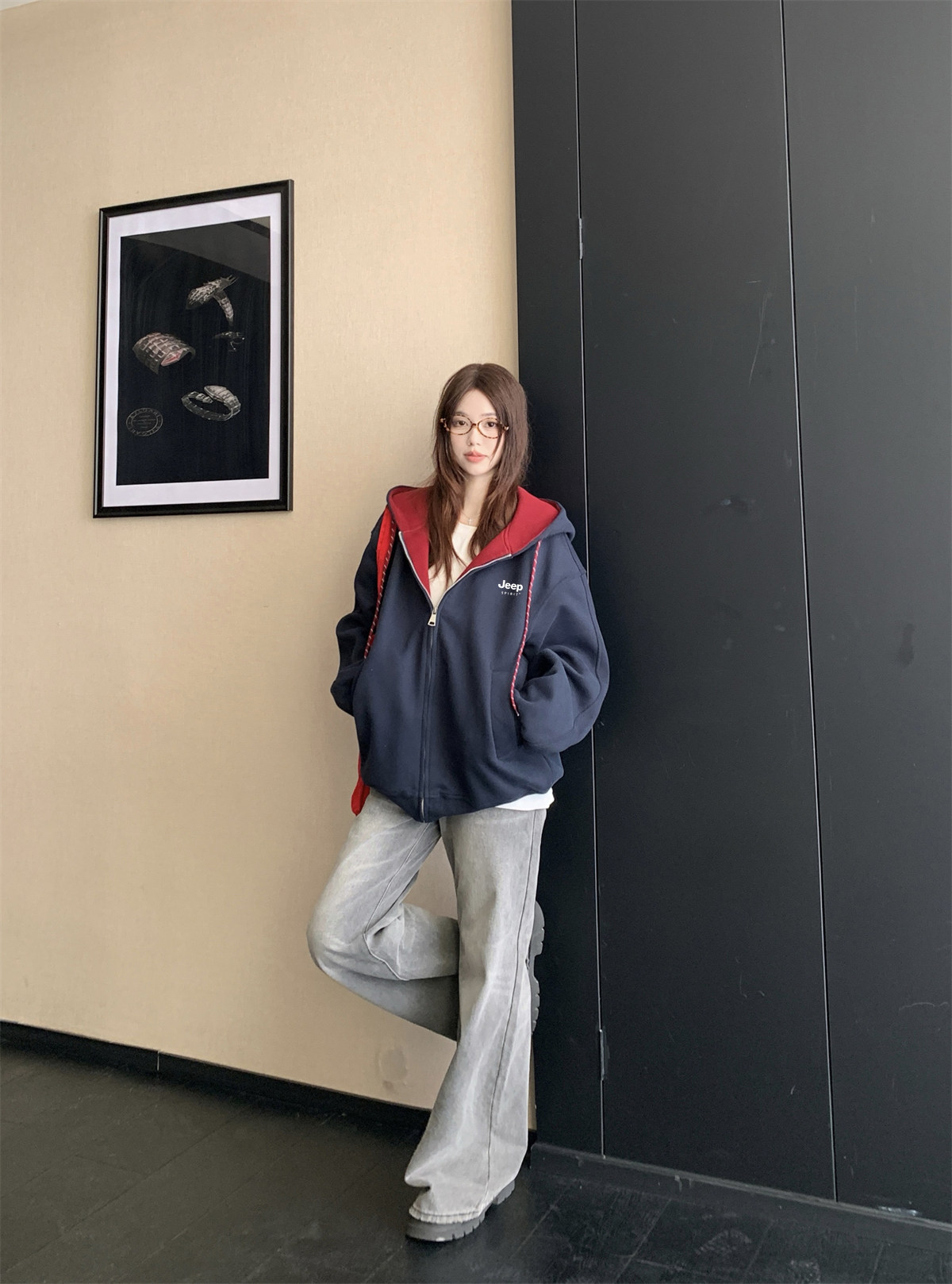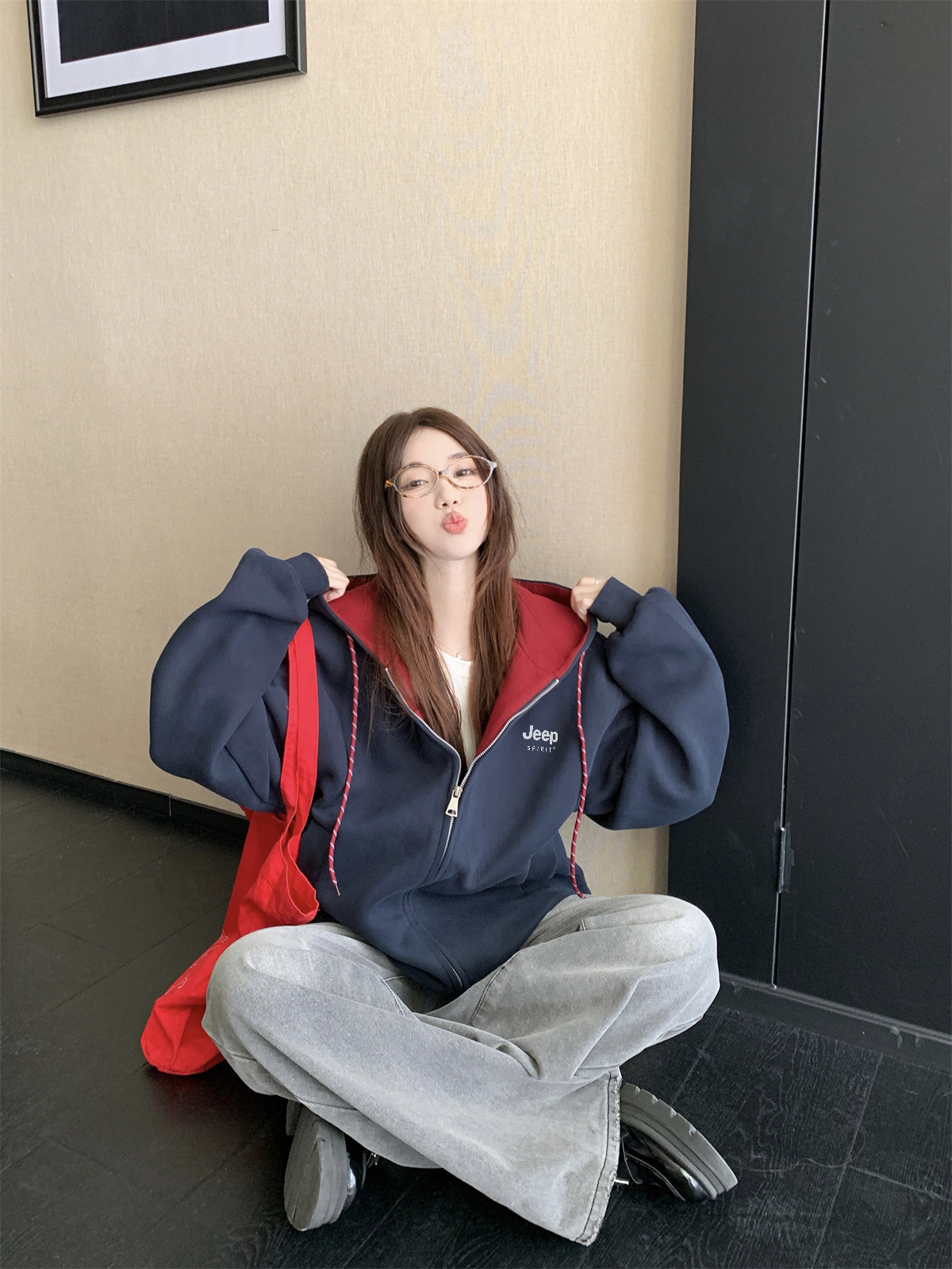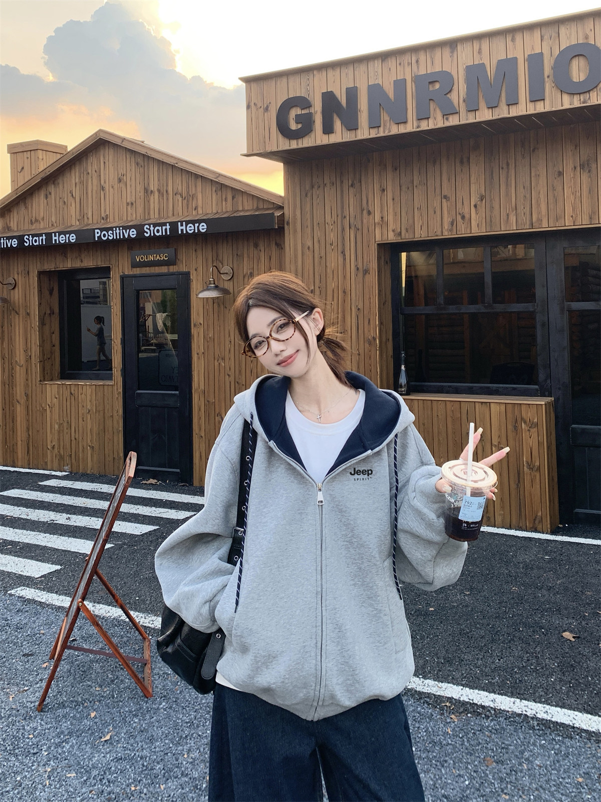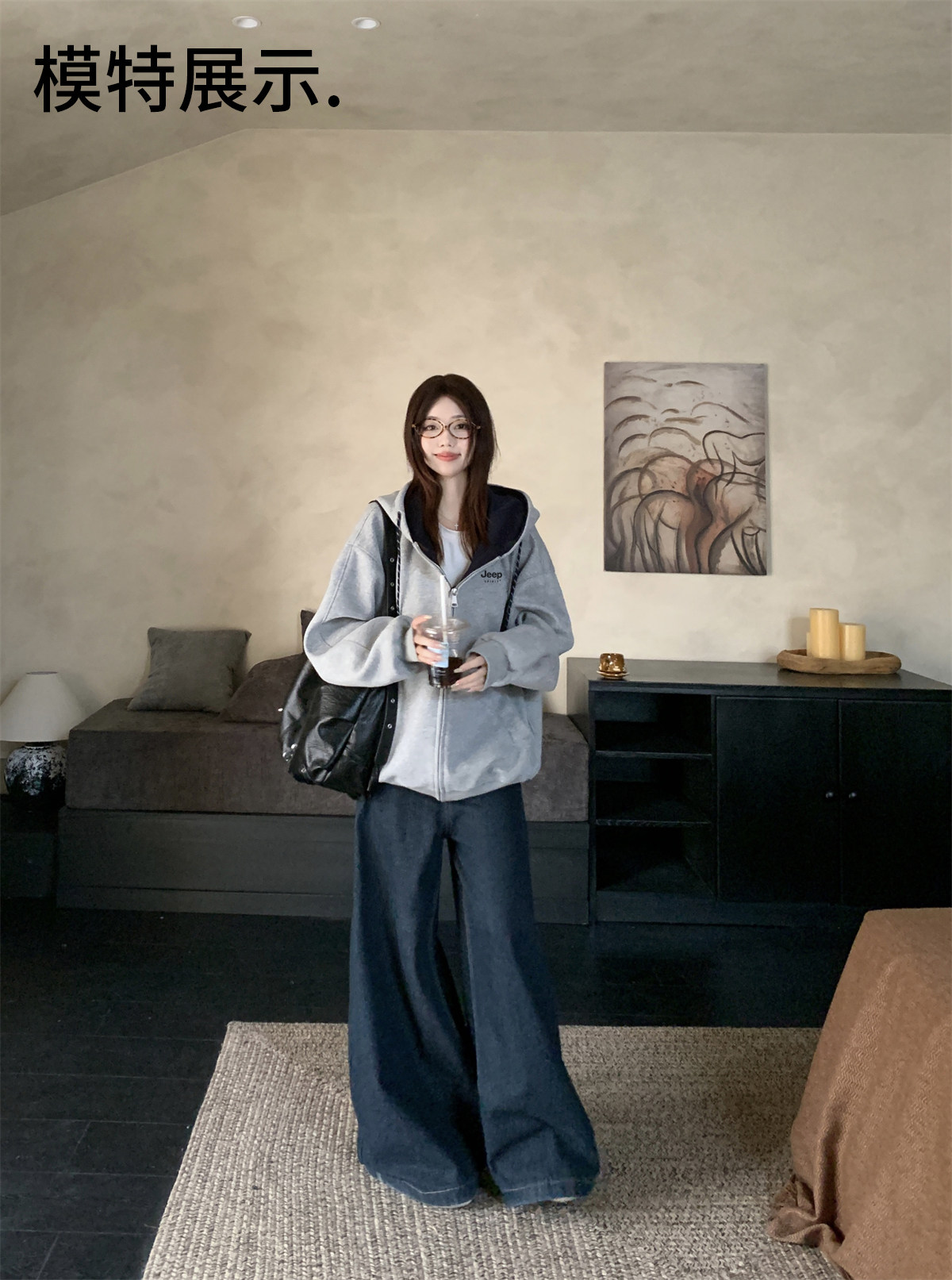 Jeep Gray Cardigan Sweatshirt for Women 2026 New Spring Design Niche Korean Style Early Spring Sports Hooded Jacket