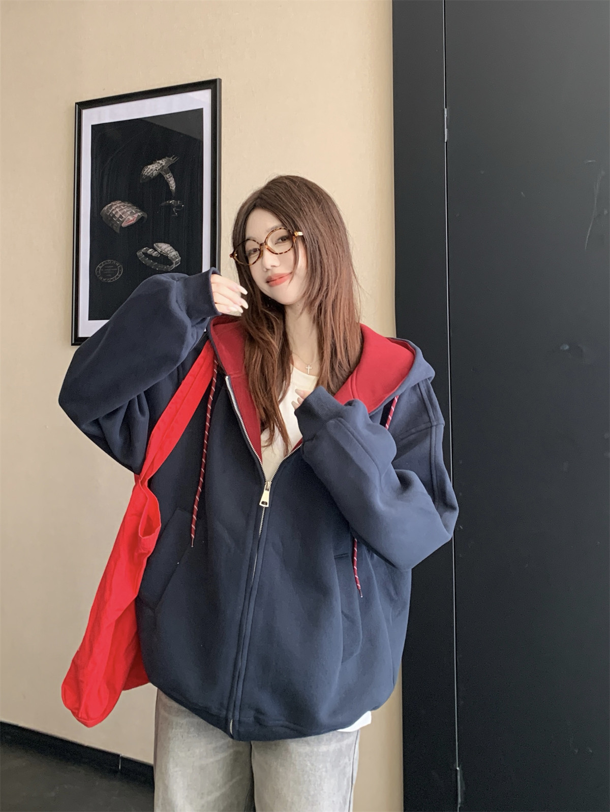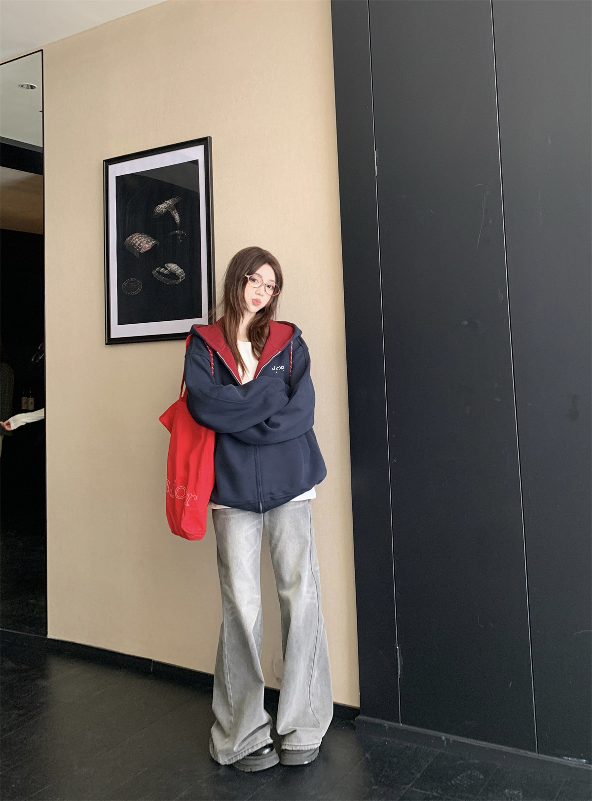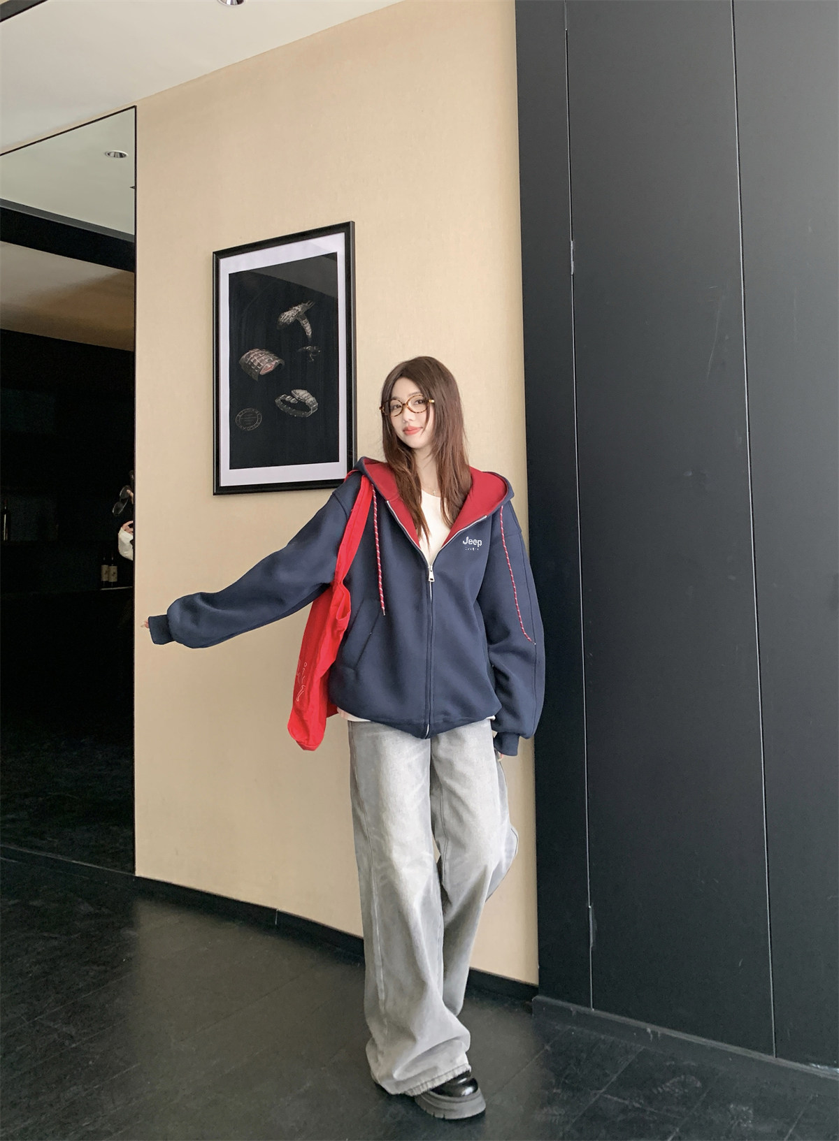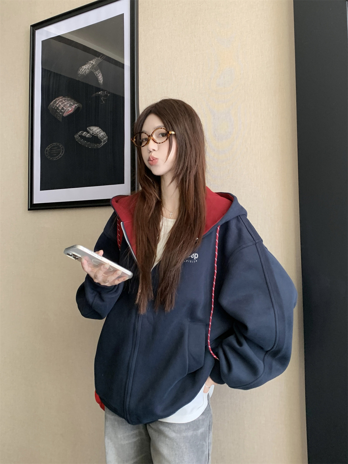 Jeep Gray Cardigan Sweatshirt for Women 2026 New Spring Design Niche Korean Style Early Spring Sports Hooded Jacket