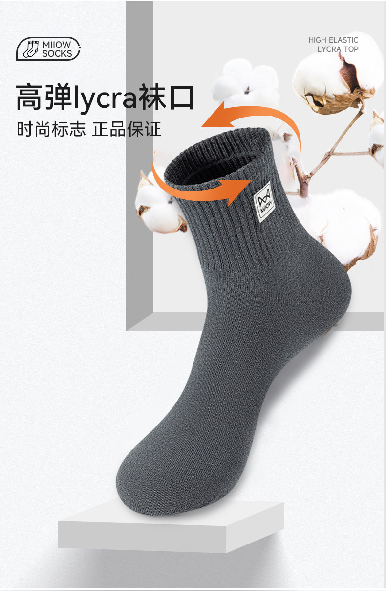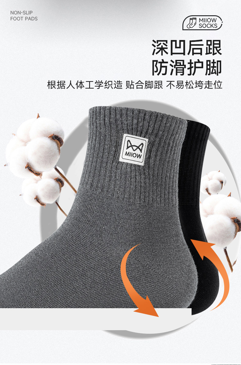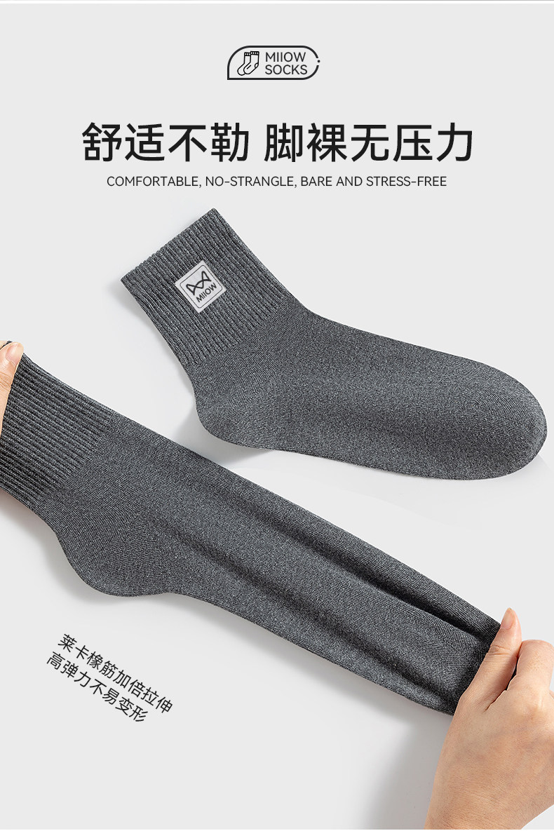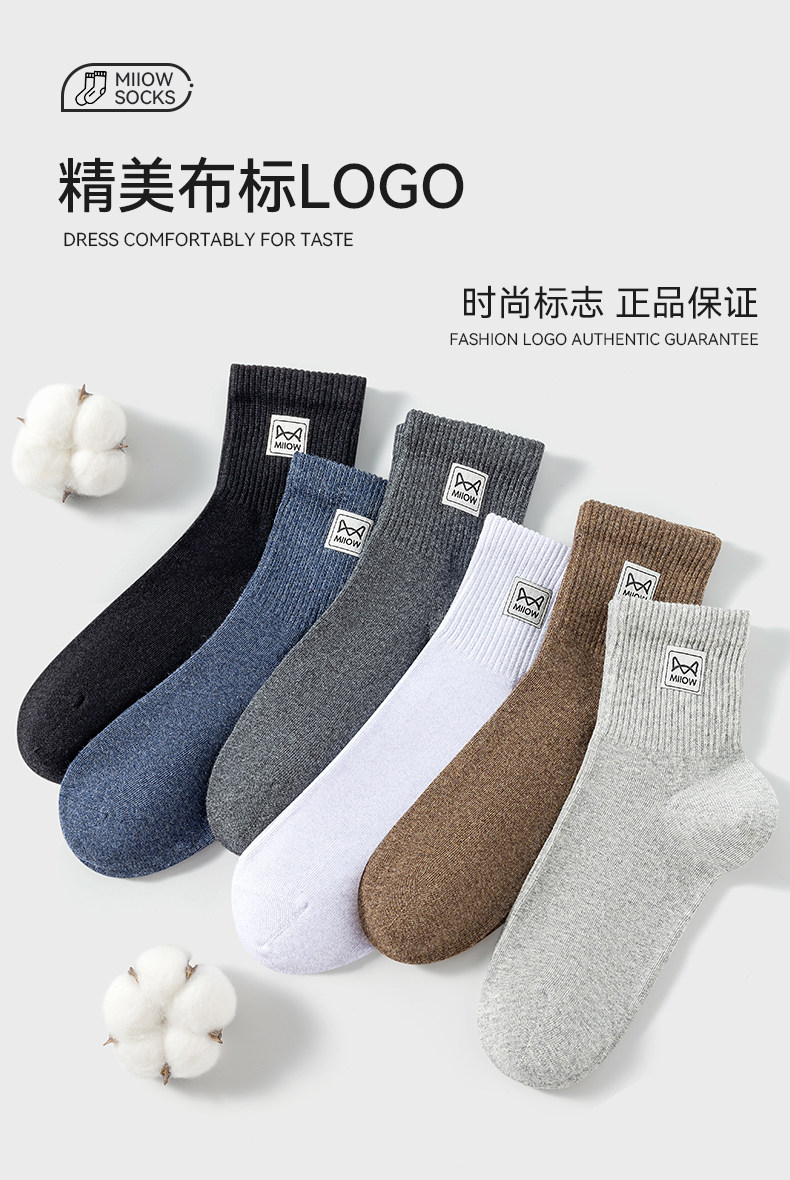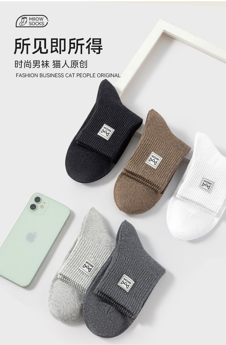 【7A Antibacterial】Catman Socks Men's Autumn and Winter 100% Pure Cotton Mid-Calf Socks Odor-Resistant Breathable Sports Style Trendy Socks