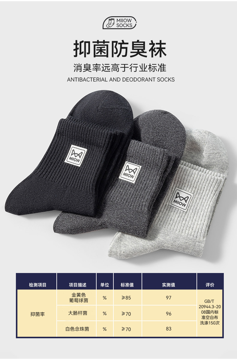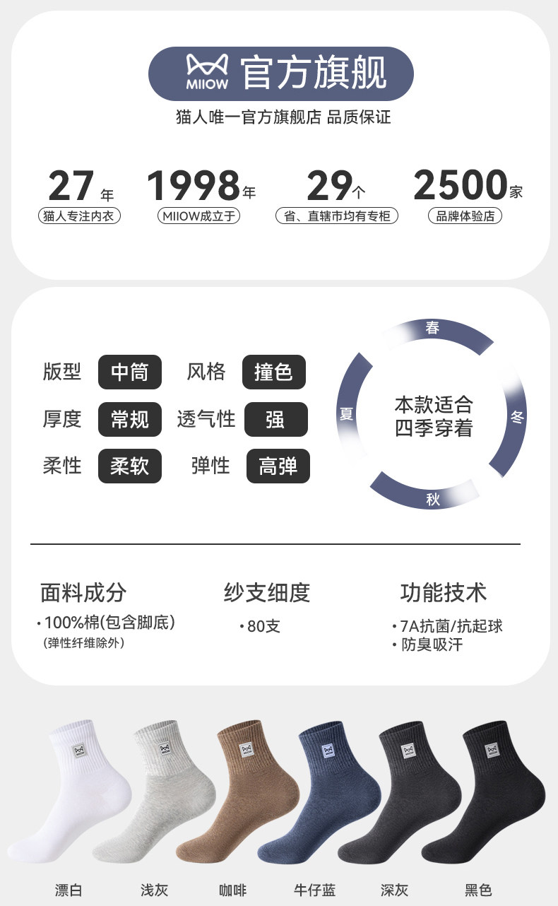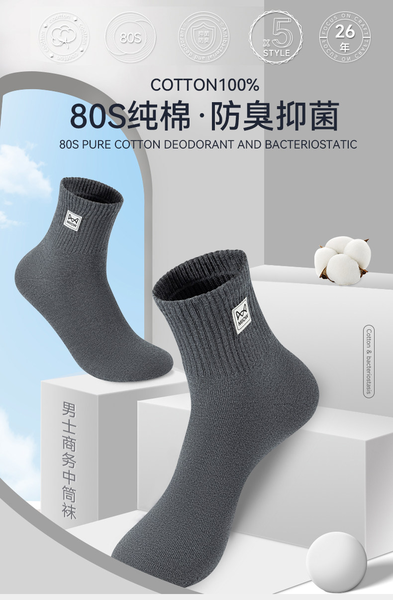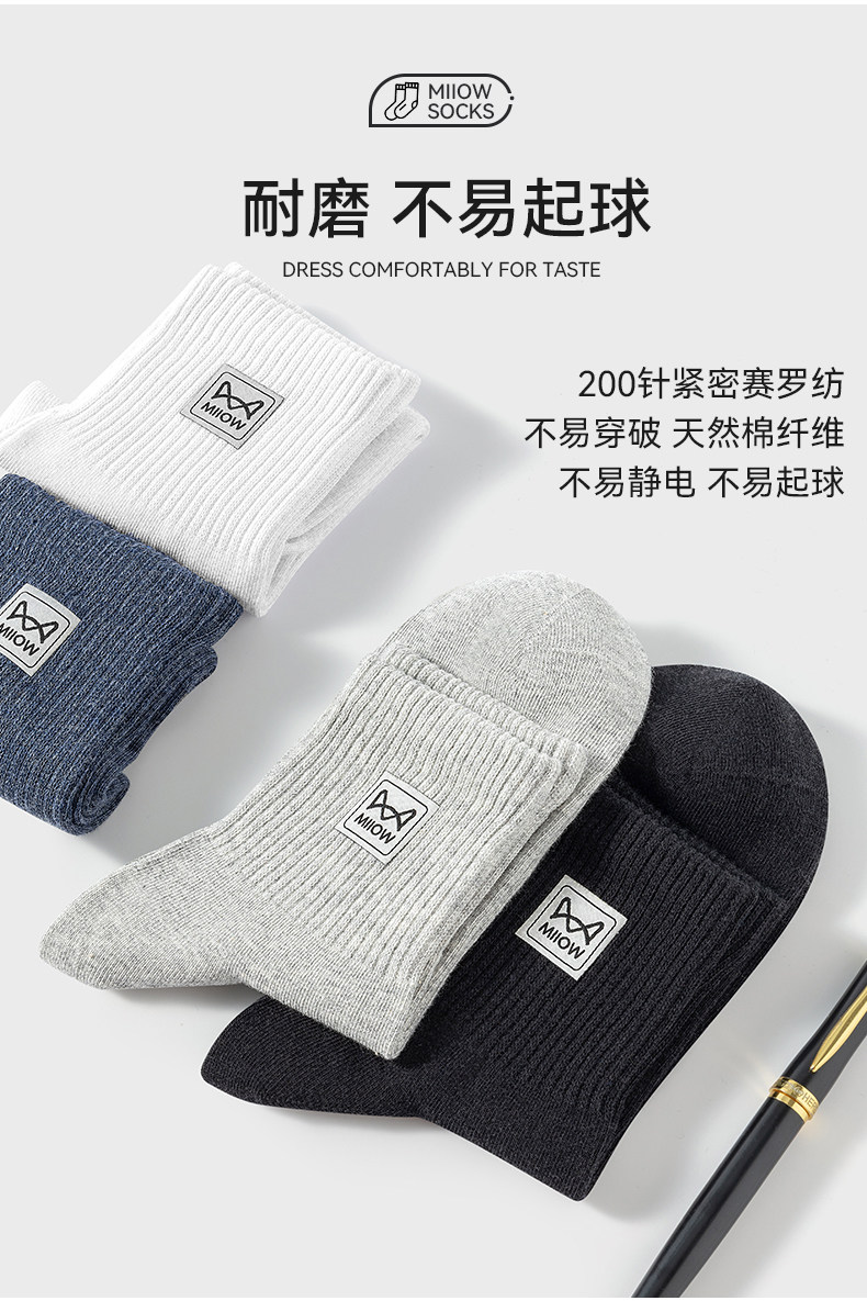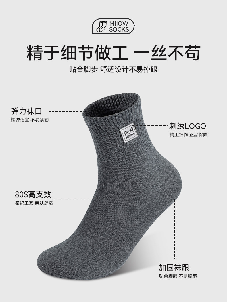 【7A Antibacterial】Catman Socks Men's Autumn and Winter 100% Pure Cotton Mid-Calf Socks Odor-Resistant Breathable Sports Style Trendy Socks