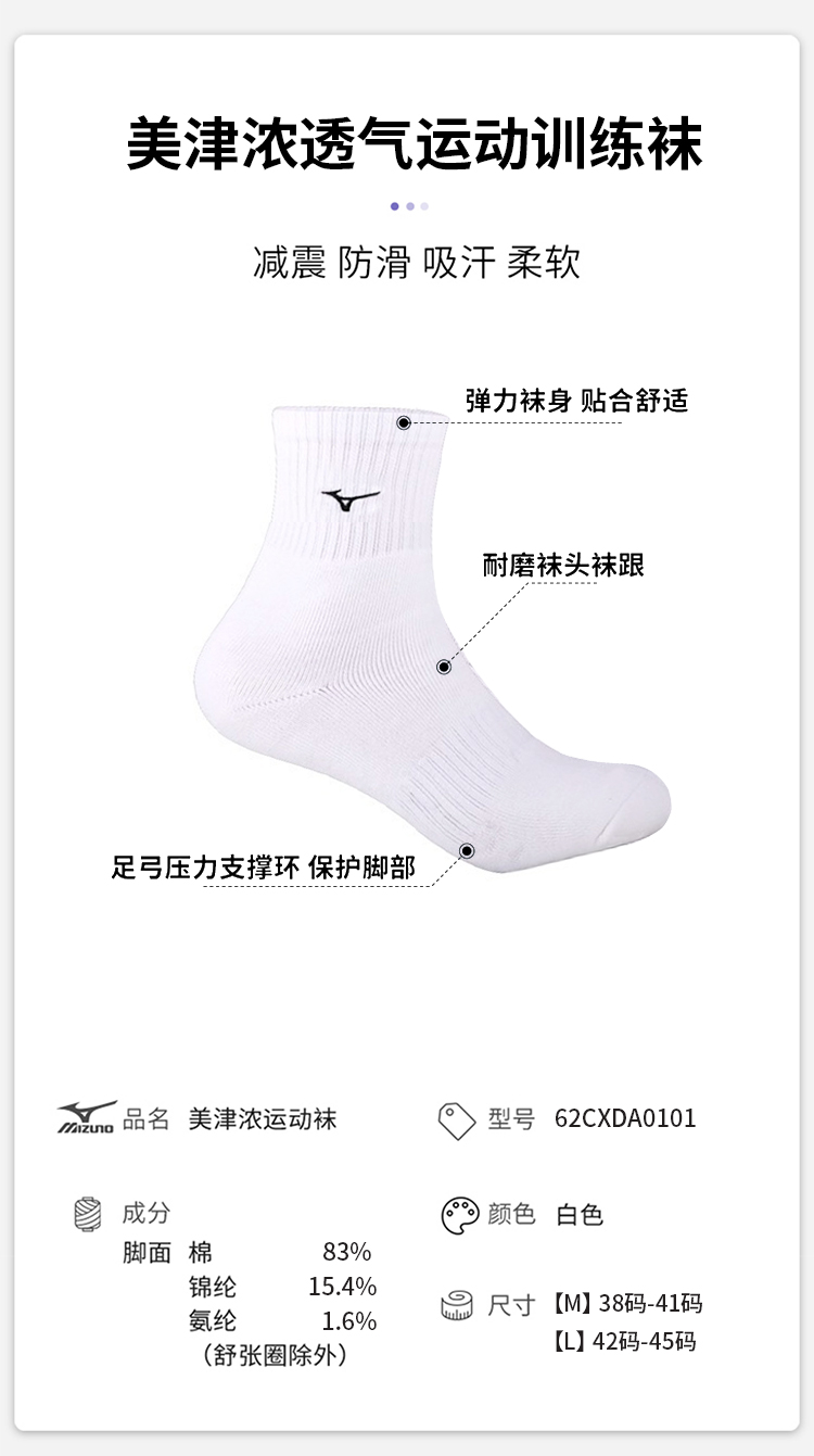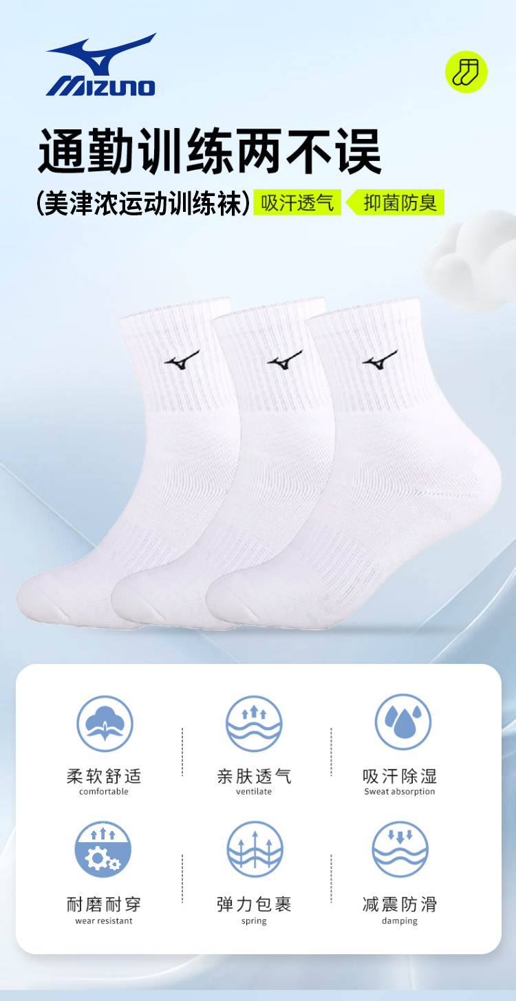 Mizuno Sports Socks Mid-Calf Tennis Socks Unisex Cotton Socks Versatile Casual Training Thickened Towel Bottom Long Socks