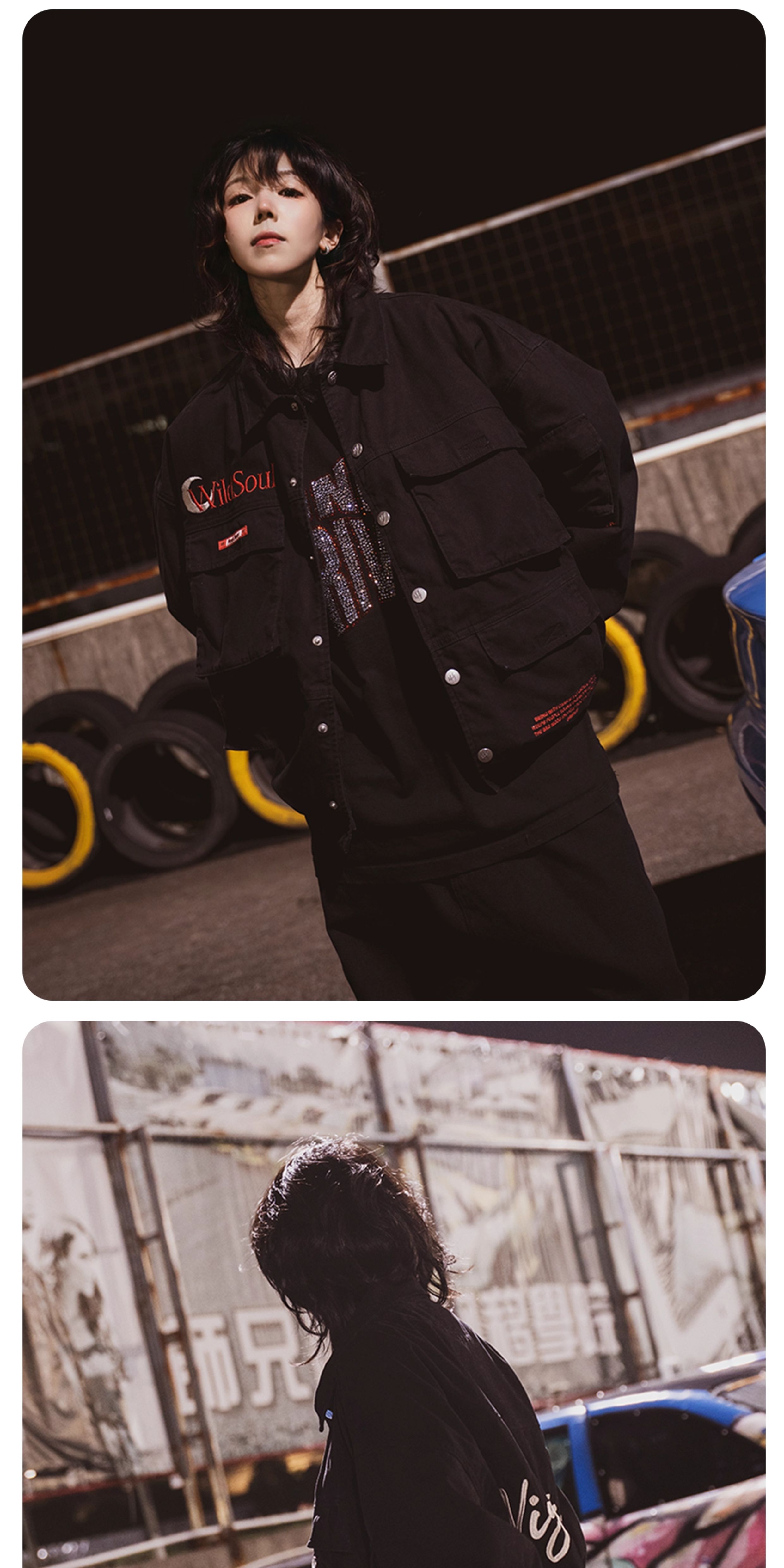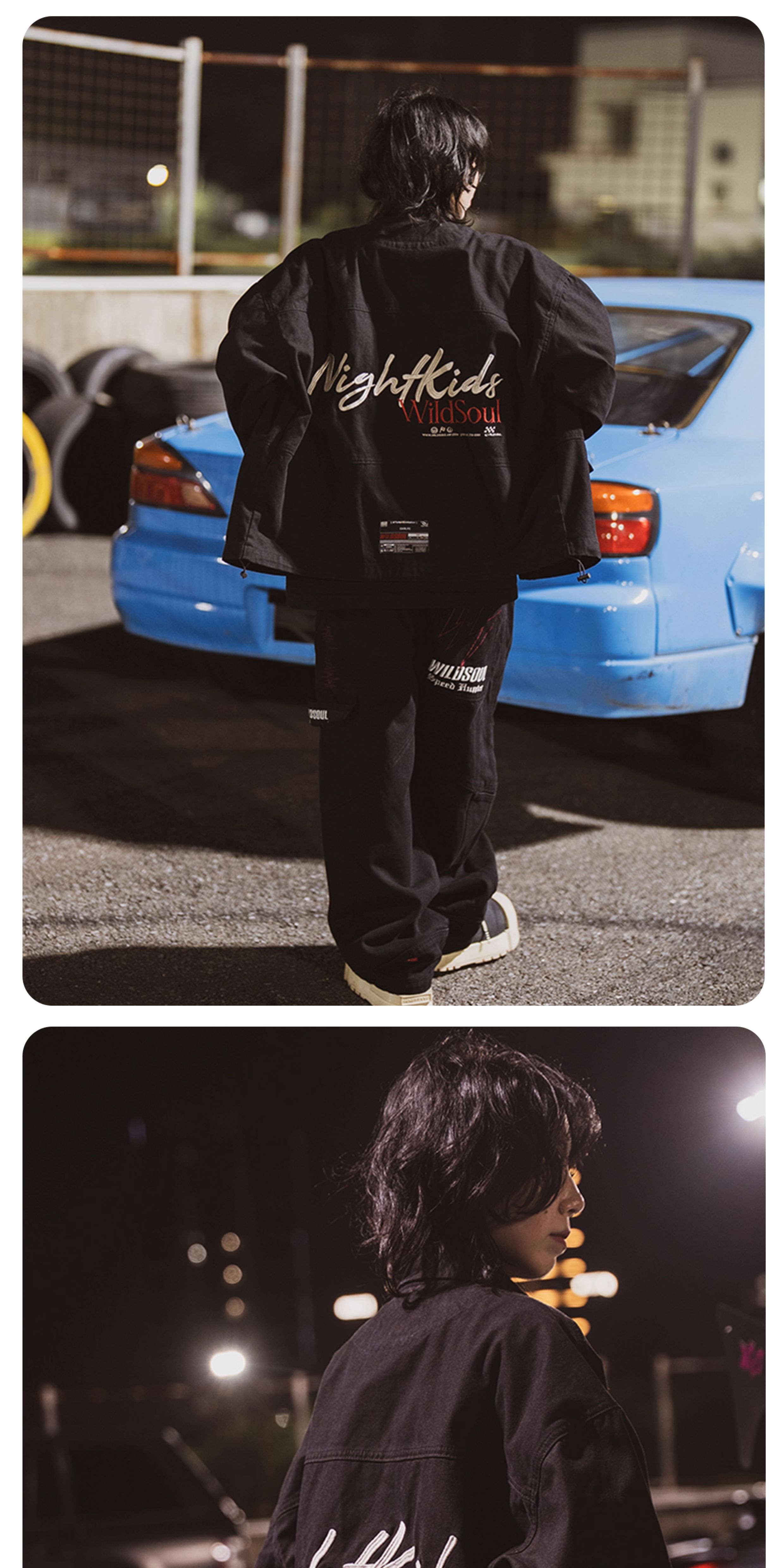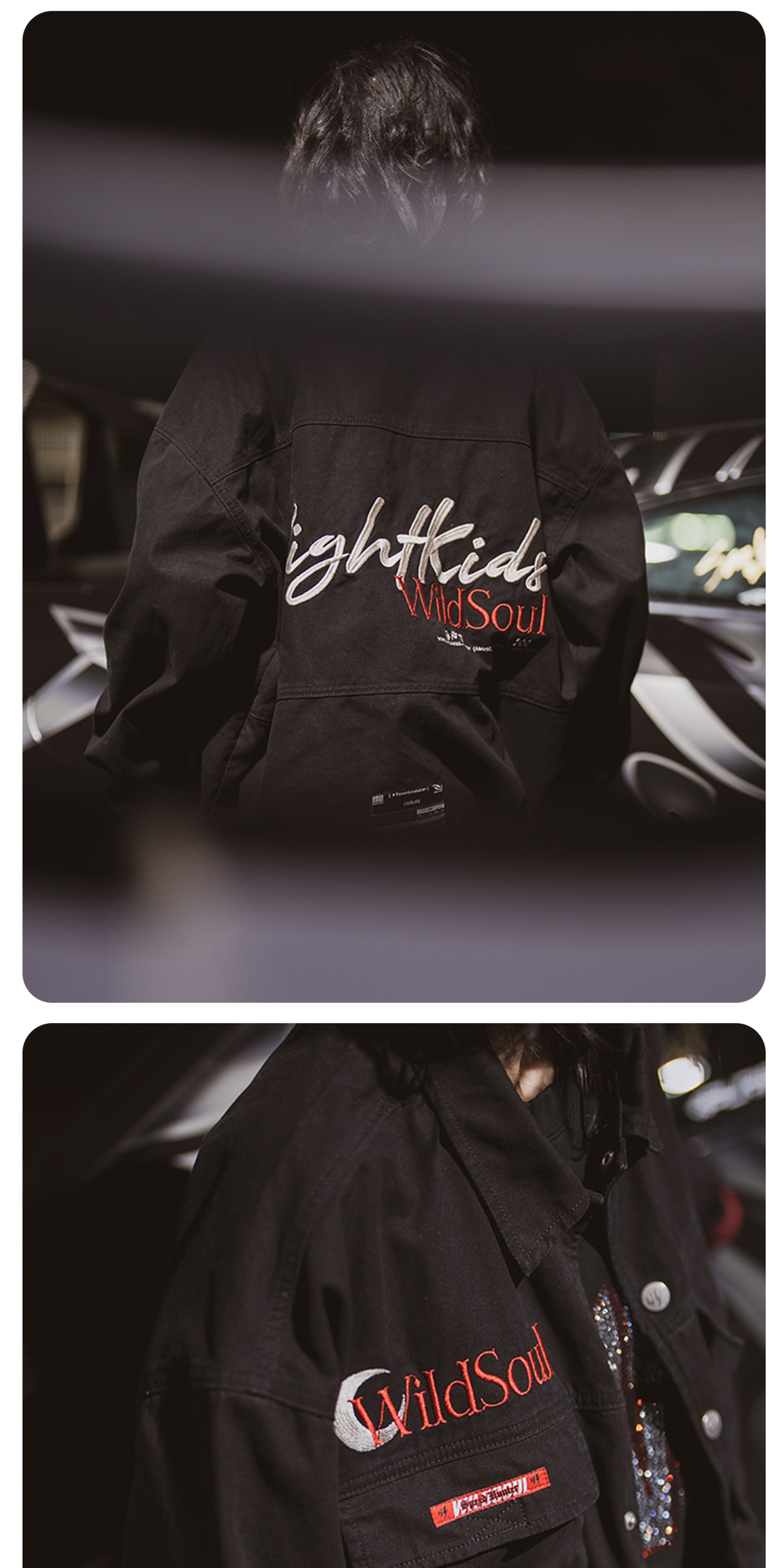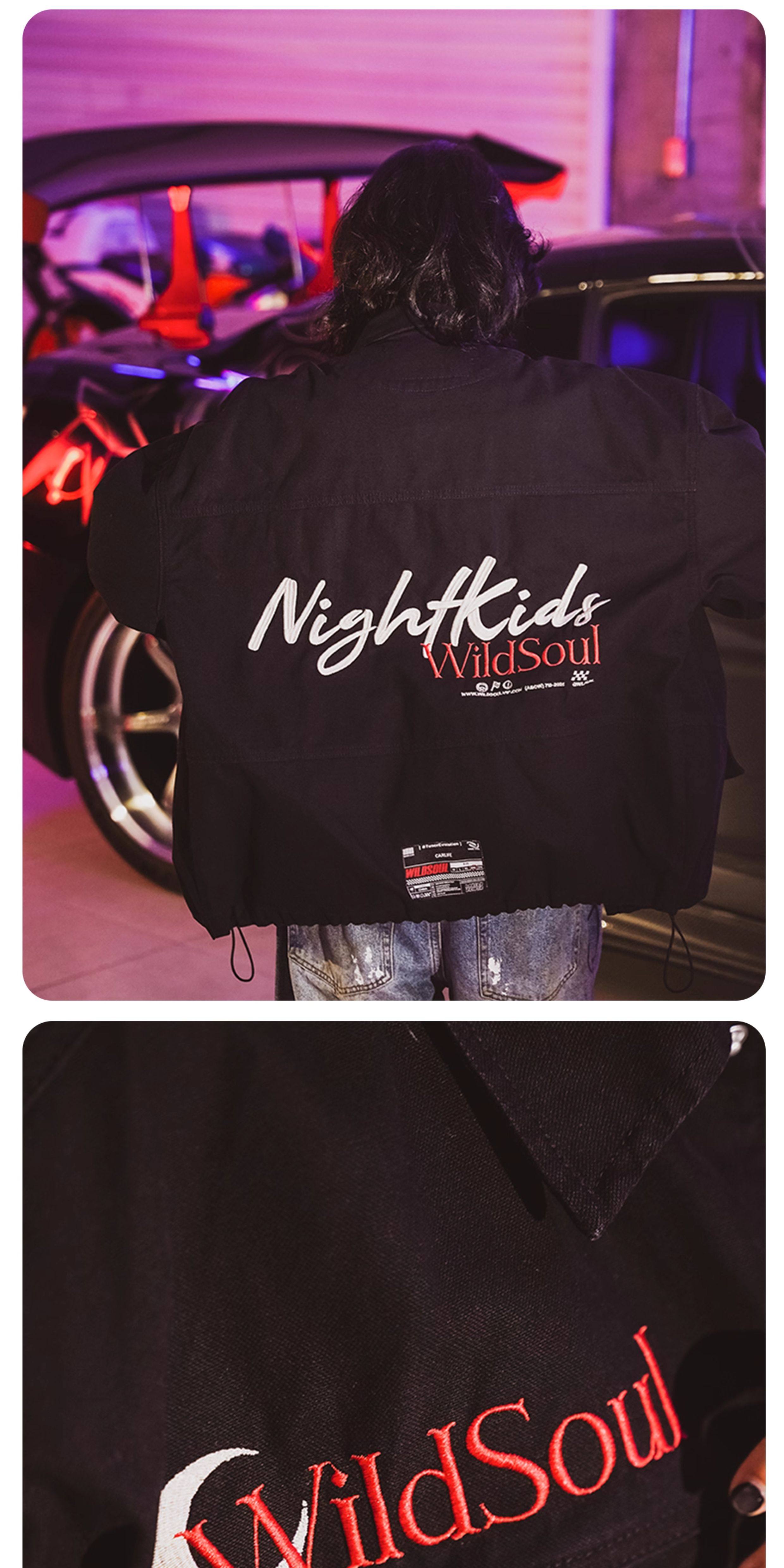 Wildsoul "Nightkids Team Uniform" Heavy Embroidery Drawstring Stand Collar Loose Jacket Pearl Sail Coat