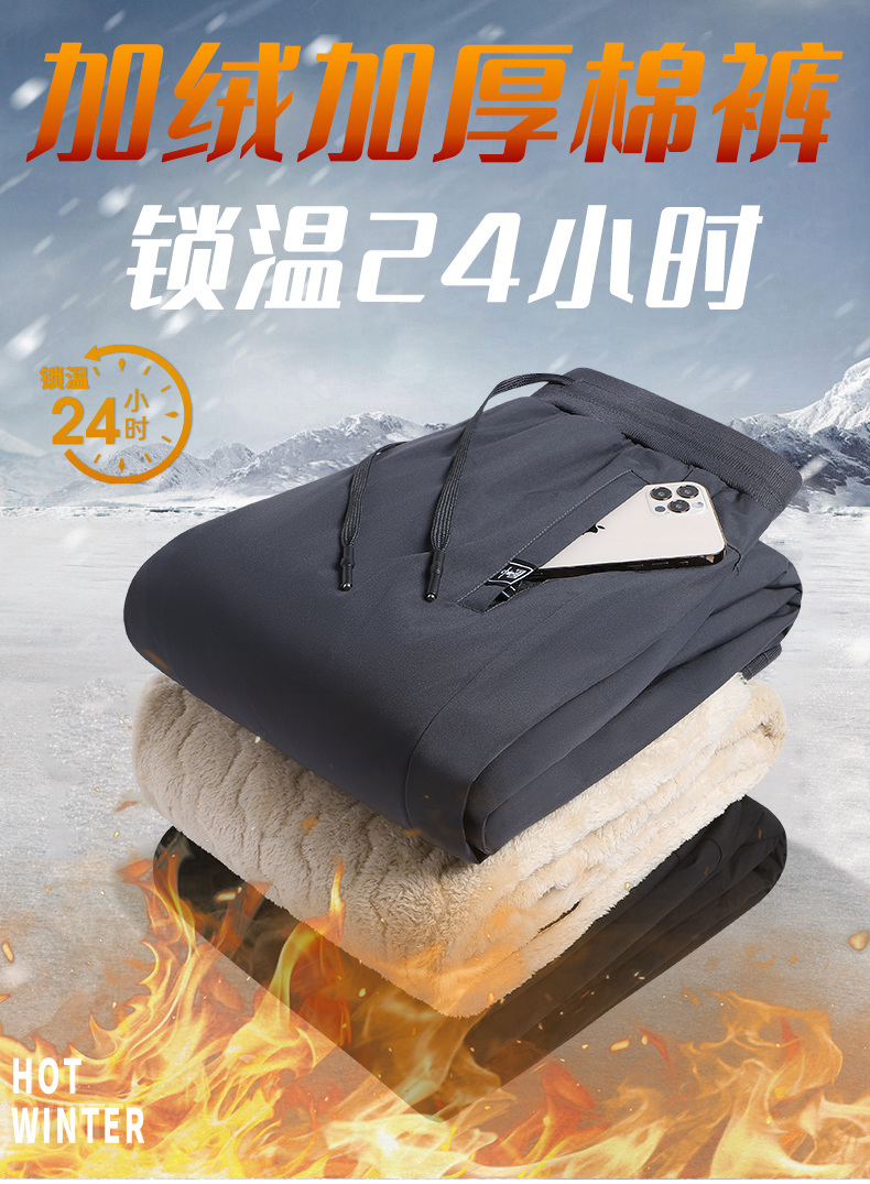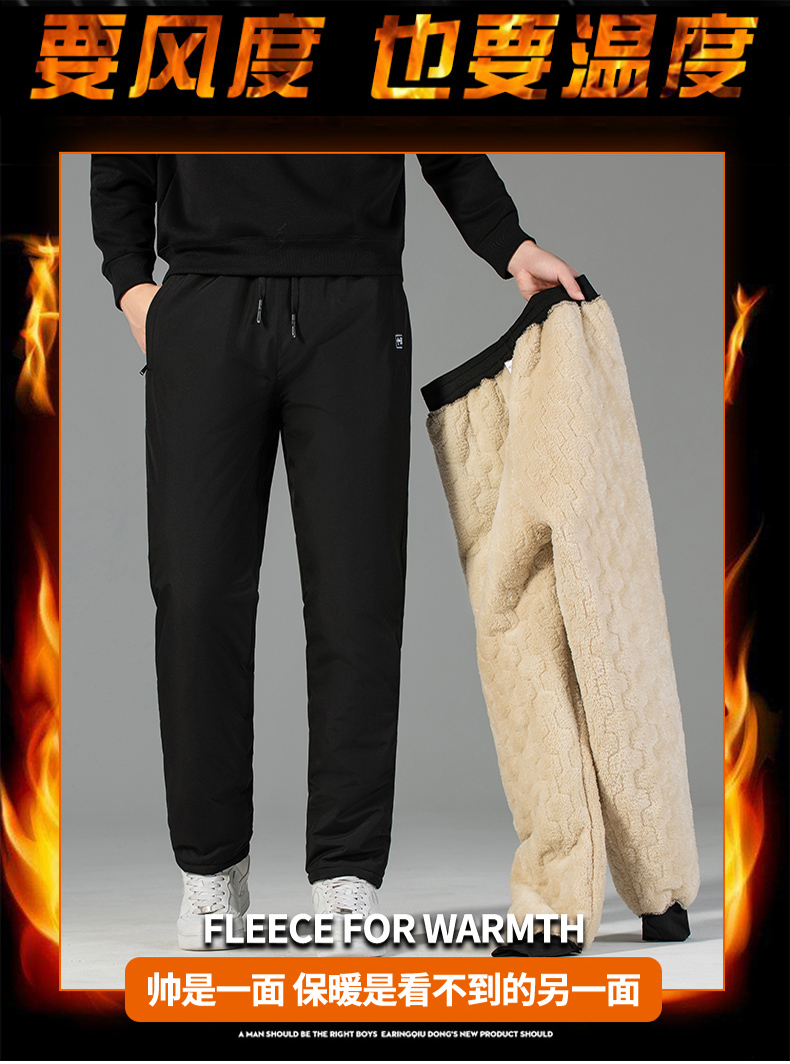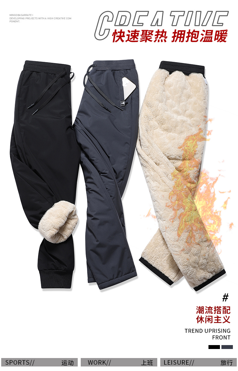 Woodpecker Brand Men's Winter Cotton Pants, Fleece-Lined and Thickened with Lamb Wool, Windproof and Warm, Men's Outdoor Pants
