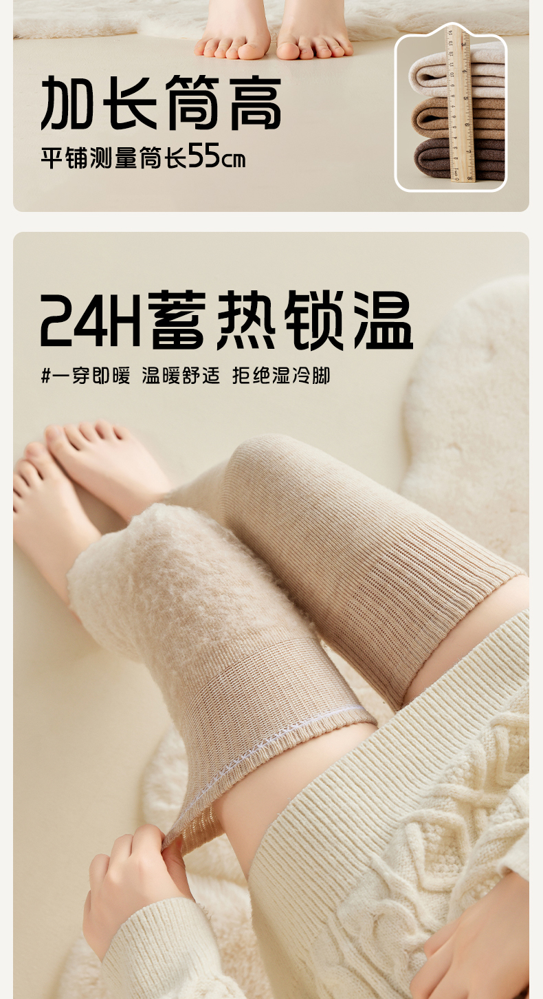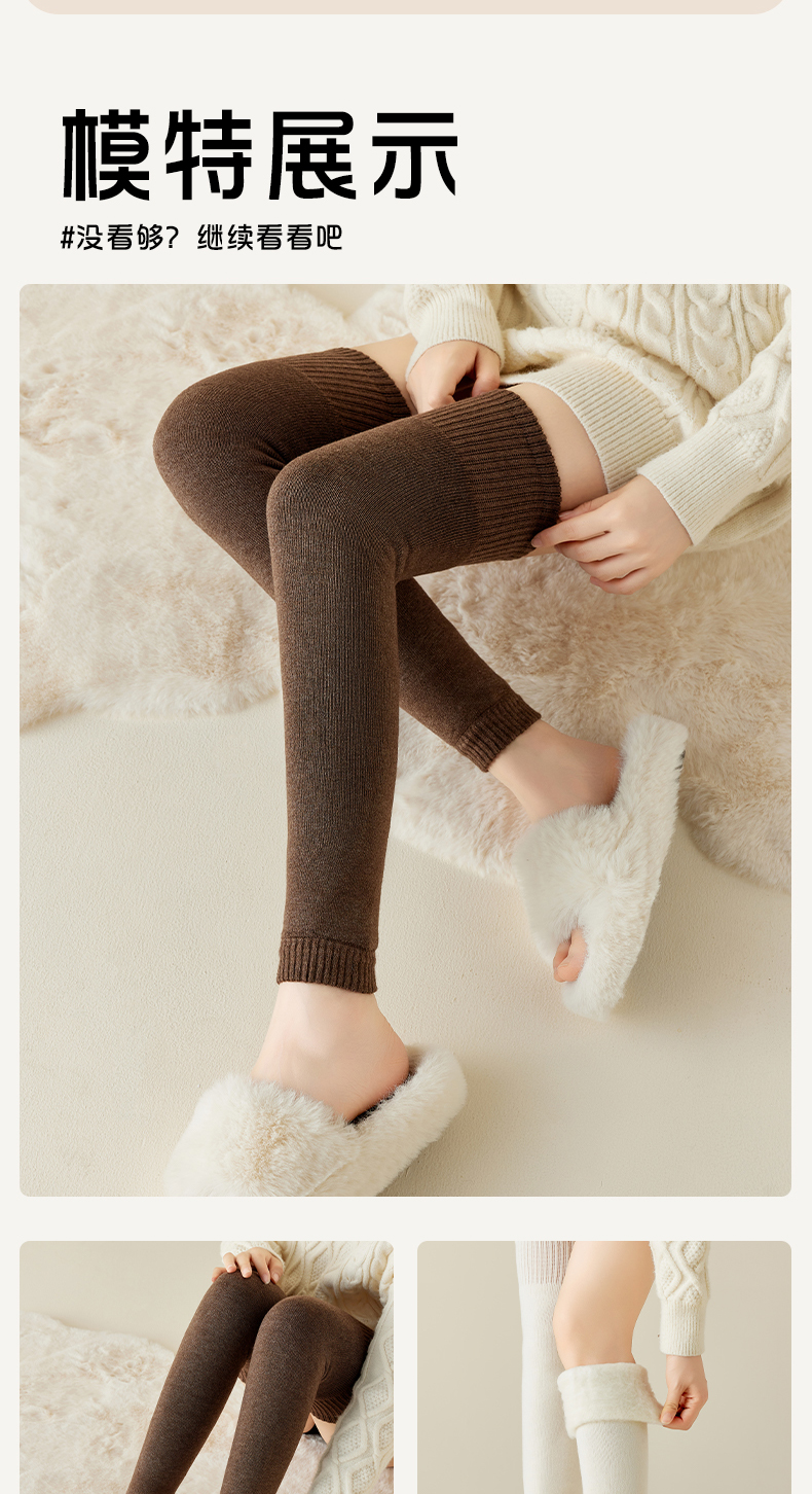 Cat-Themed Long Knee-High Socks for Women, Autumn and Winter Over-The-Knee Socks, Fleece-Lined, Thickened, Terry Thigh-High Socks, Warm Leg Warmers, Plush