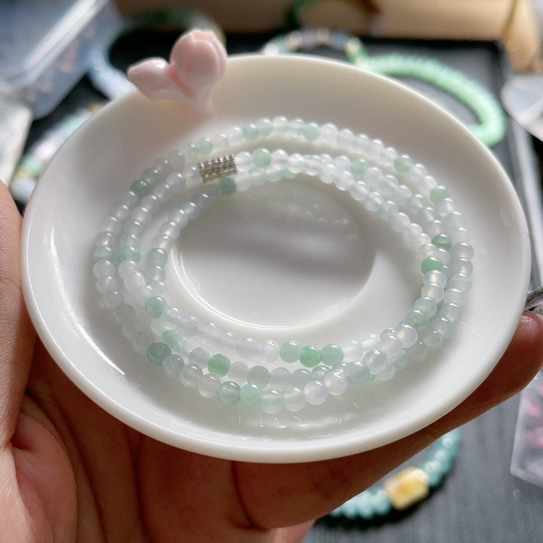 Close your eyes! Card 3.5 ice through Xiaomi necklace clavicle chain long string necklace white moonlight Myanmar Jade A goods