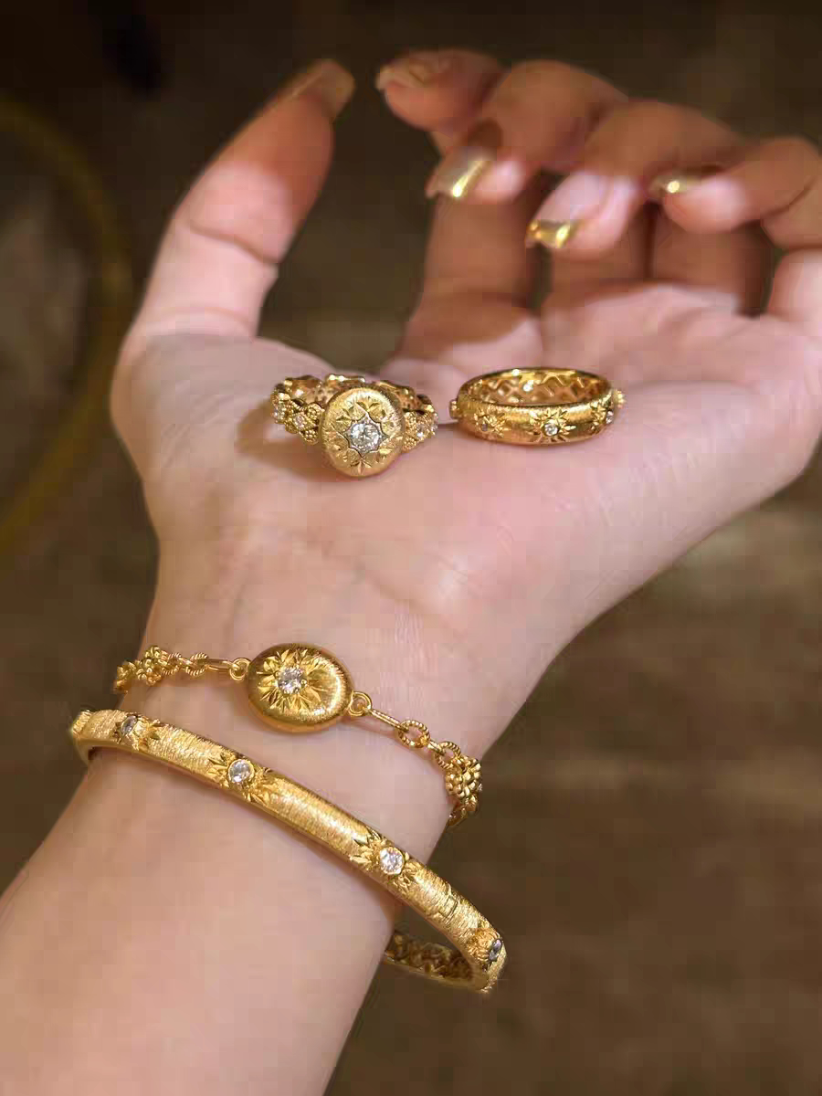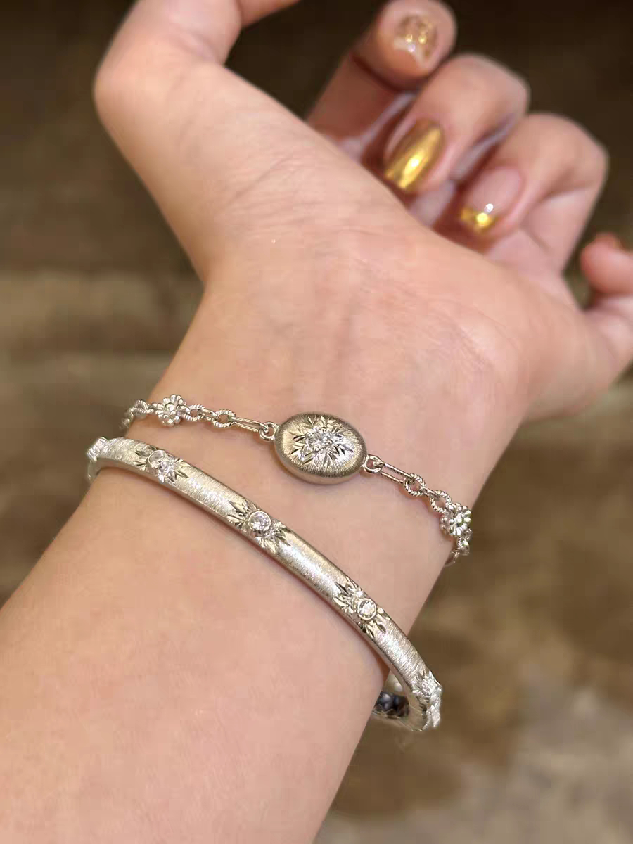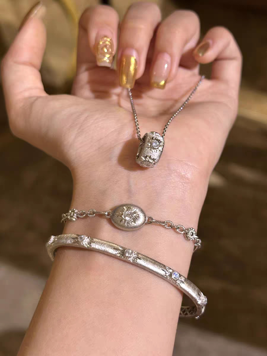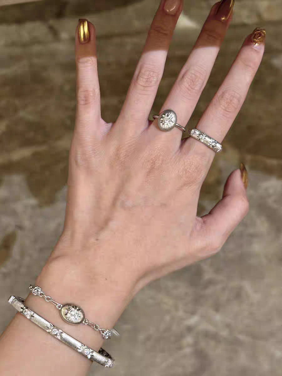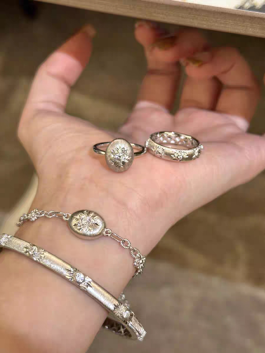 S925 Sterling Silver! Brushed Silver Beads, Small Gold Beads, Bracelet, Necklace, Ring, Italian Craftsmanship, Light Luxury Style