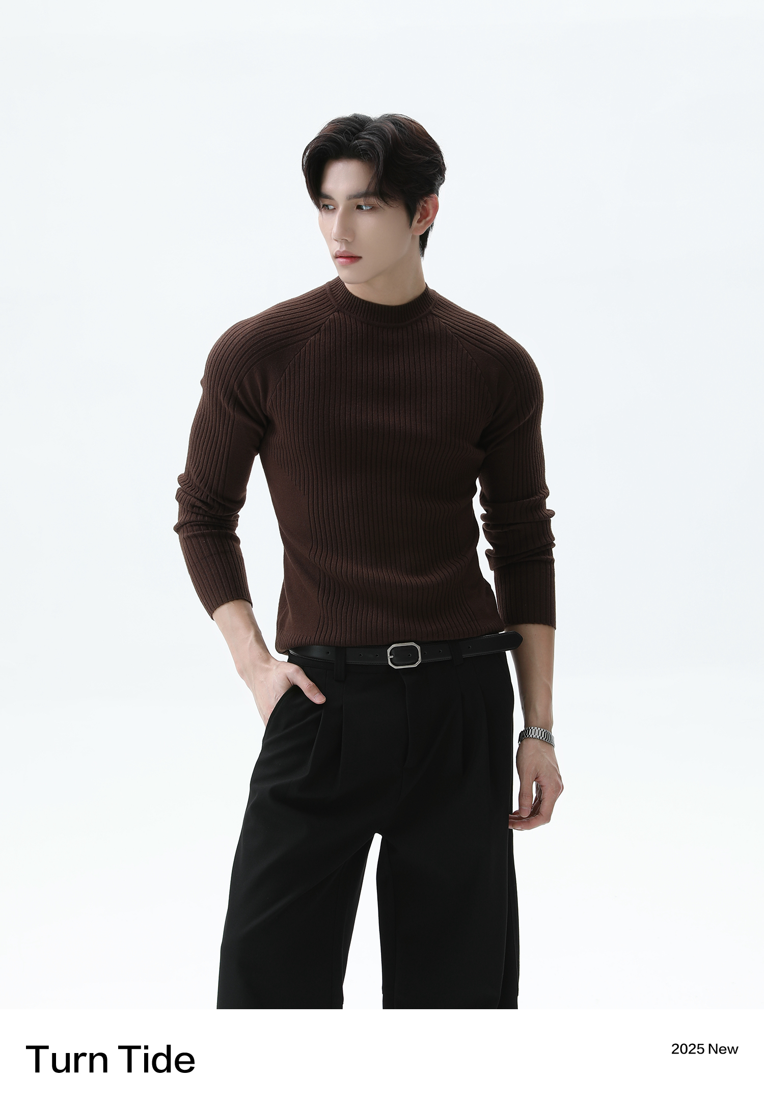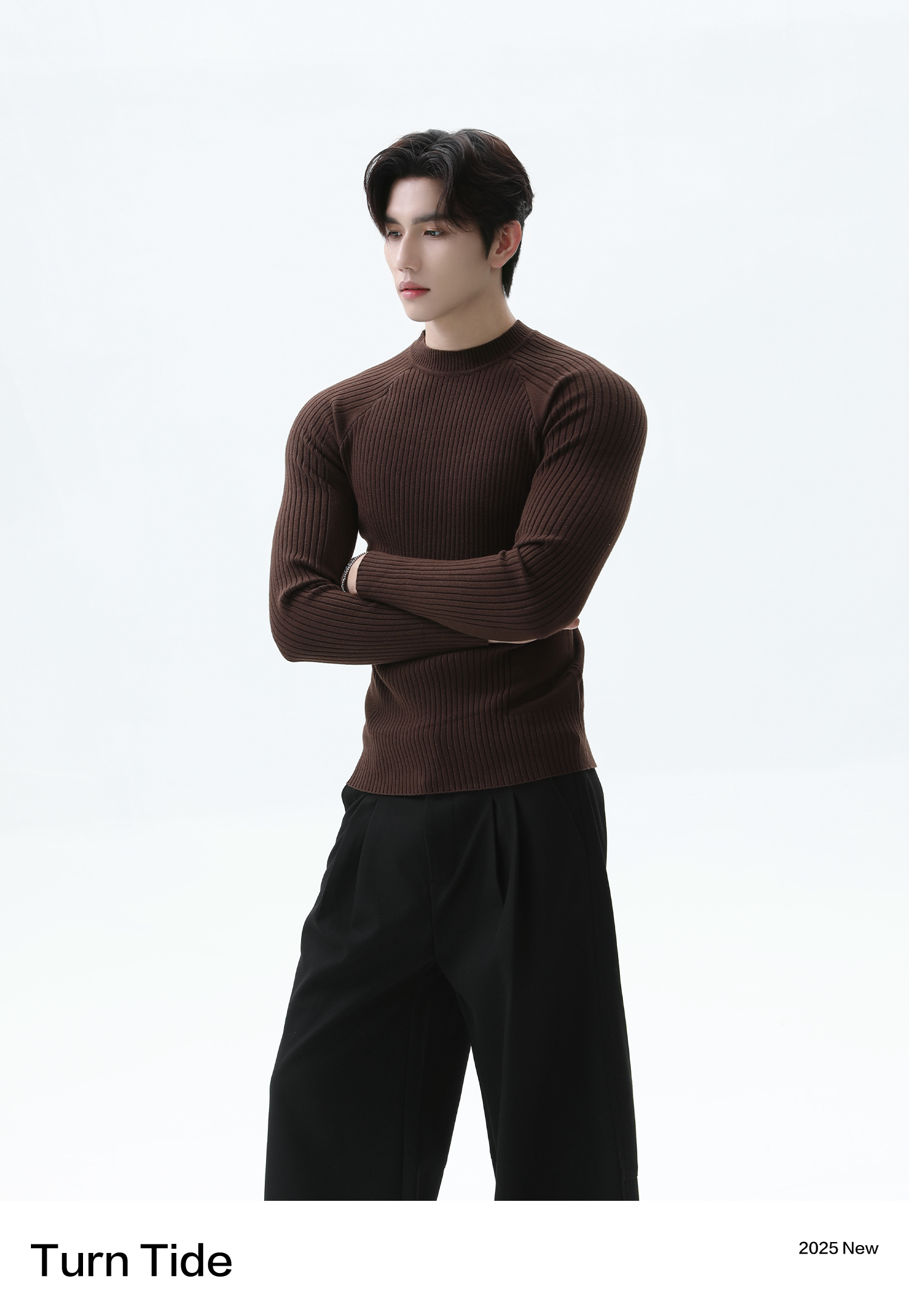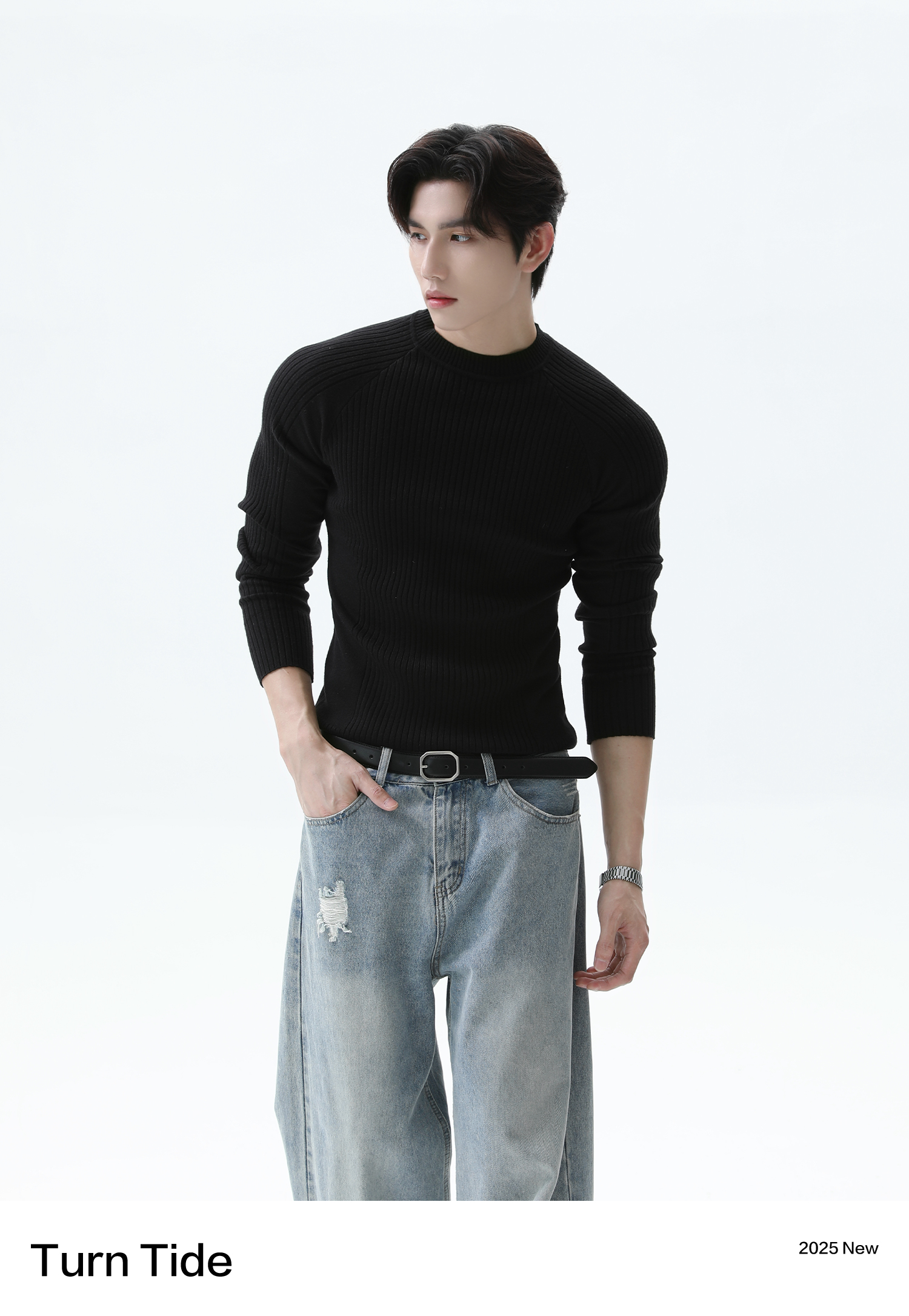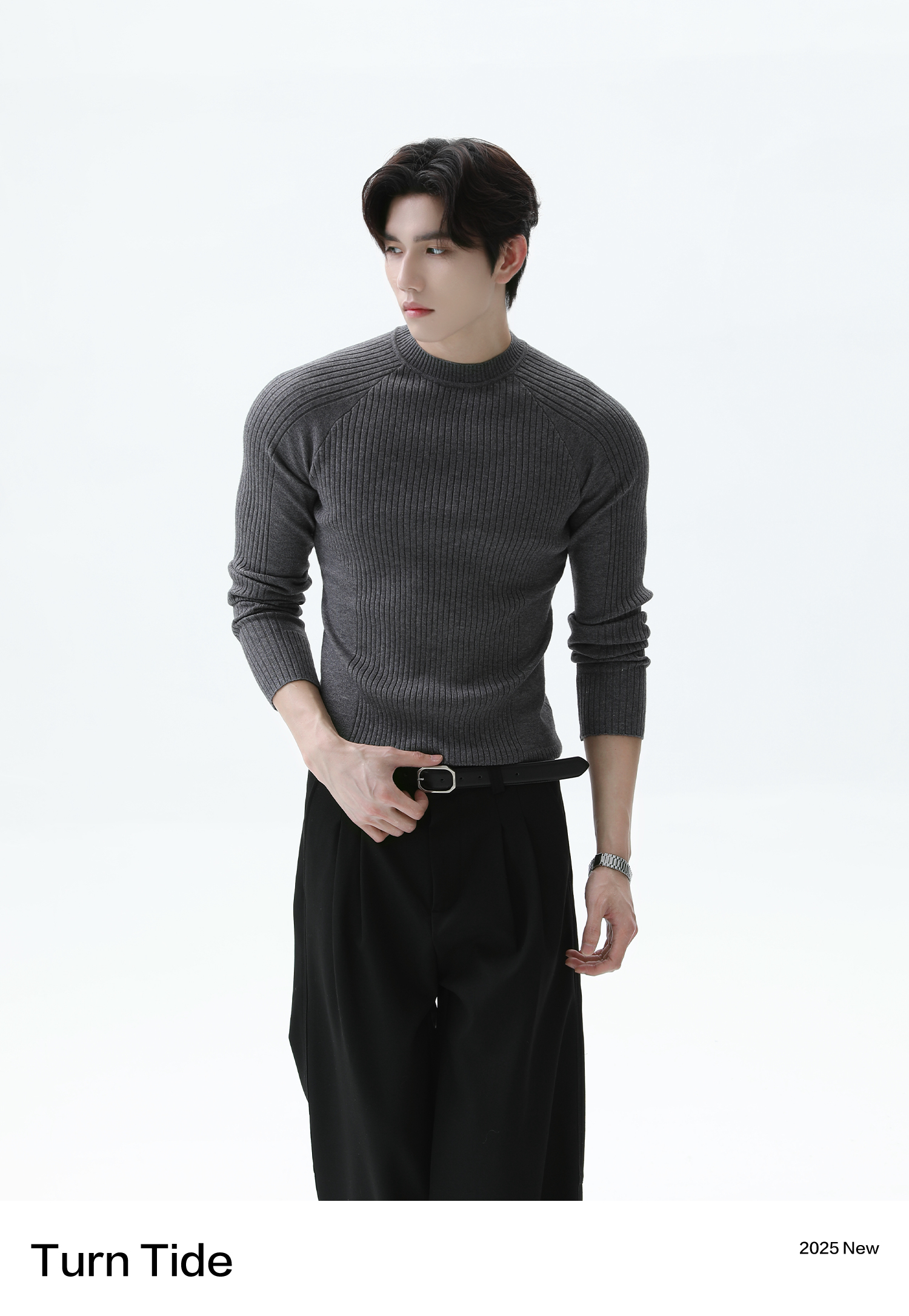 Turntide High-Quality Simple Structure Raglan Sleeve Slim-Fit Knit Ribbed Long-Sleeve T-Shirt for Layering