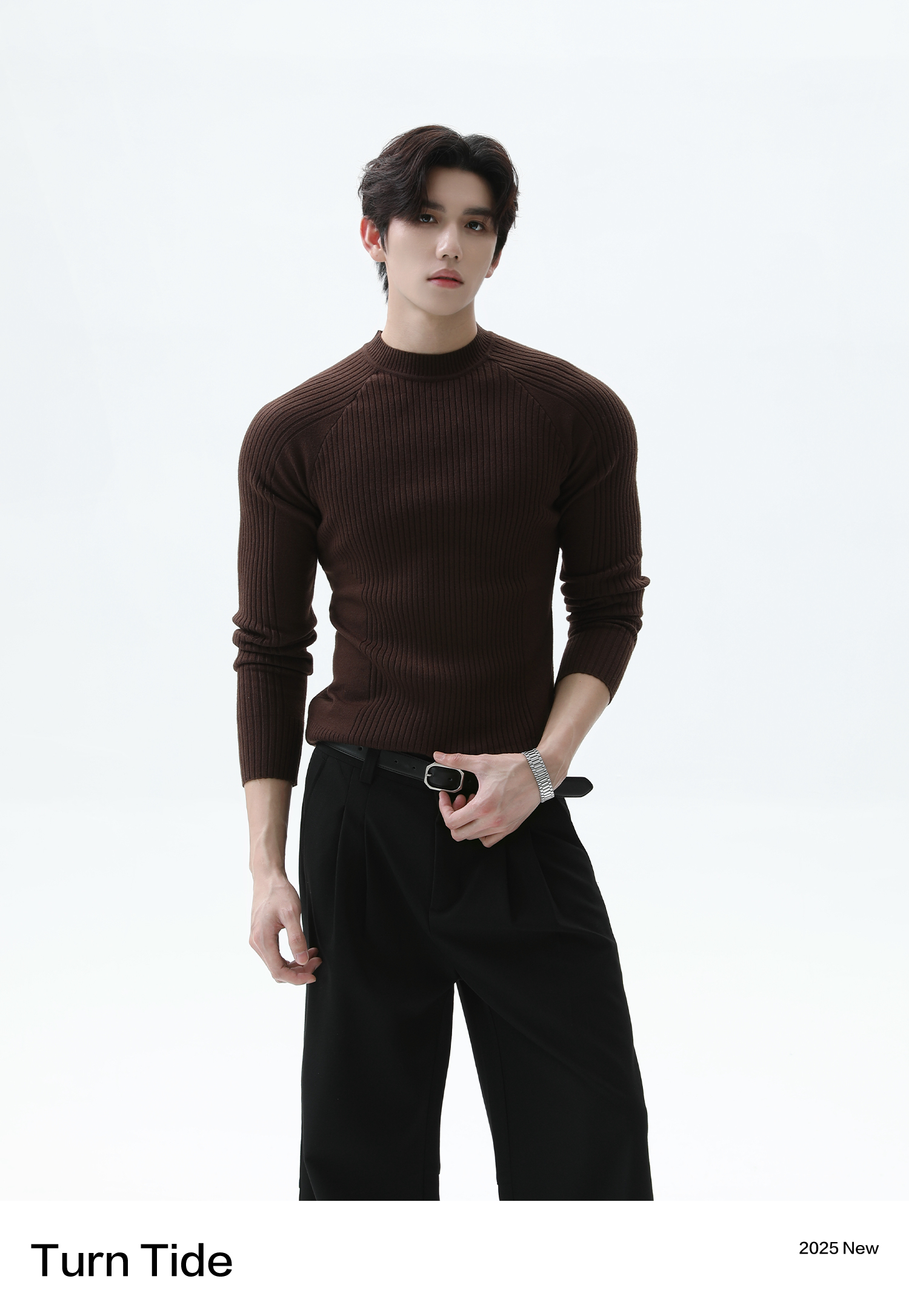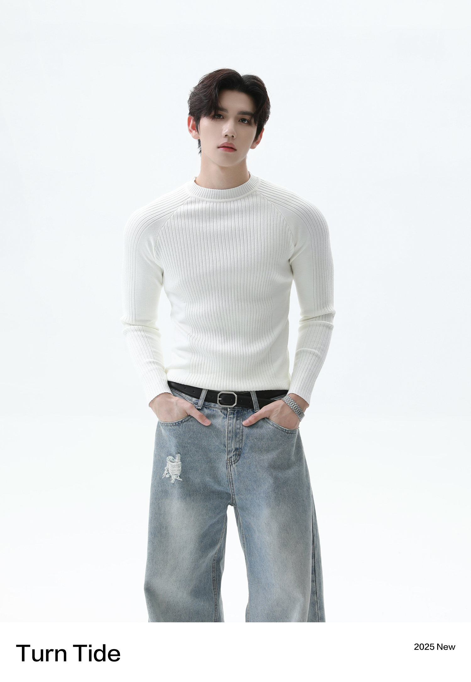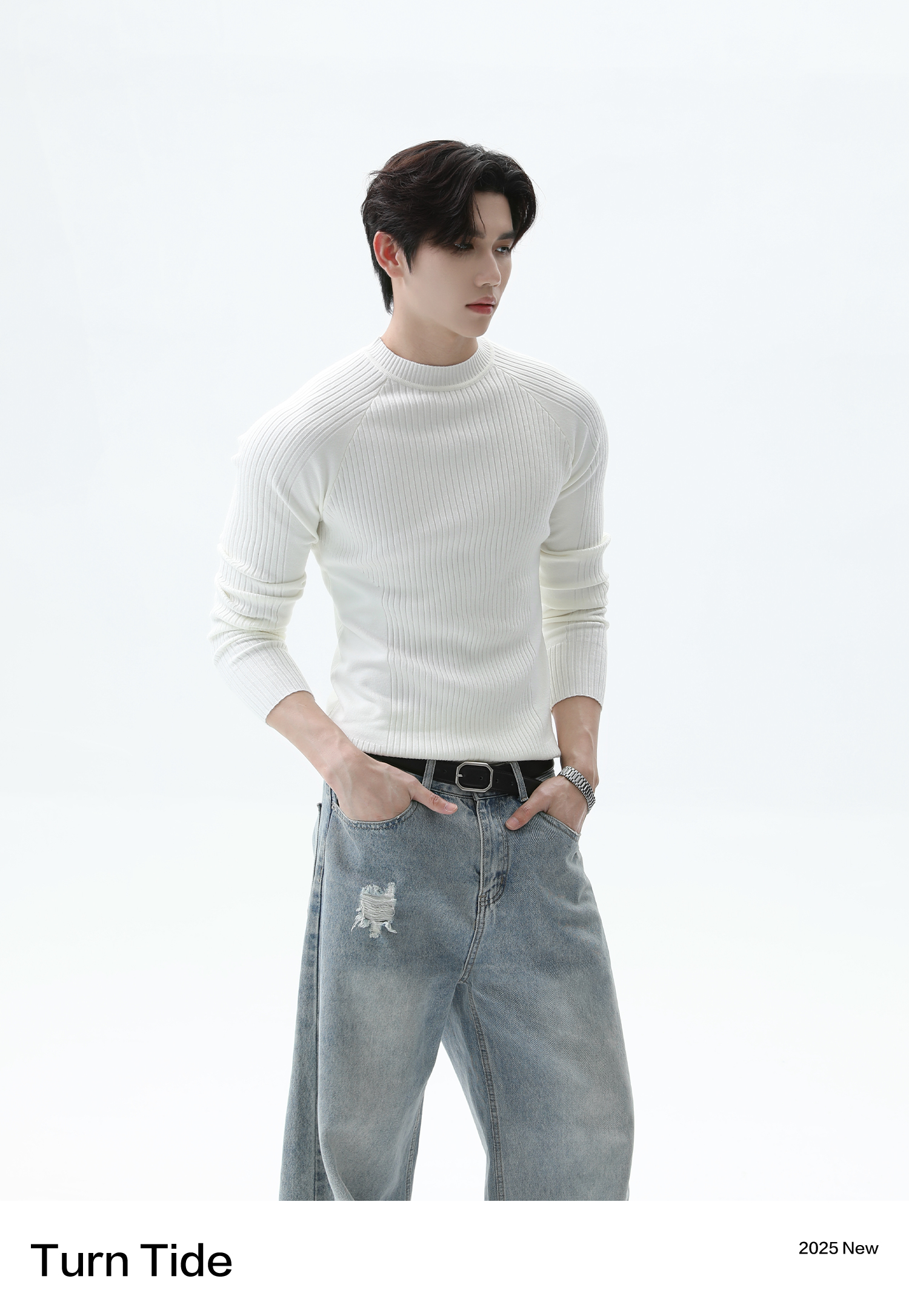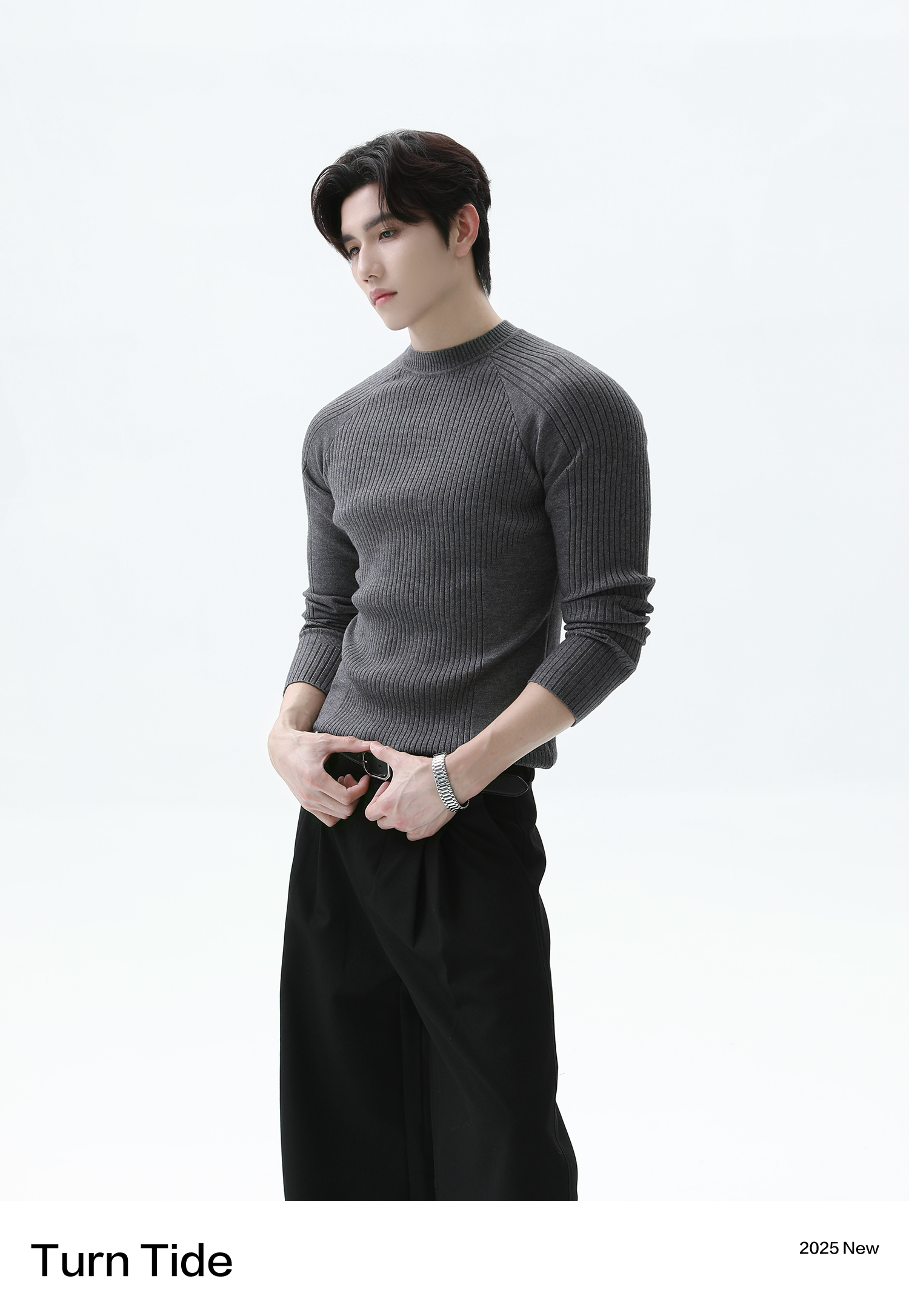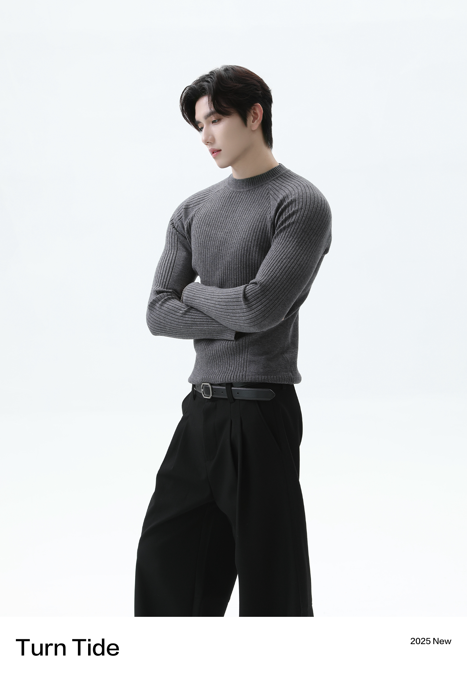 Turntide High-Quality Simple Structure Raglan Sleeve Slim-Fit Knit Ribbed Long-Sleeve T-Shirt for Layering