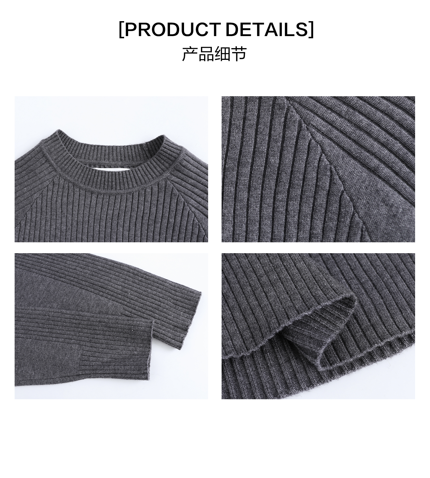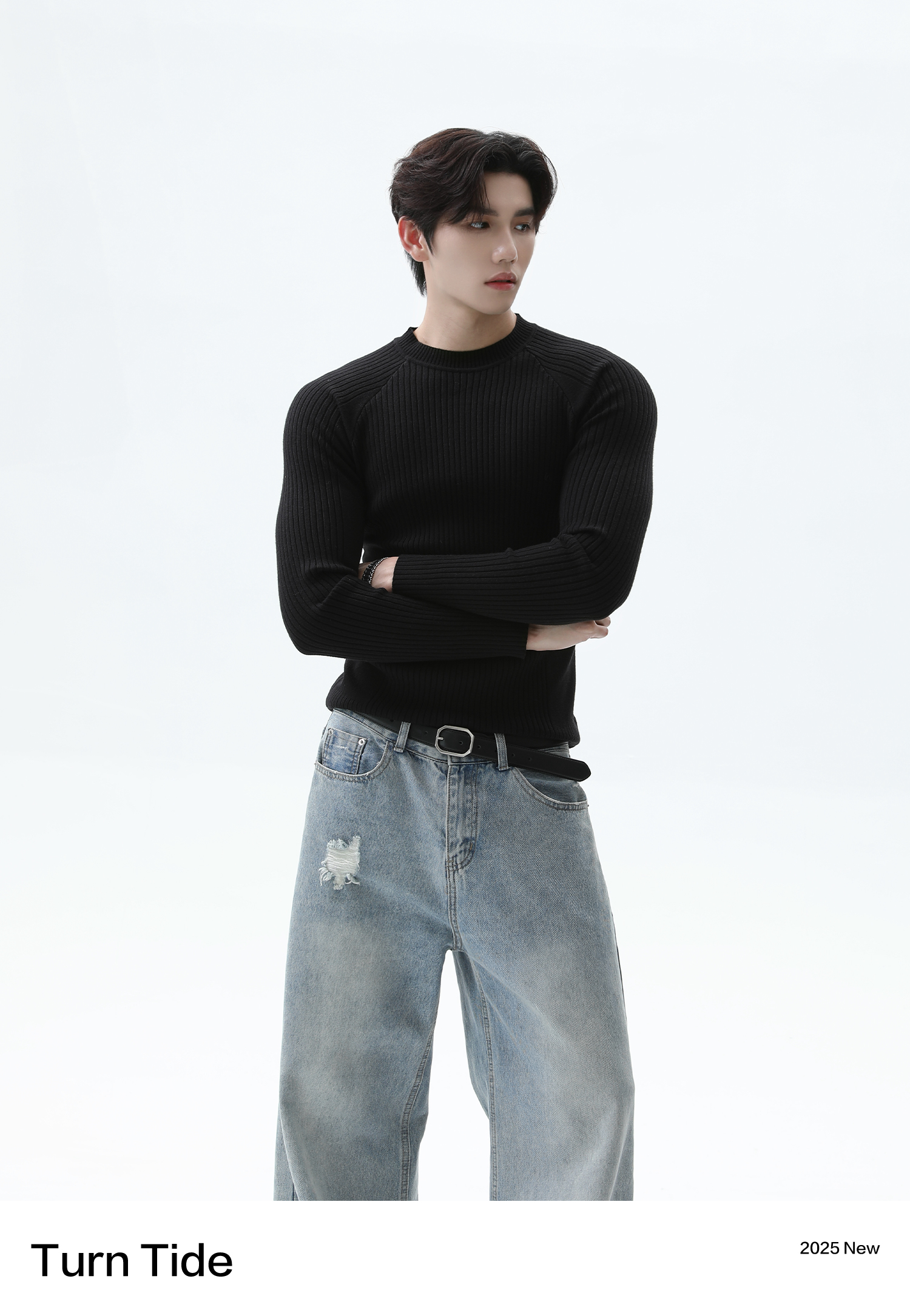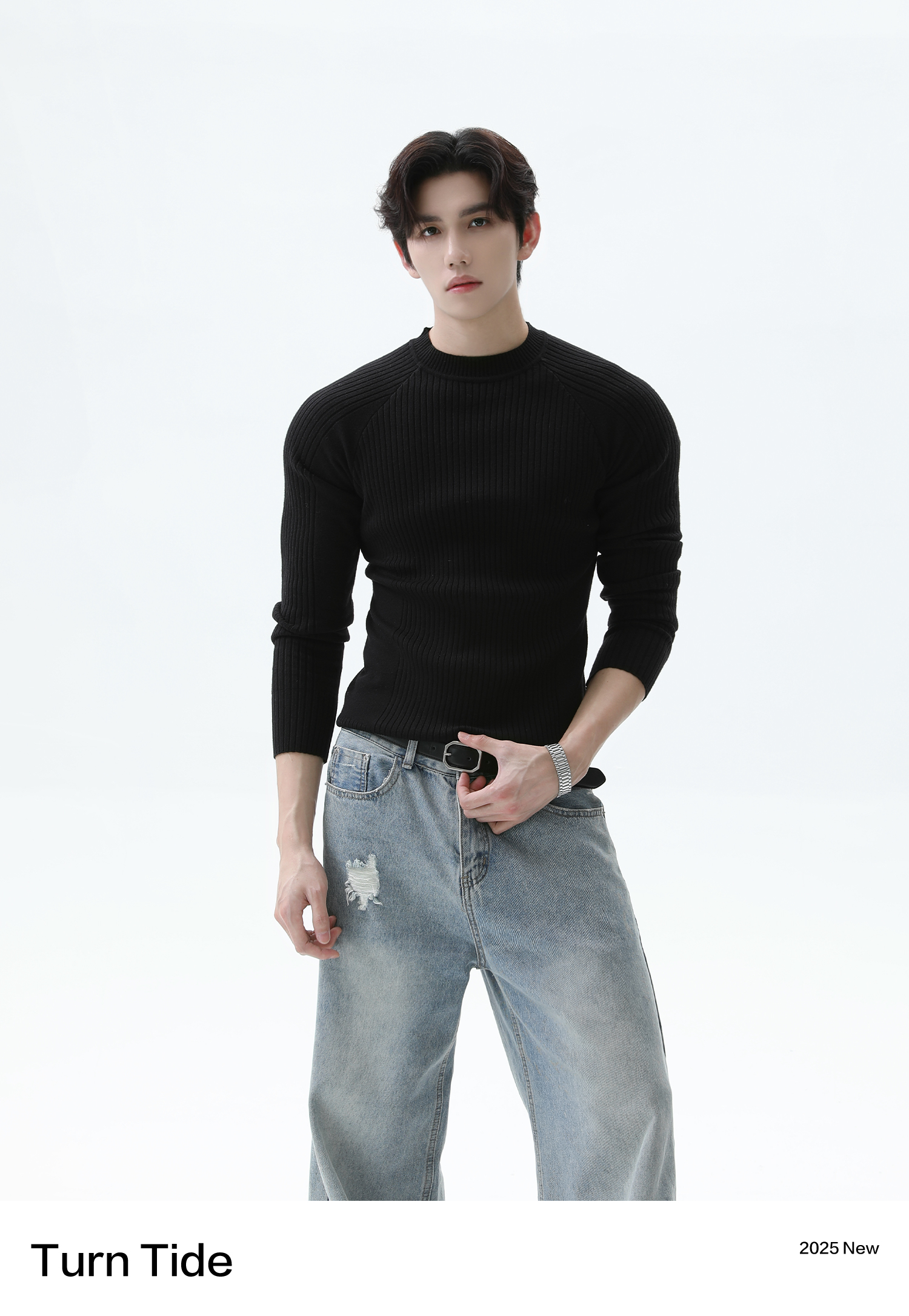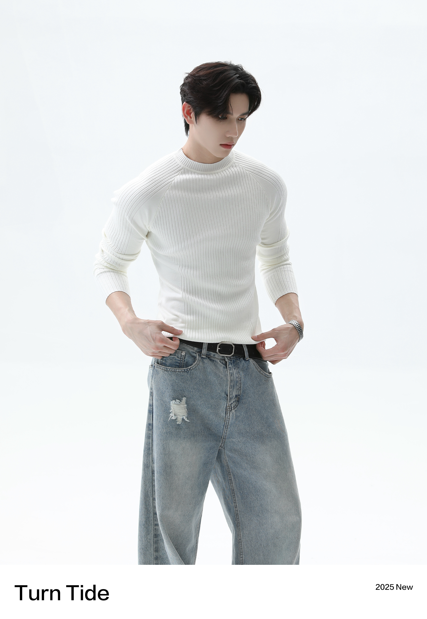 Turntide High-Quality Simple Structure Raglan Sleeve Slim-Fit Knit Ribbed Long-Sleeve T-Shirt for Layering