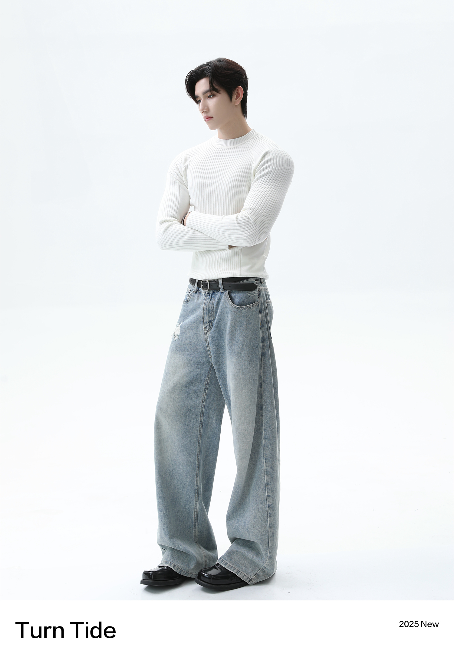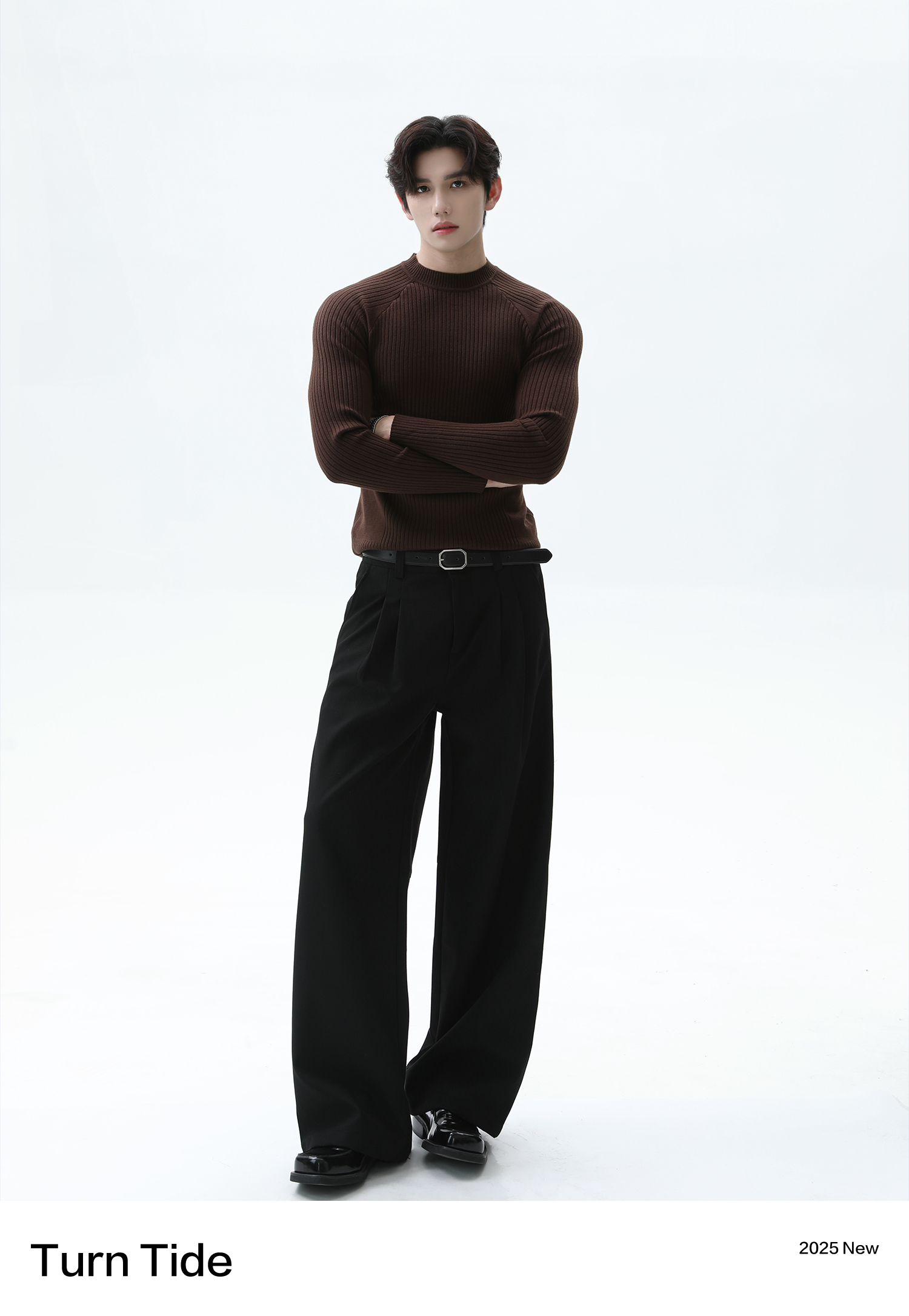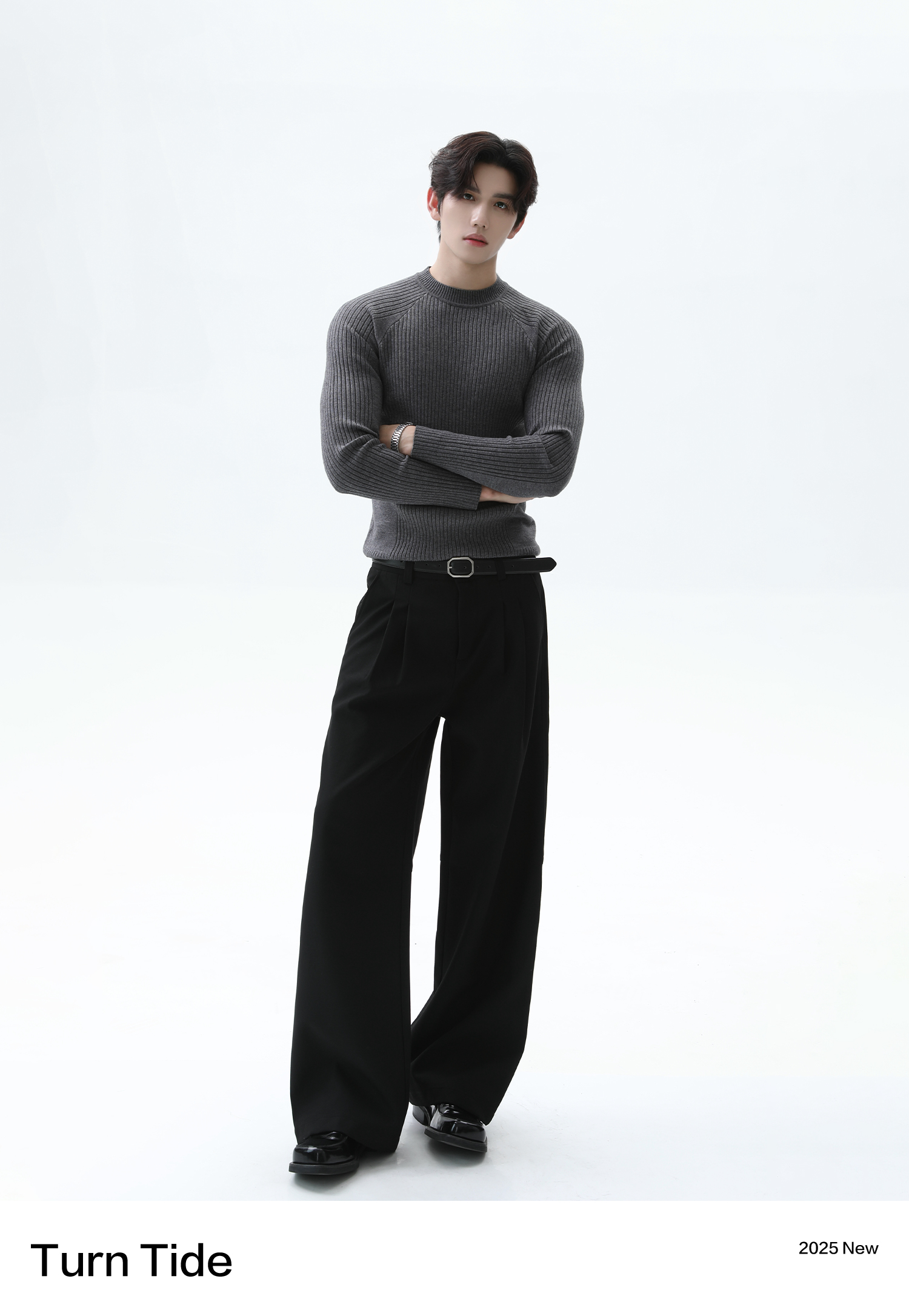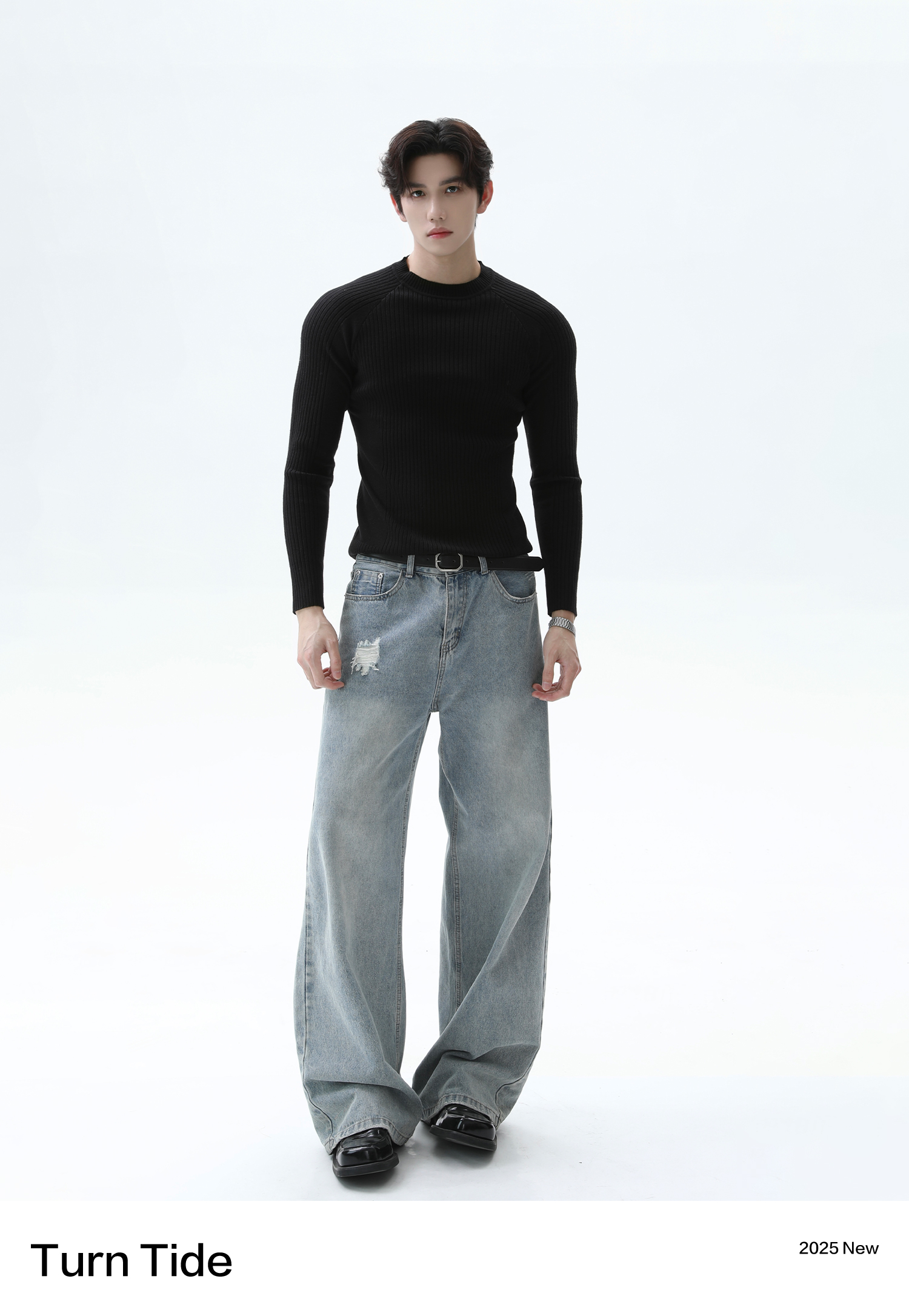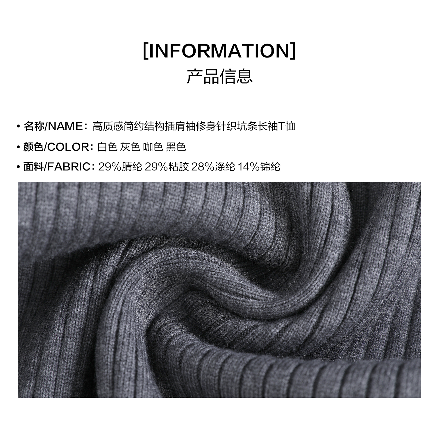 Turntide High-Quality Simple Structure Raglan Sleeve Slim-Fit Knit Ribbed Long-Sleeve T-Shirt for Layering