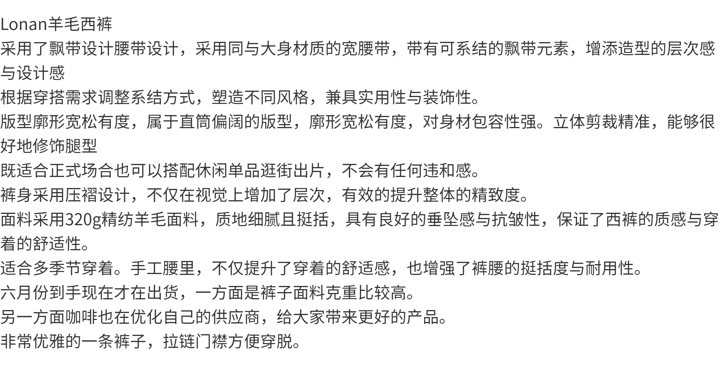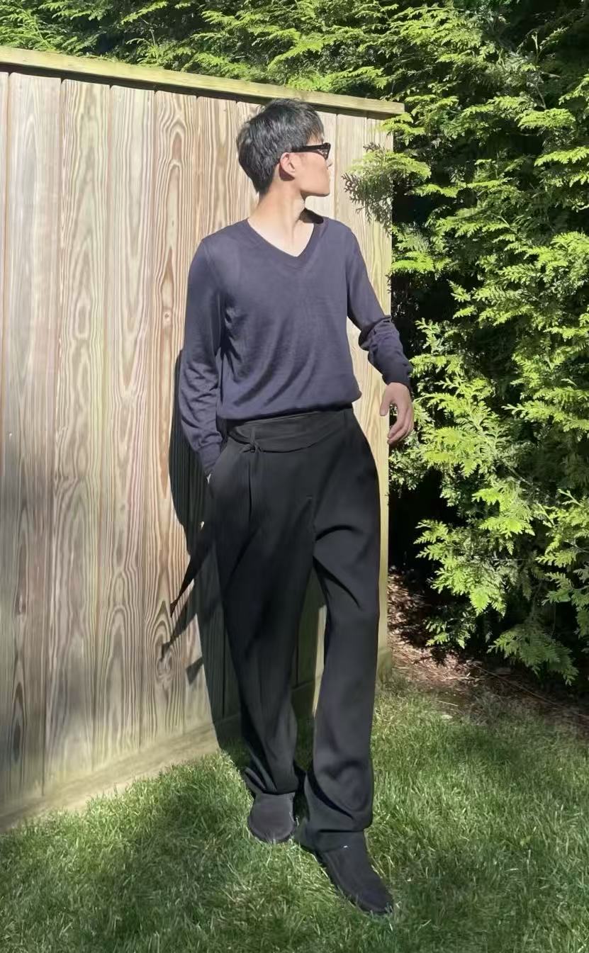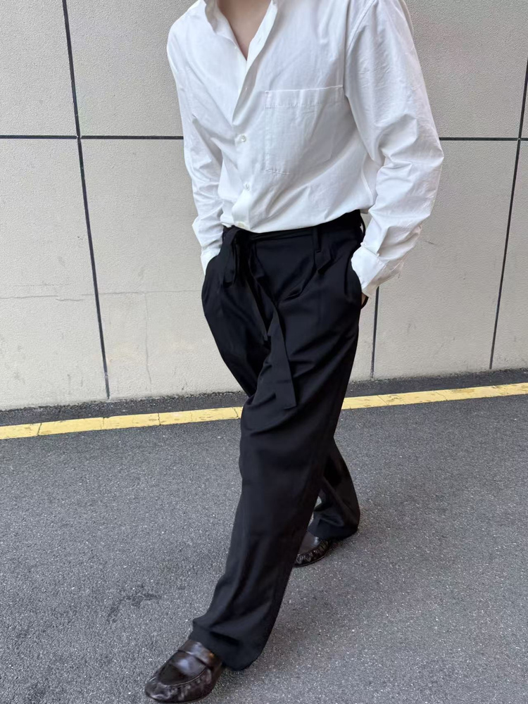 Row style Lonan style worsted high luxury twill silhouette Loose wool trousers