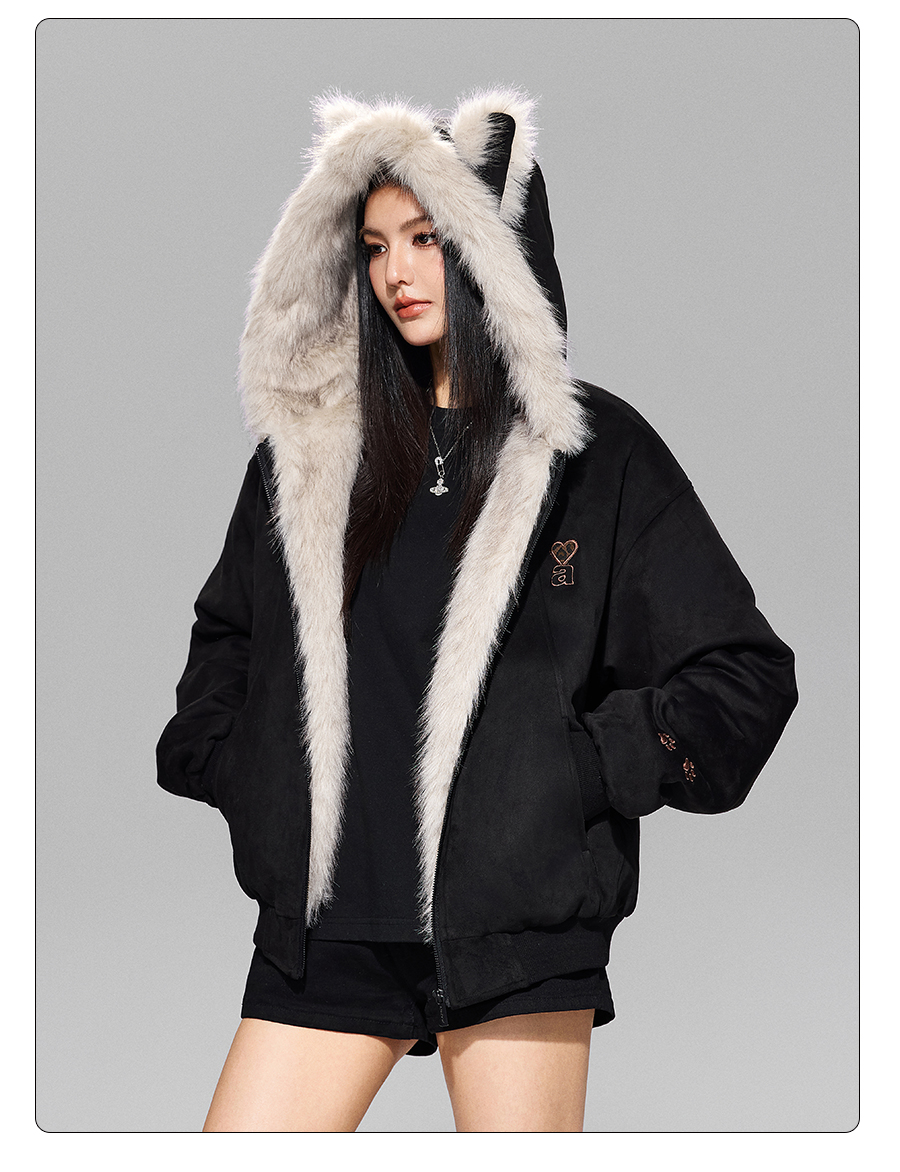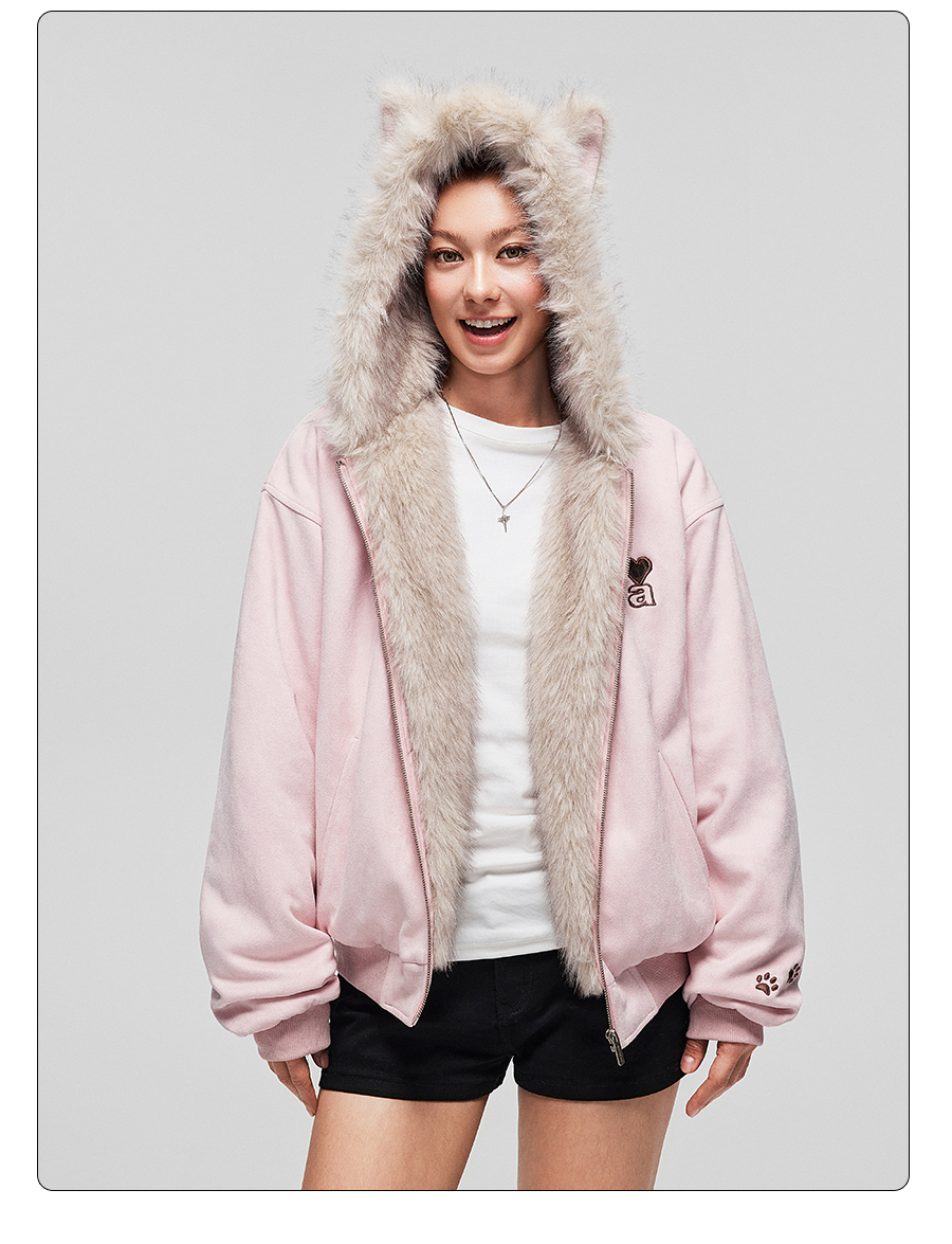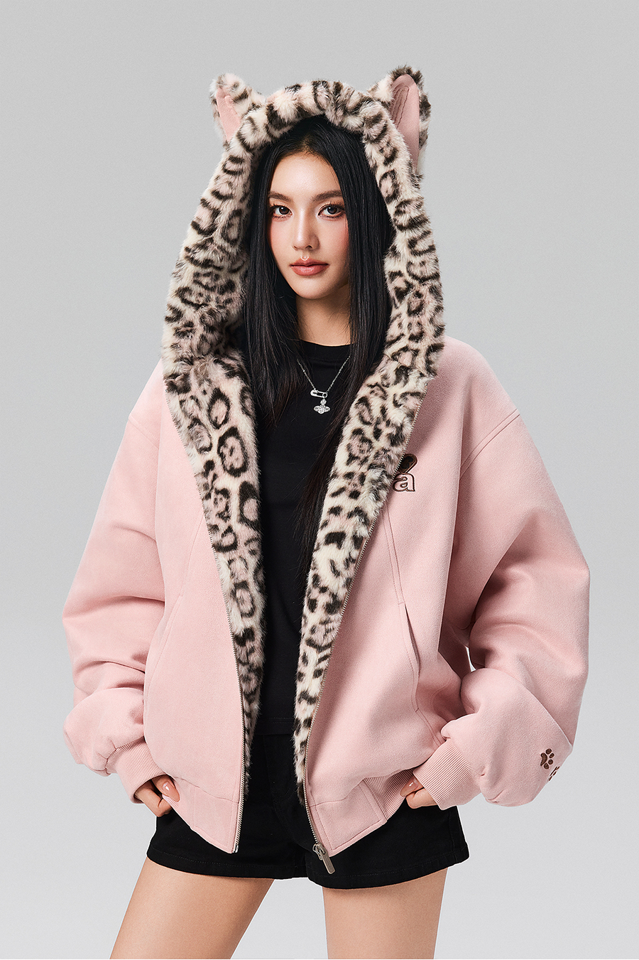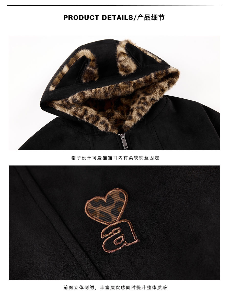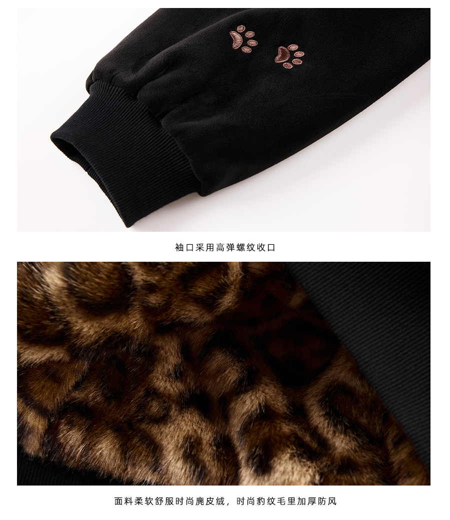 【Achock Official Store】Mu Zhicheng's Same Style Rabbit Ear Warm Sweatshirt Leopard Print Zipper Hooded Fleece Jacket