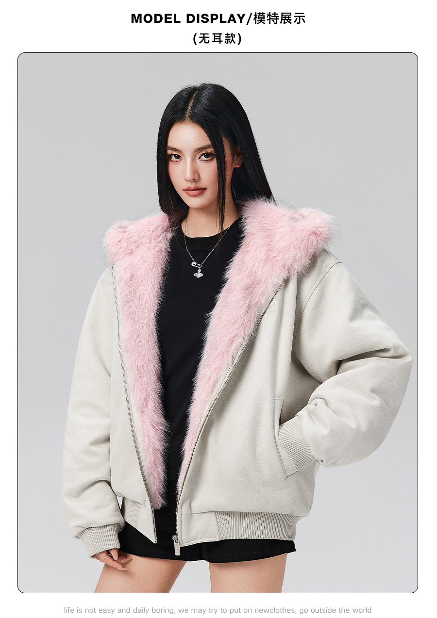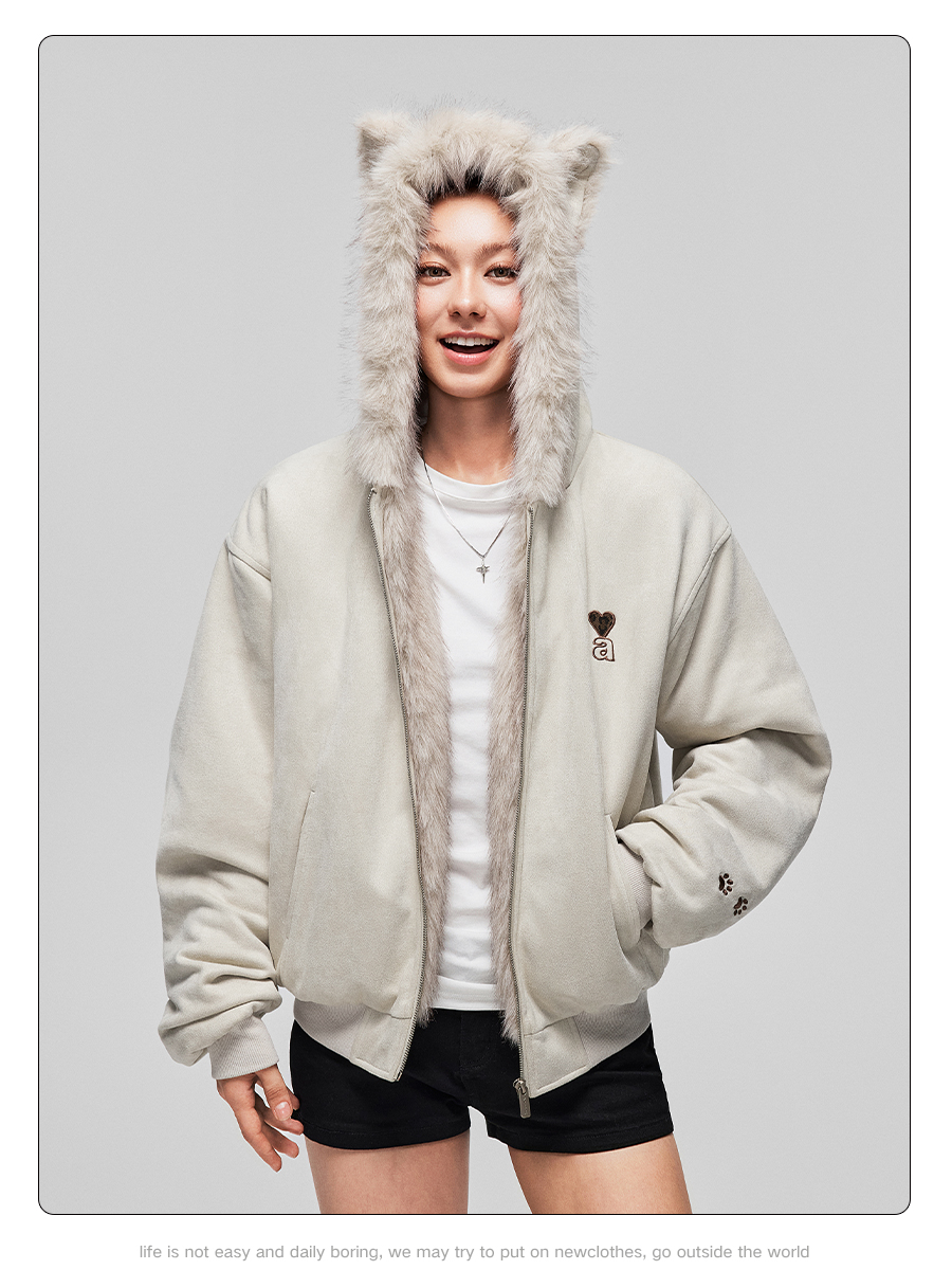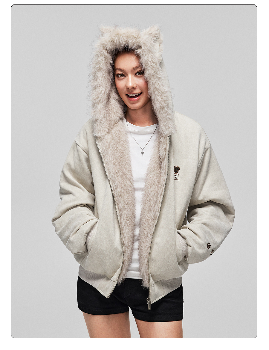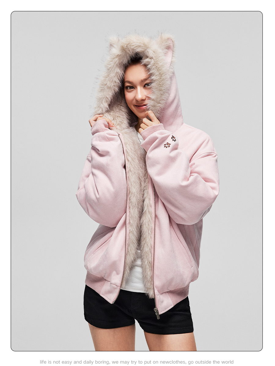 【Achock Official Store】Mu Zhicheng's Same Style Rabbit Ear Warm Sweatshirt Leopard Print Zipper Hooded Fleece Jacket