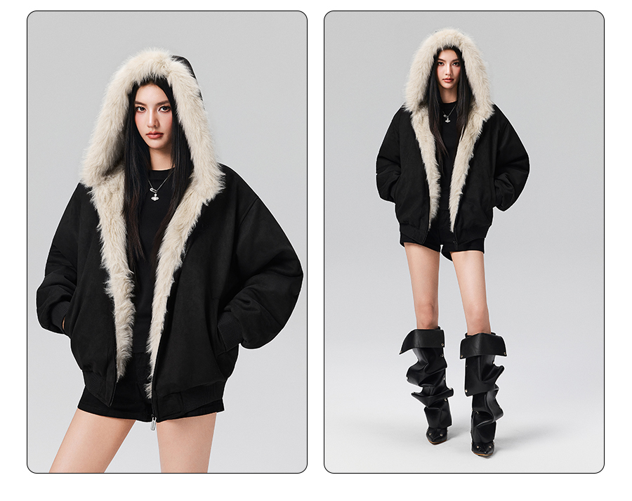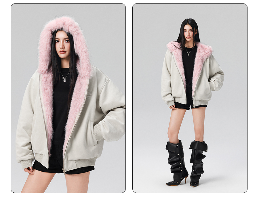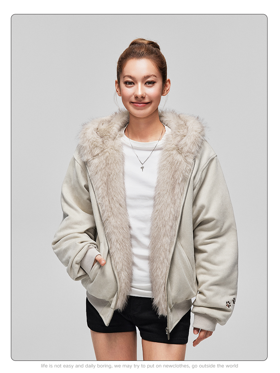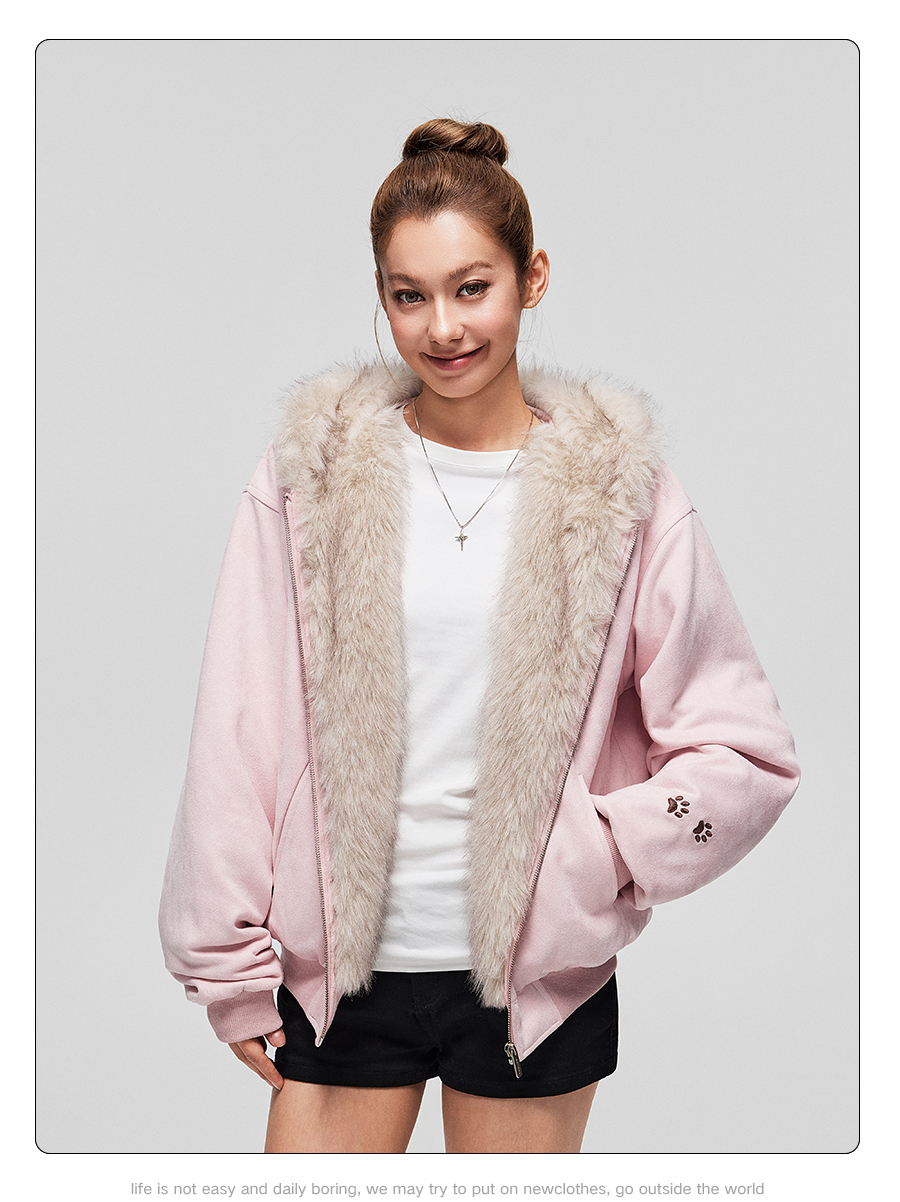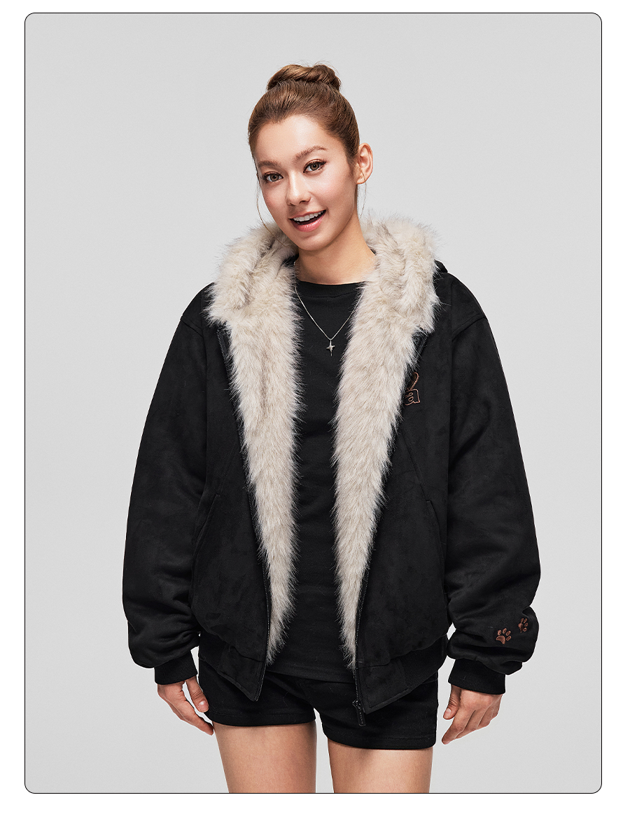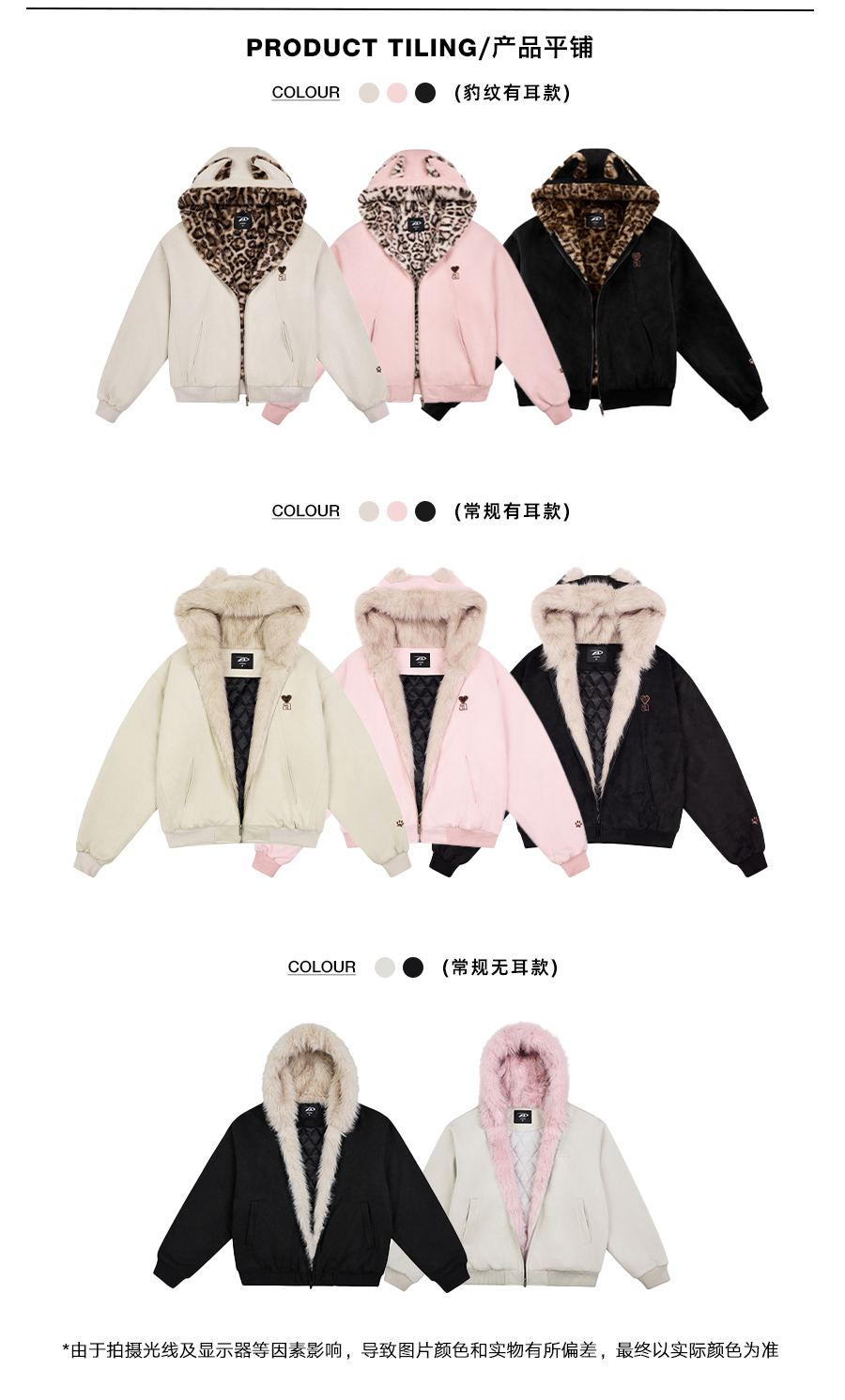 【Achock Official Store】Mu Zhicheng's Same Style Rabbit Ear Warm Sweatshirt Leopard Print Zipper Hooded Fleece Jacket