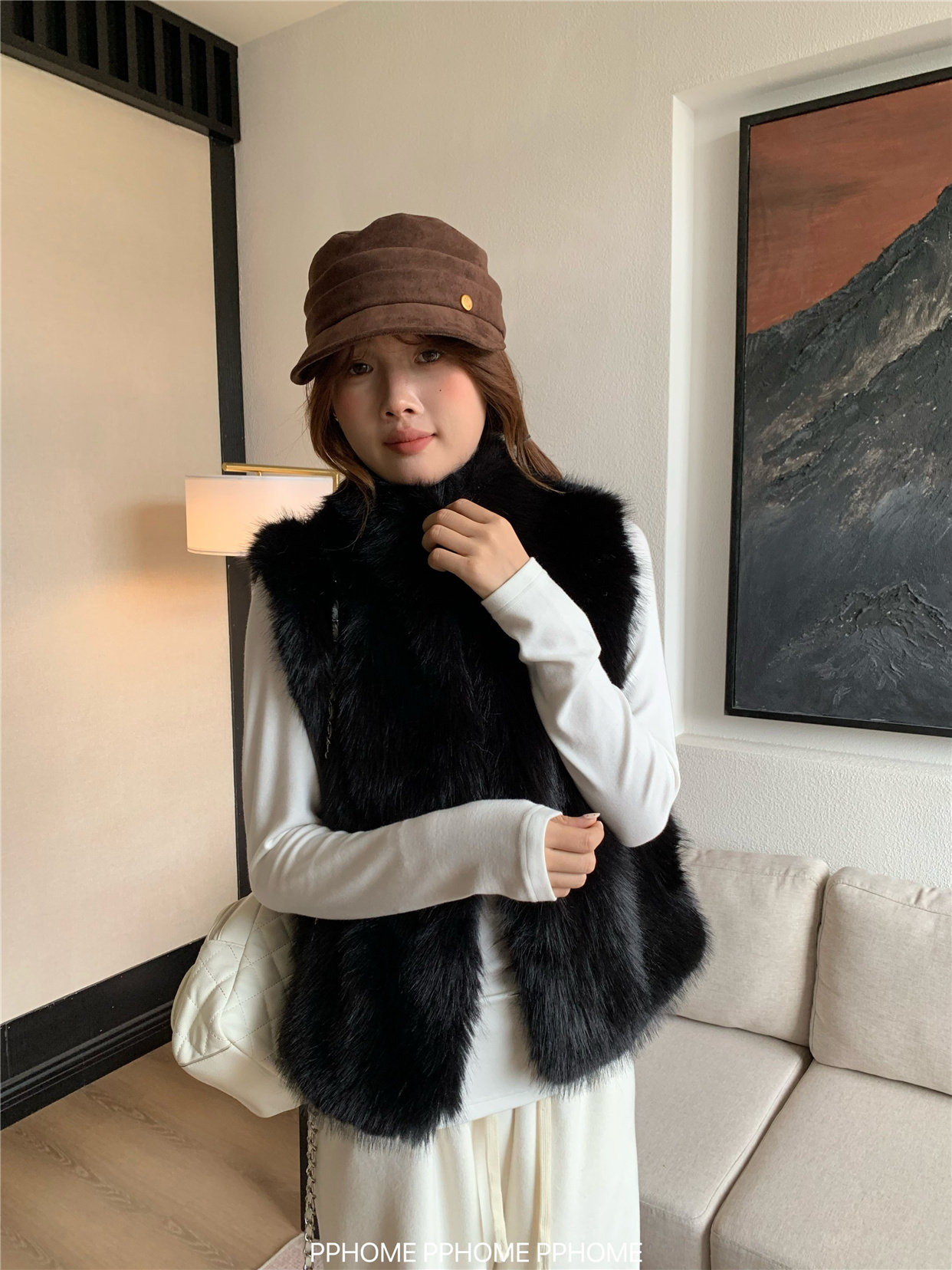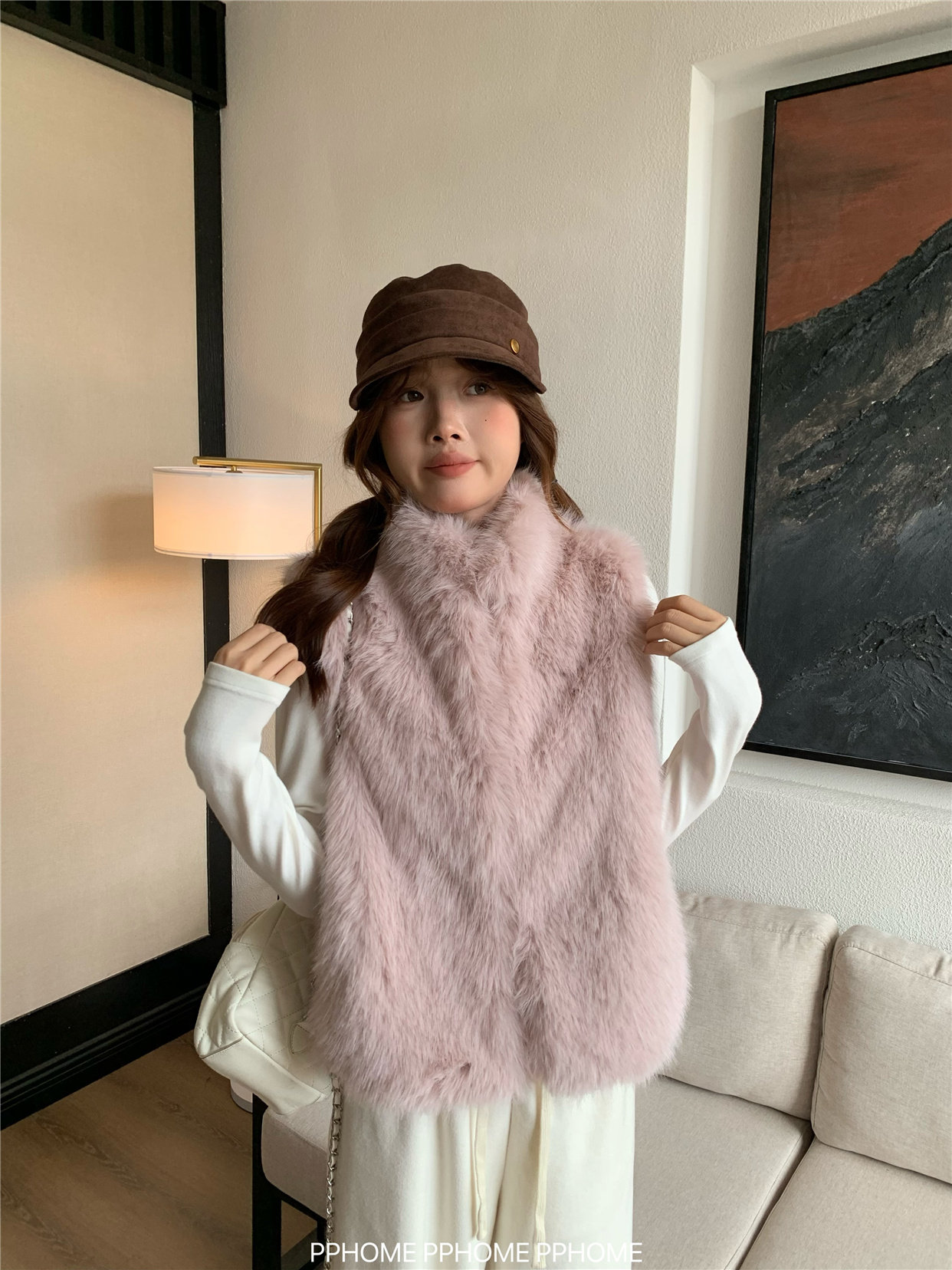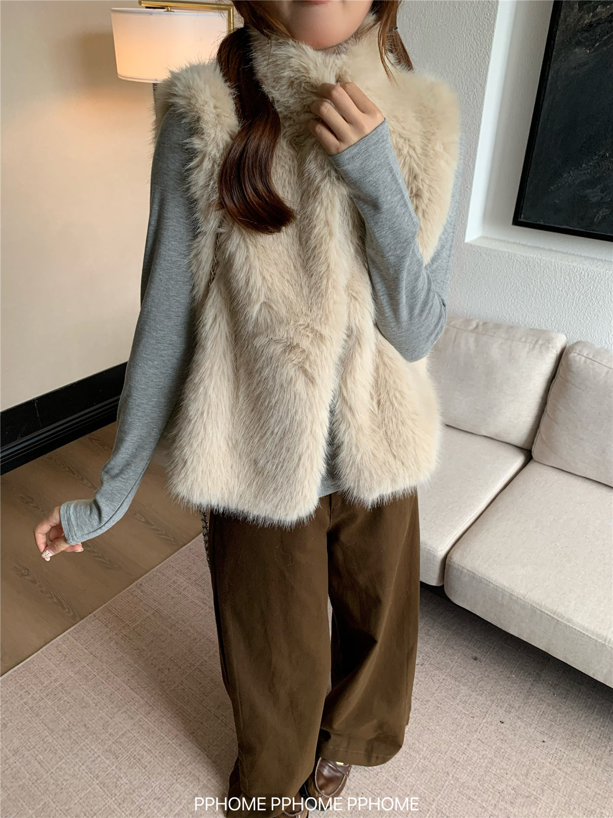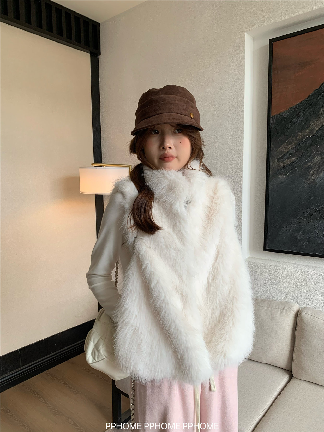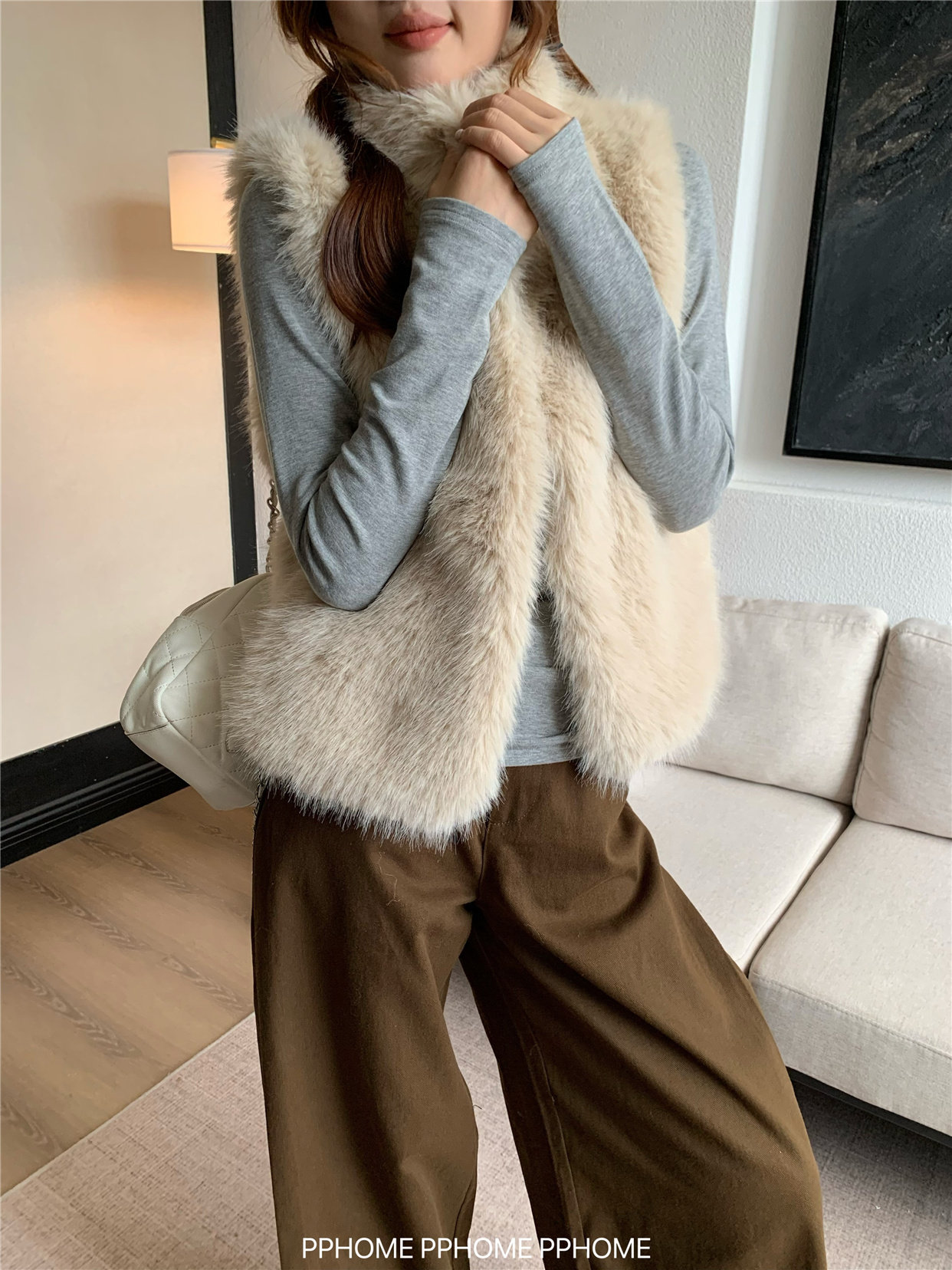 Pphome LAOSHU ~ Faux Fur Vest Eco-Friendly Fur Vest Coat Loose Autumn and Winter Stand Collar Vest Fur Coat