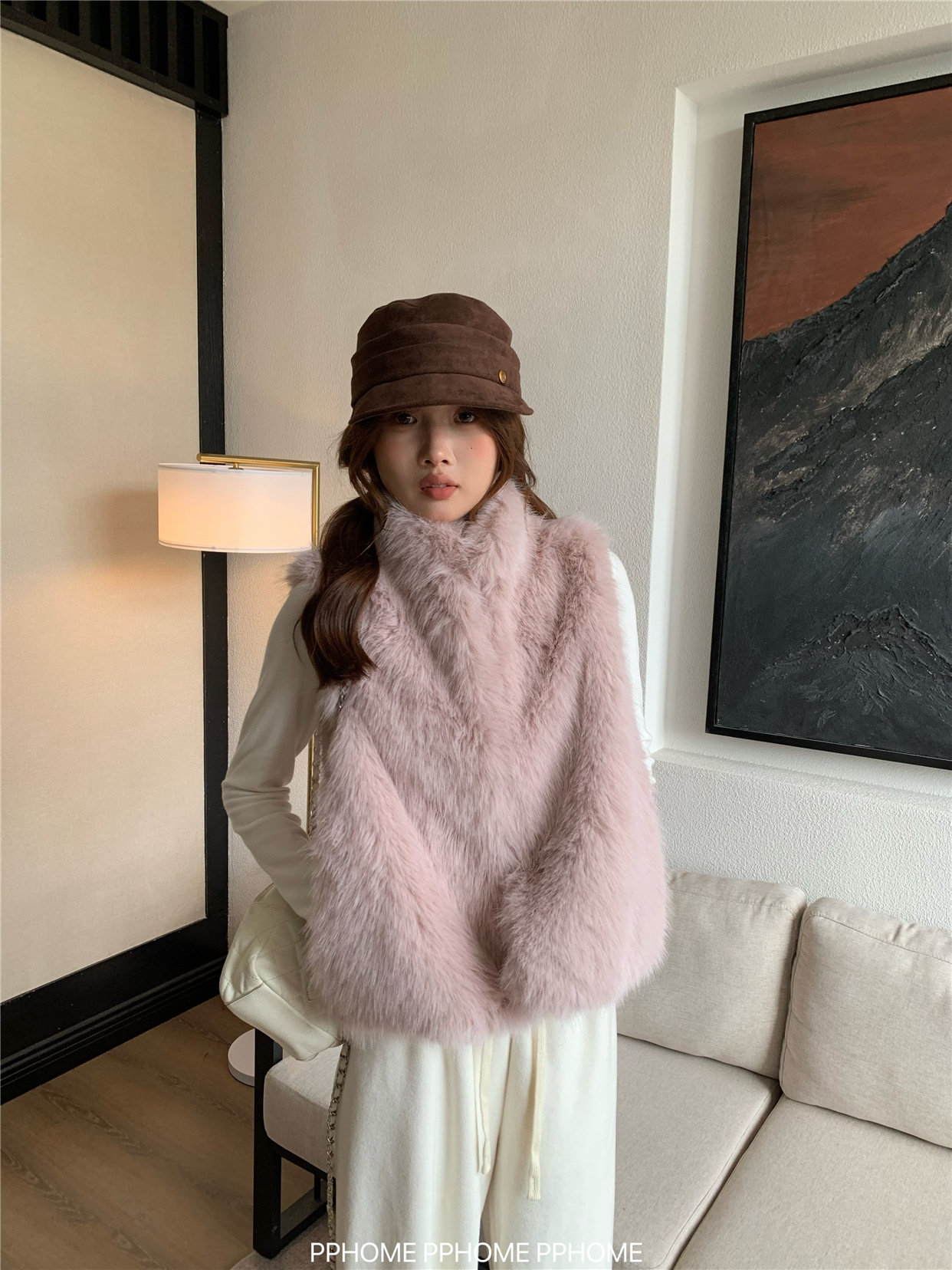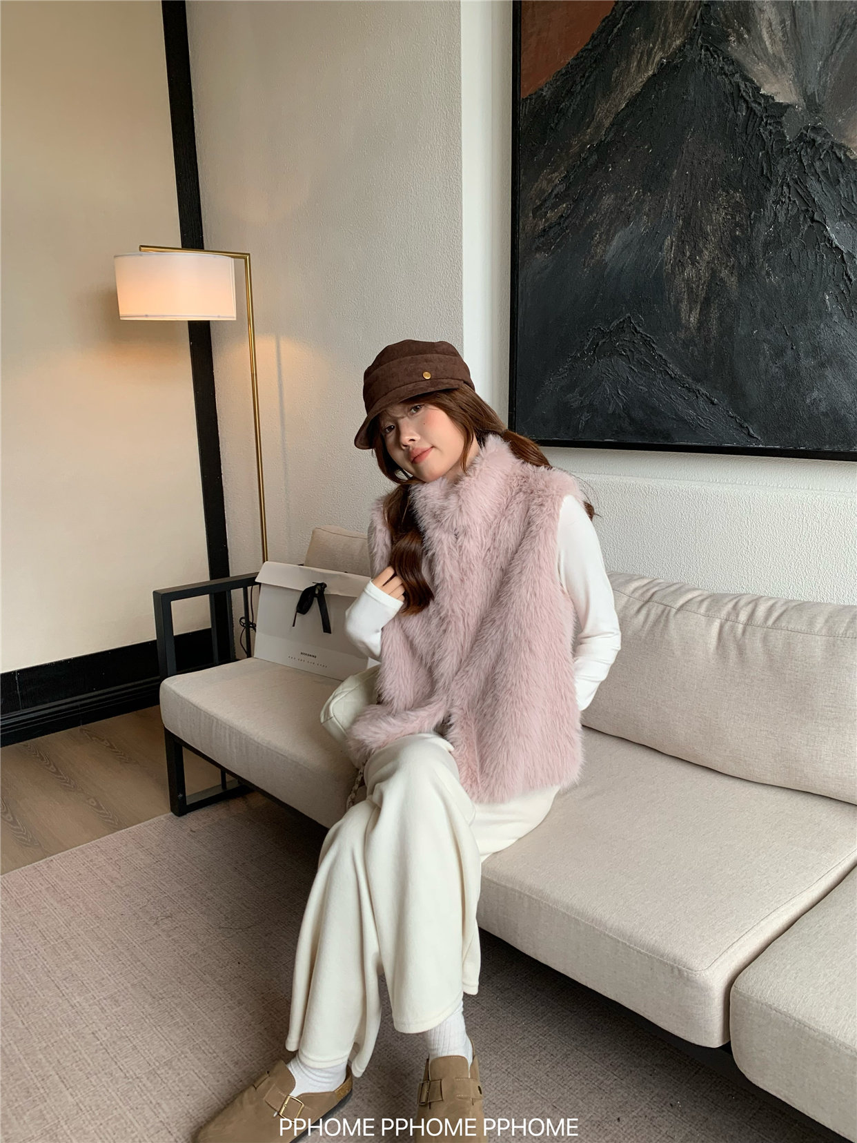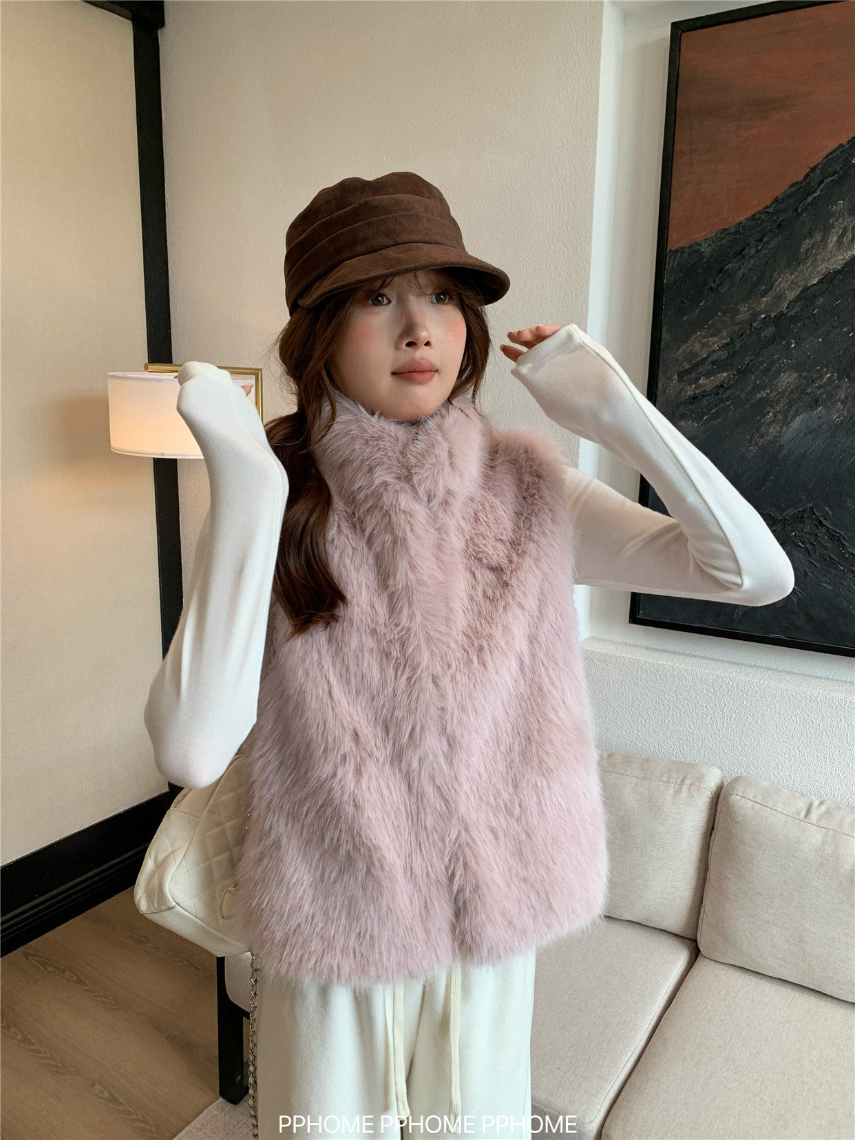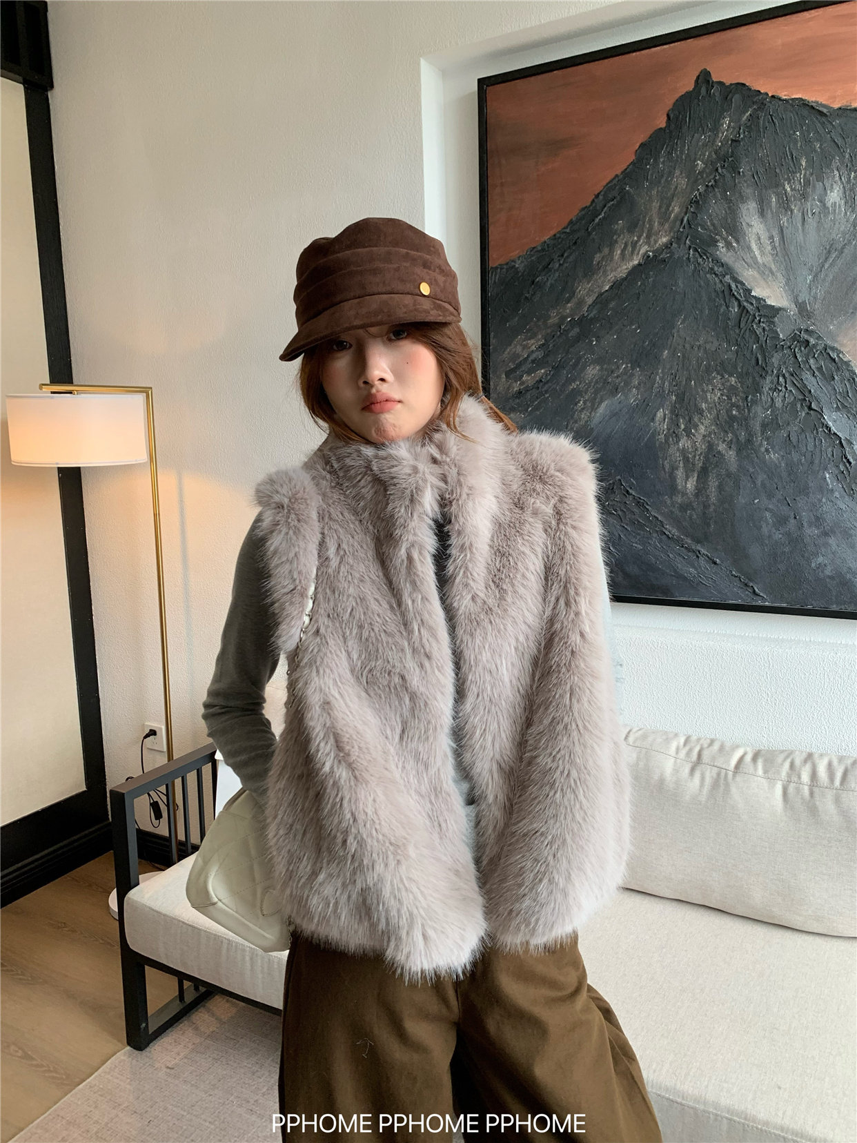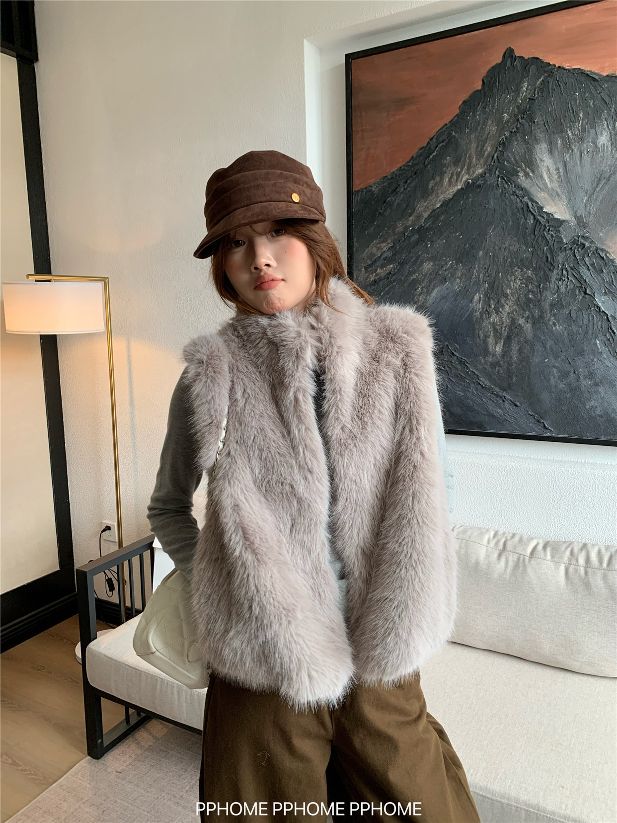 Pphome LAOSHU ~ Faux Fur Vest Eco-Friendly Fur Vest Coat Loose Autumn and Winter Stand Collar Vest Fur Coat
