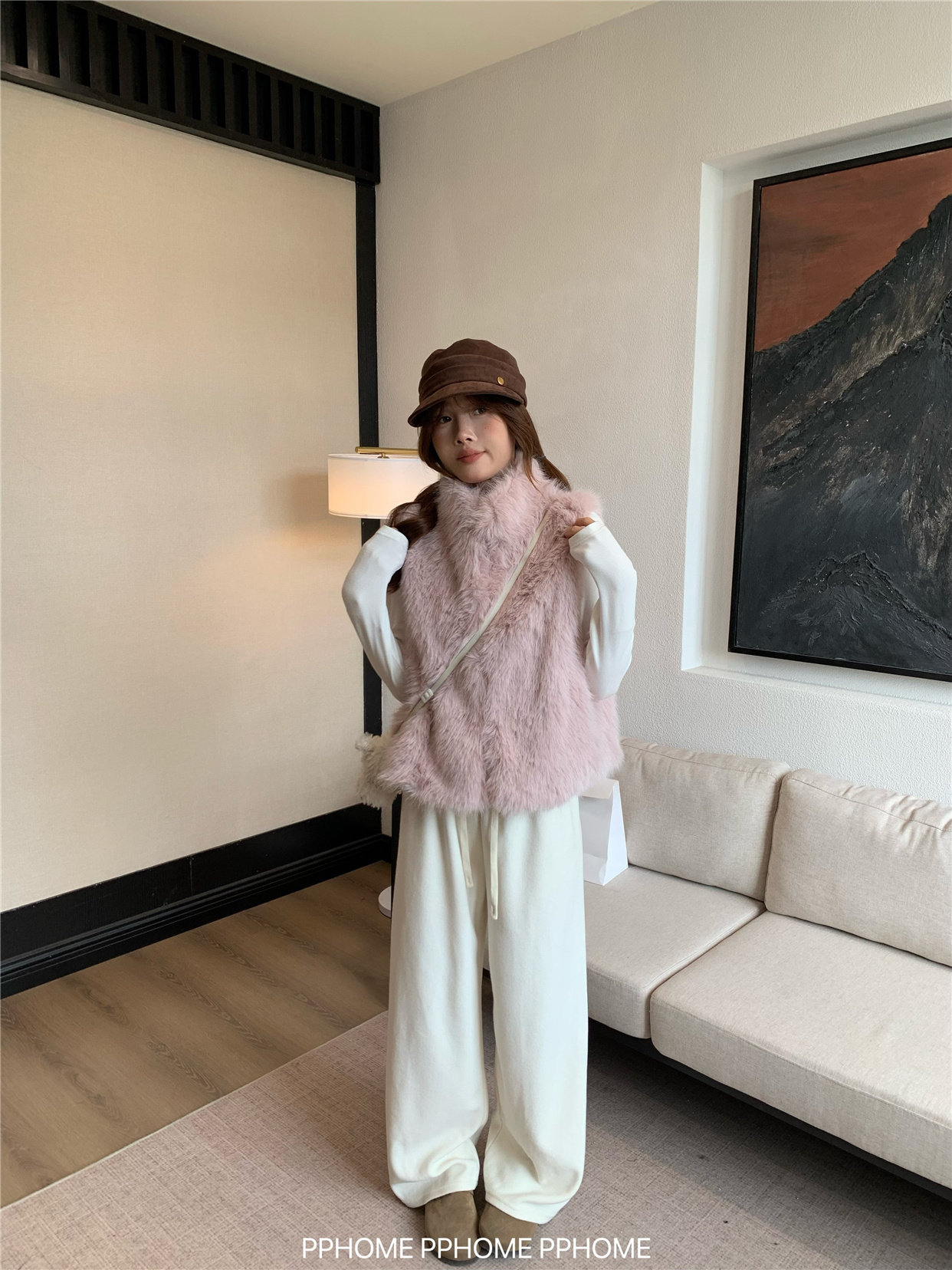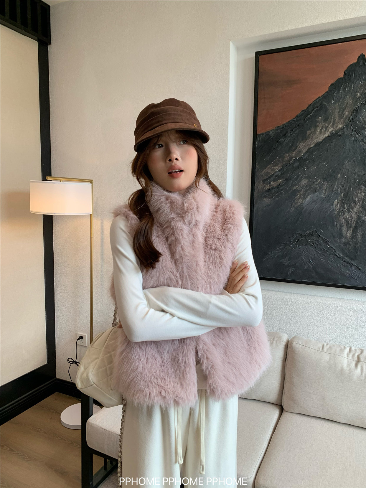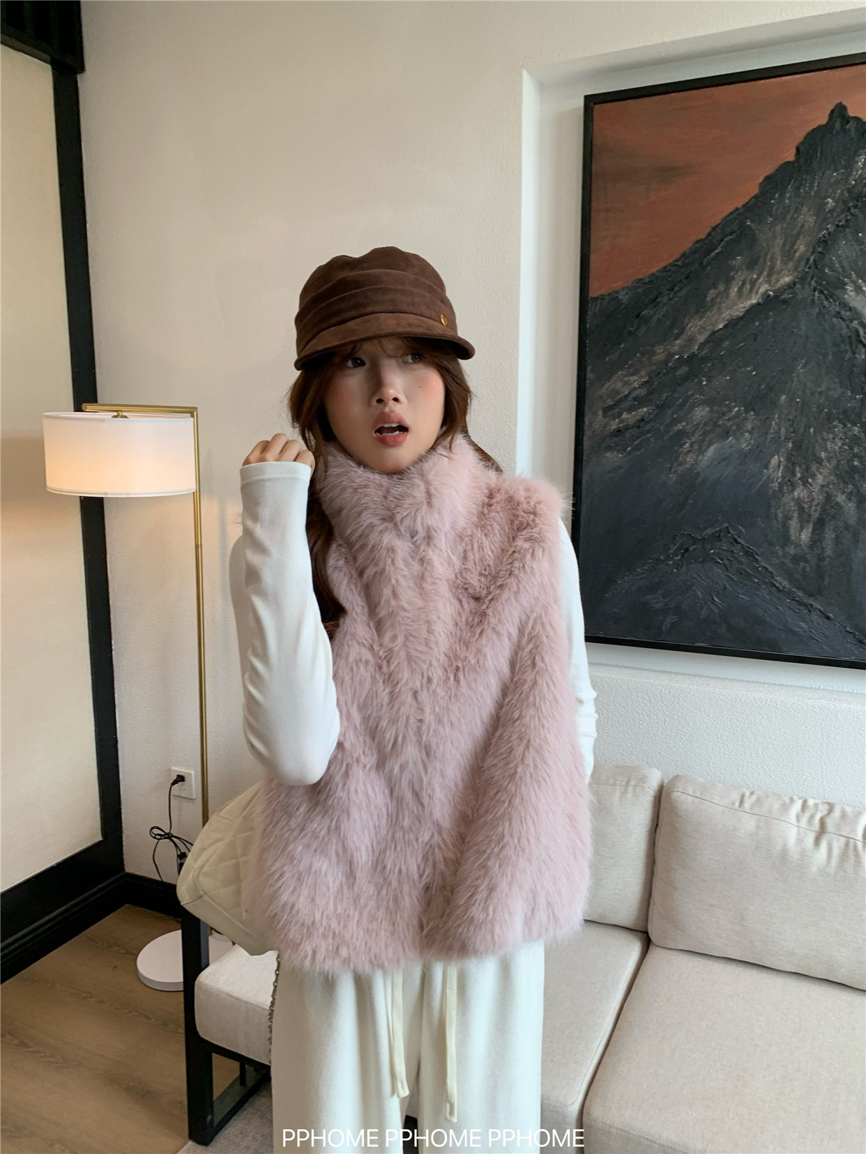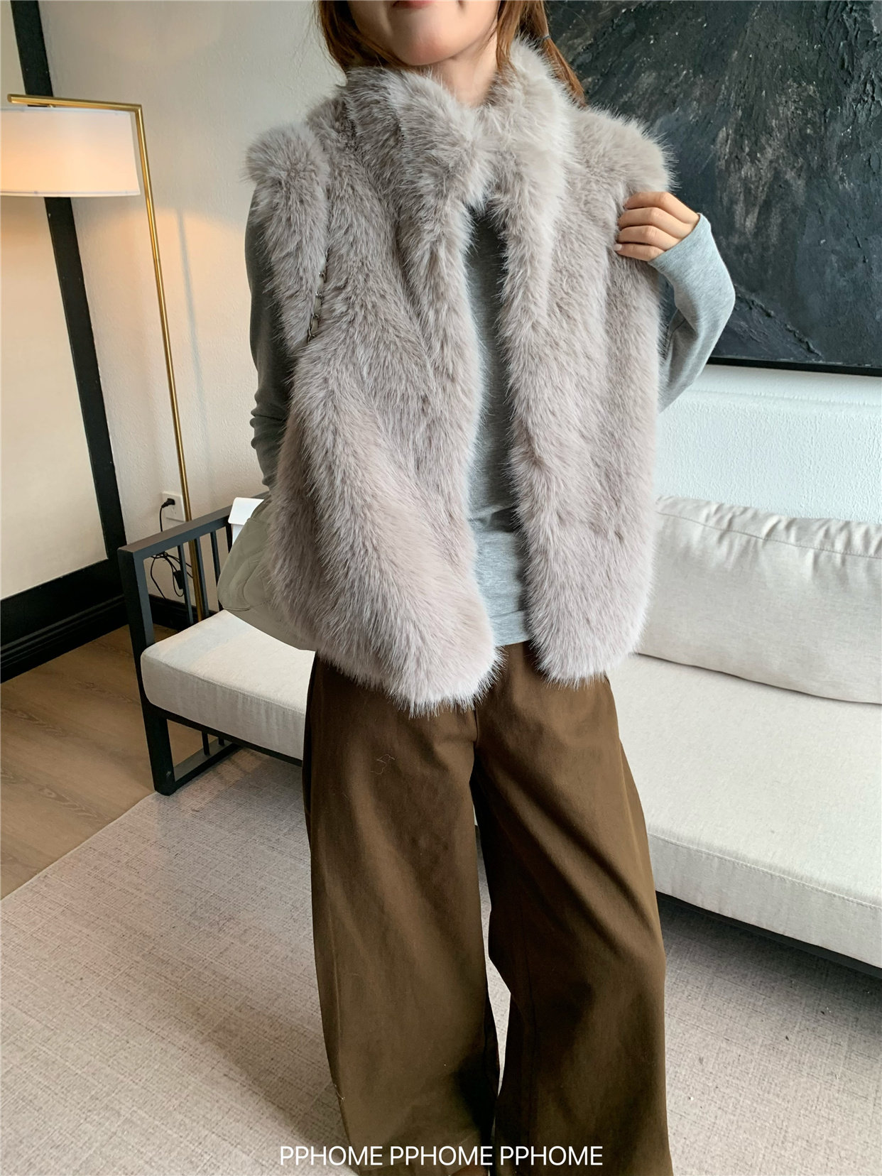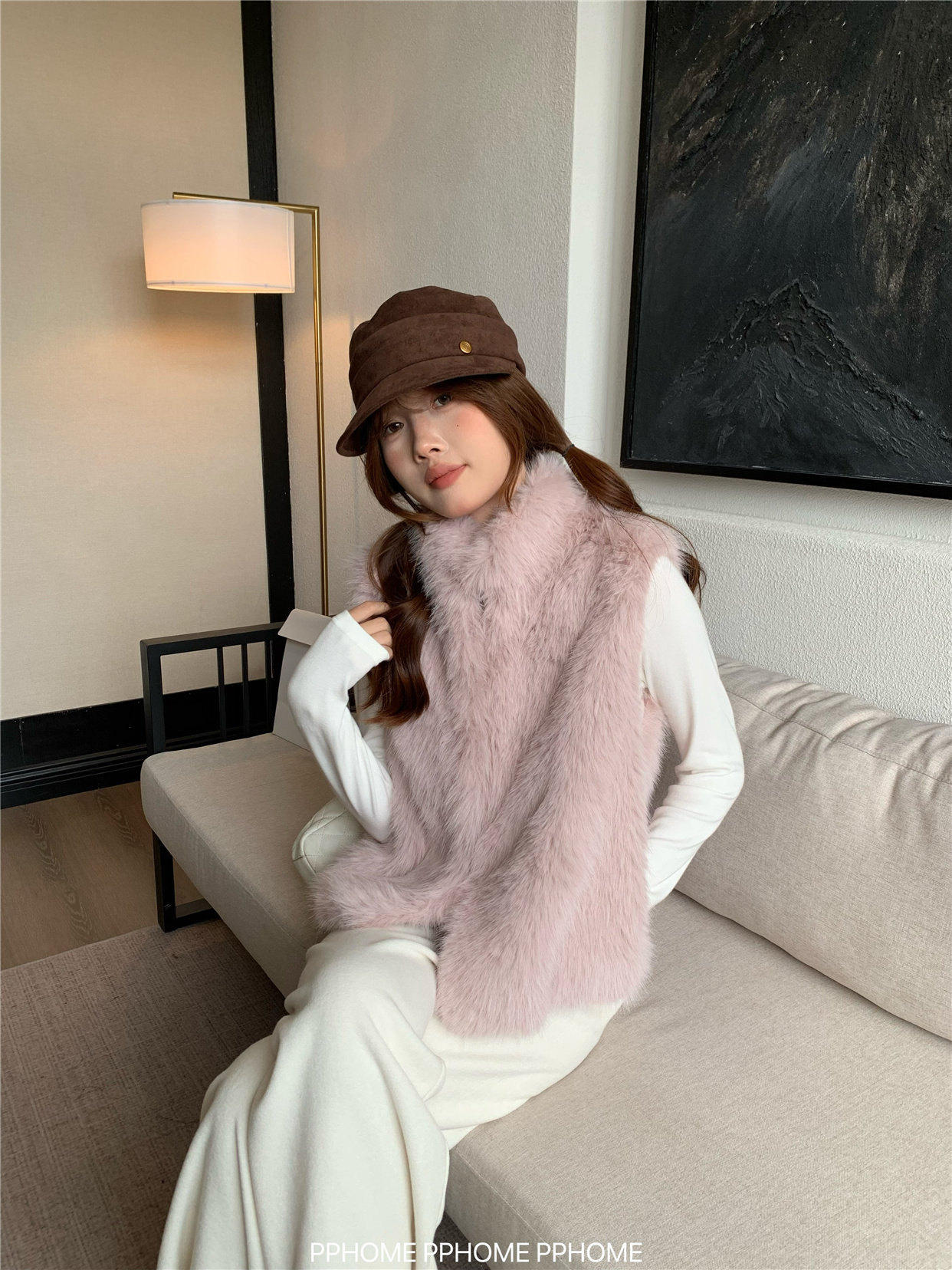 Pphome LAOSHU ~ Faux Fur Vest Eco-Friendly Fur Vest Coat Loose Autumn and Winter Stand Collar Vest Fur Coat
