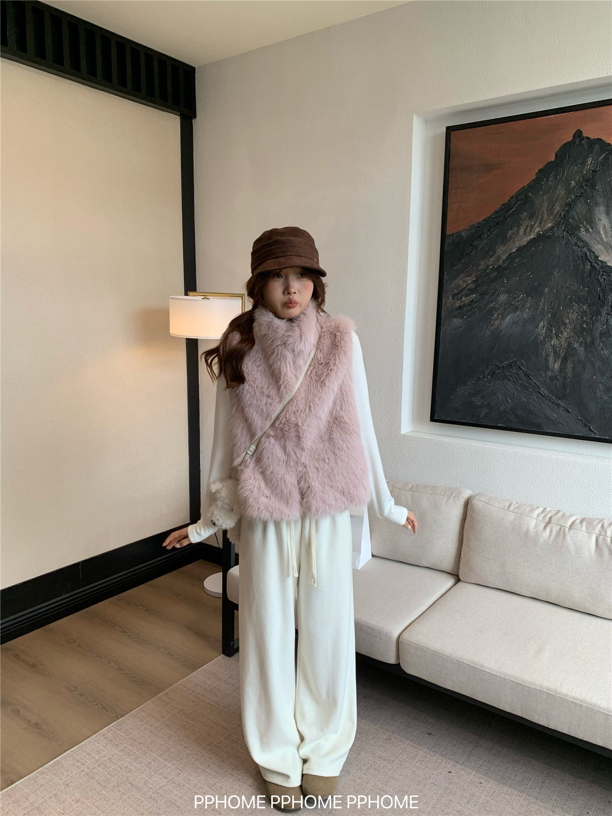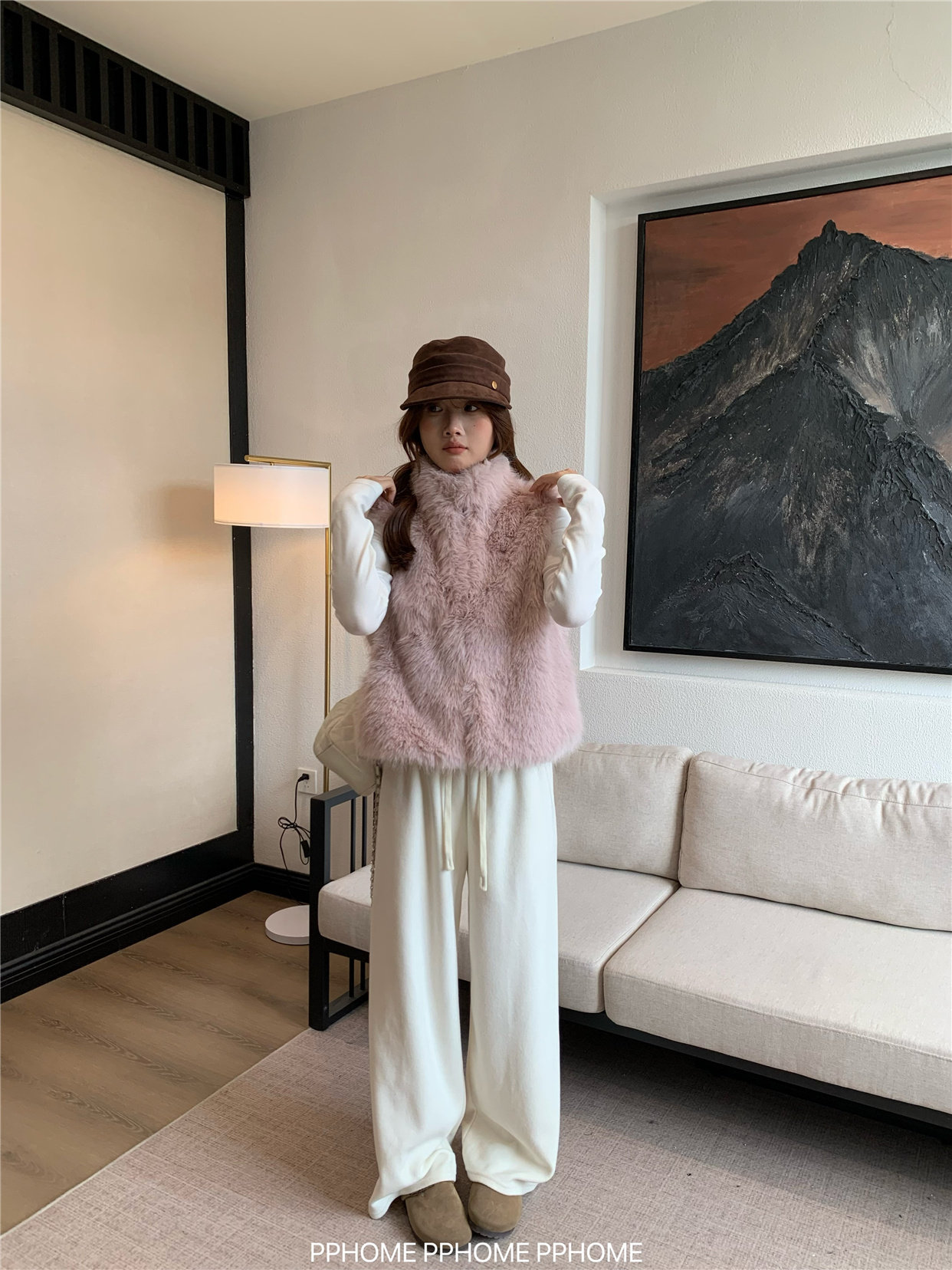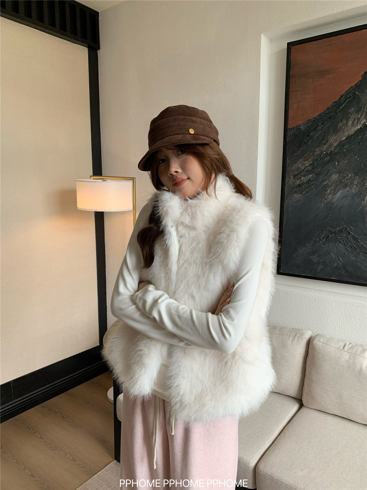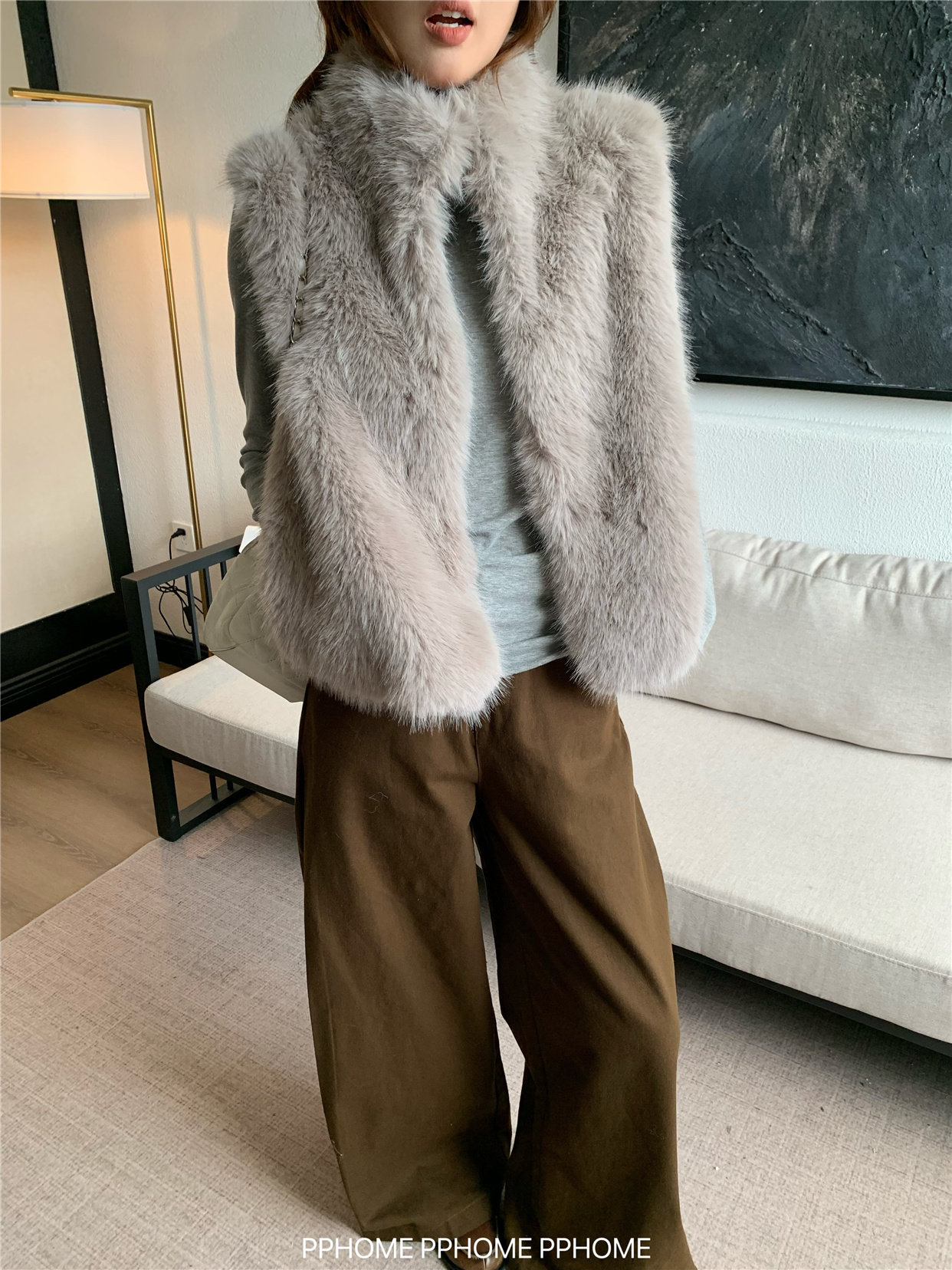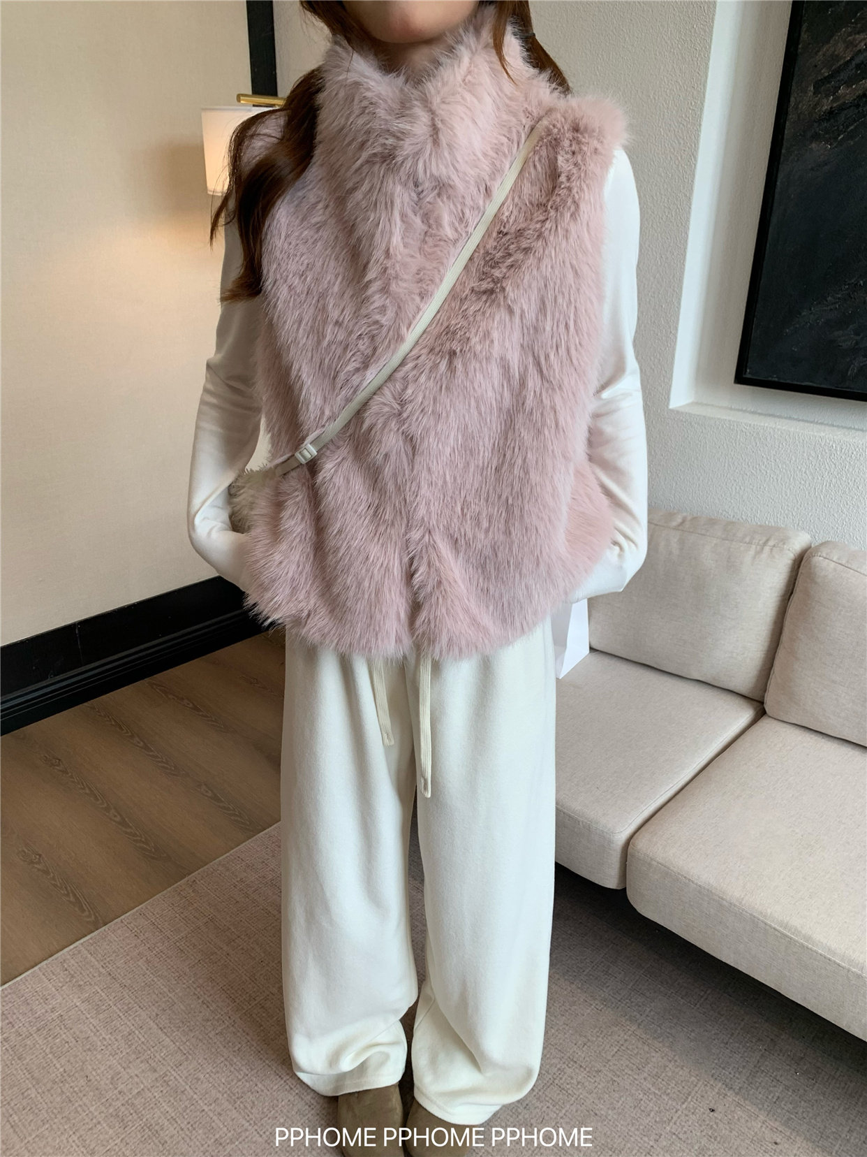 Pphome LAOSHU ~ Faux Fur Vest Eco-Friendly Fur Vest Coat Loose Autumn and Winter Stand Collar Vest Fur Coat