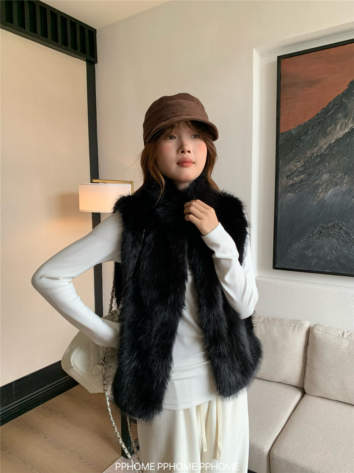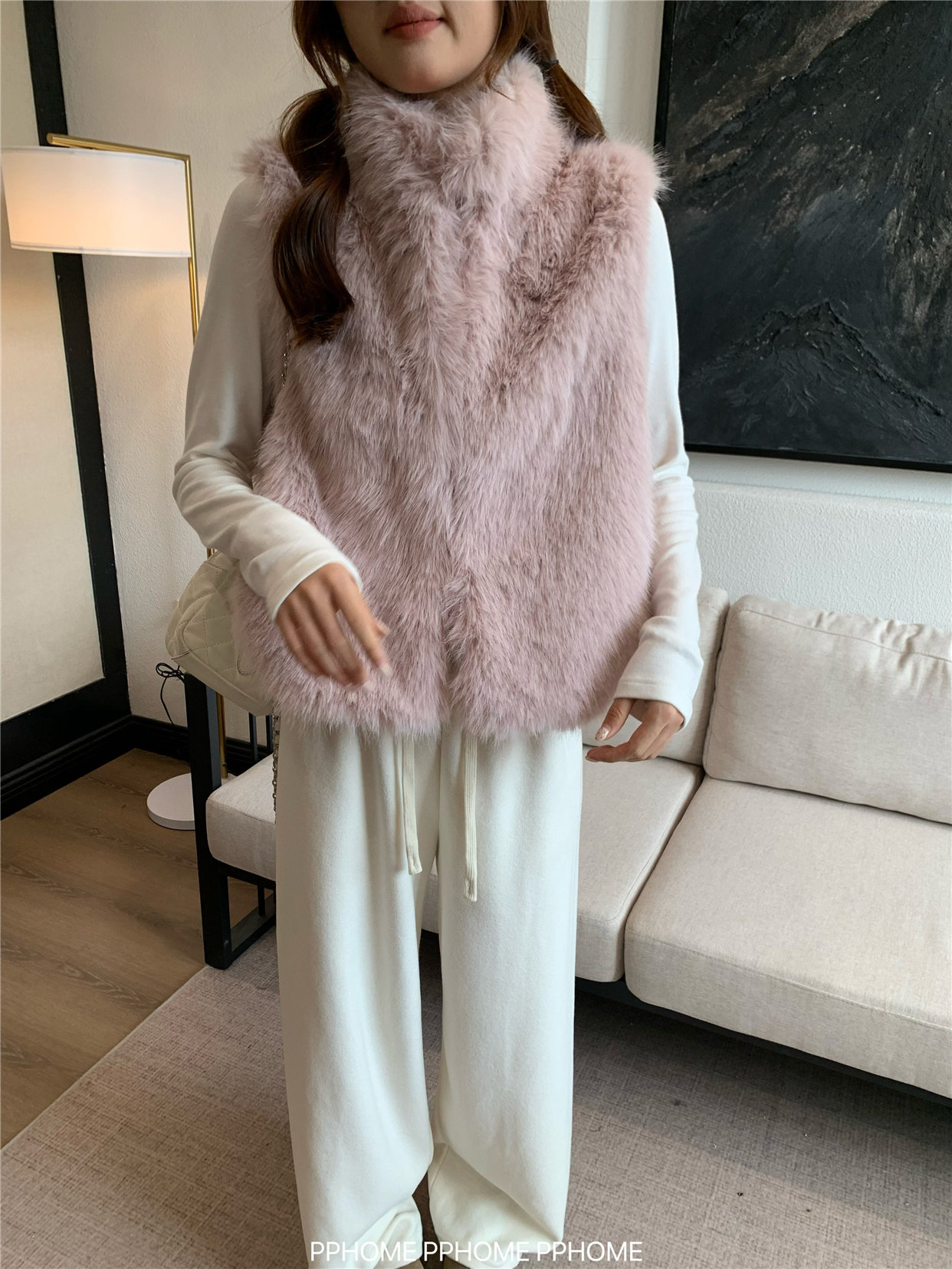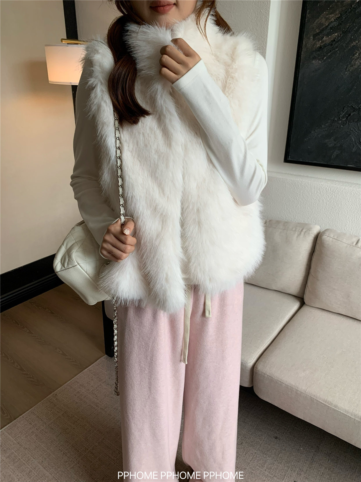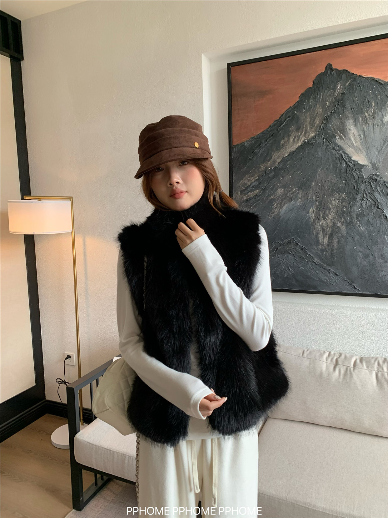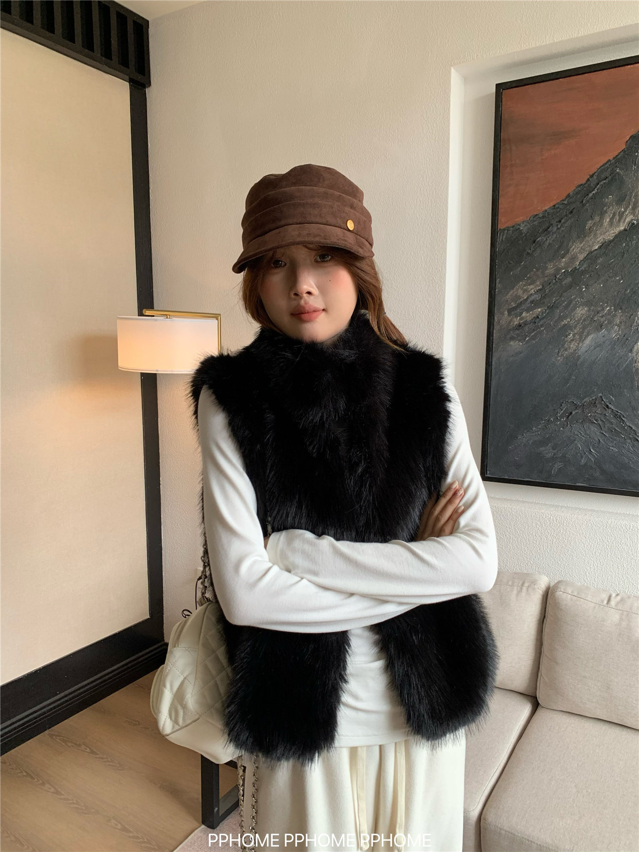 Pphome LAOSHU ~ Faux Fur Vest Eco-Friendly Fur Vest Coat Loose Autumn and Winter Stand Collar Vest Fur Coat