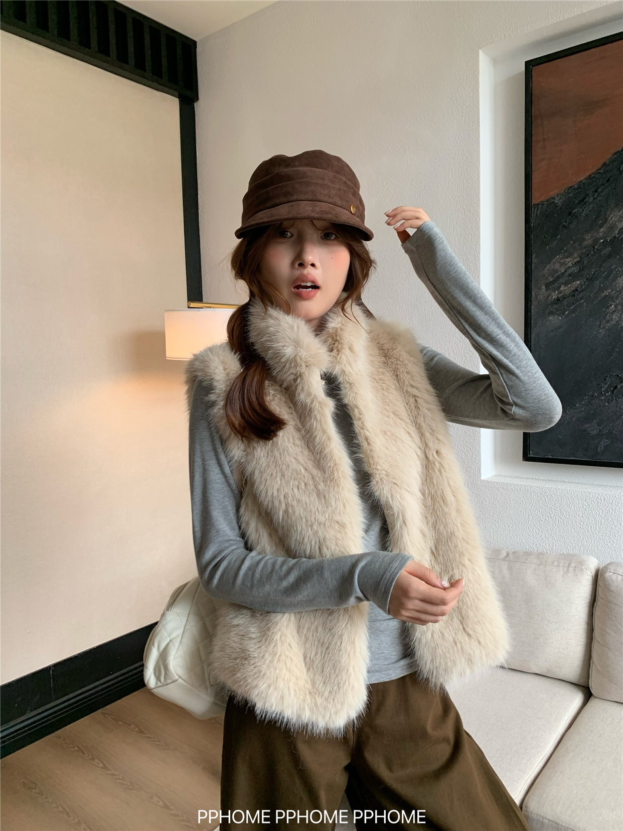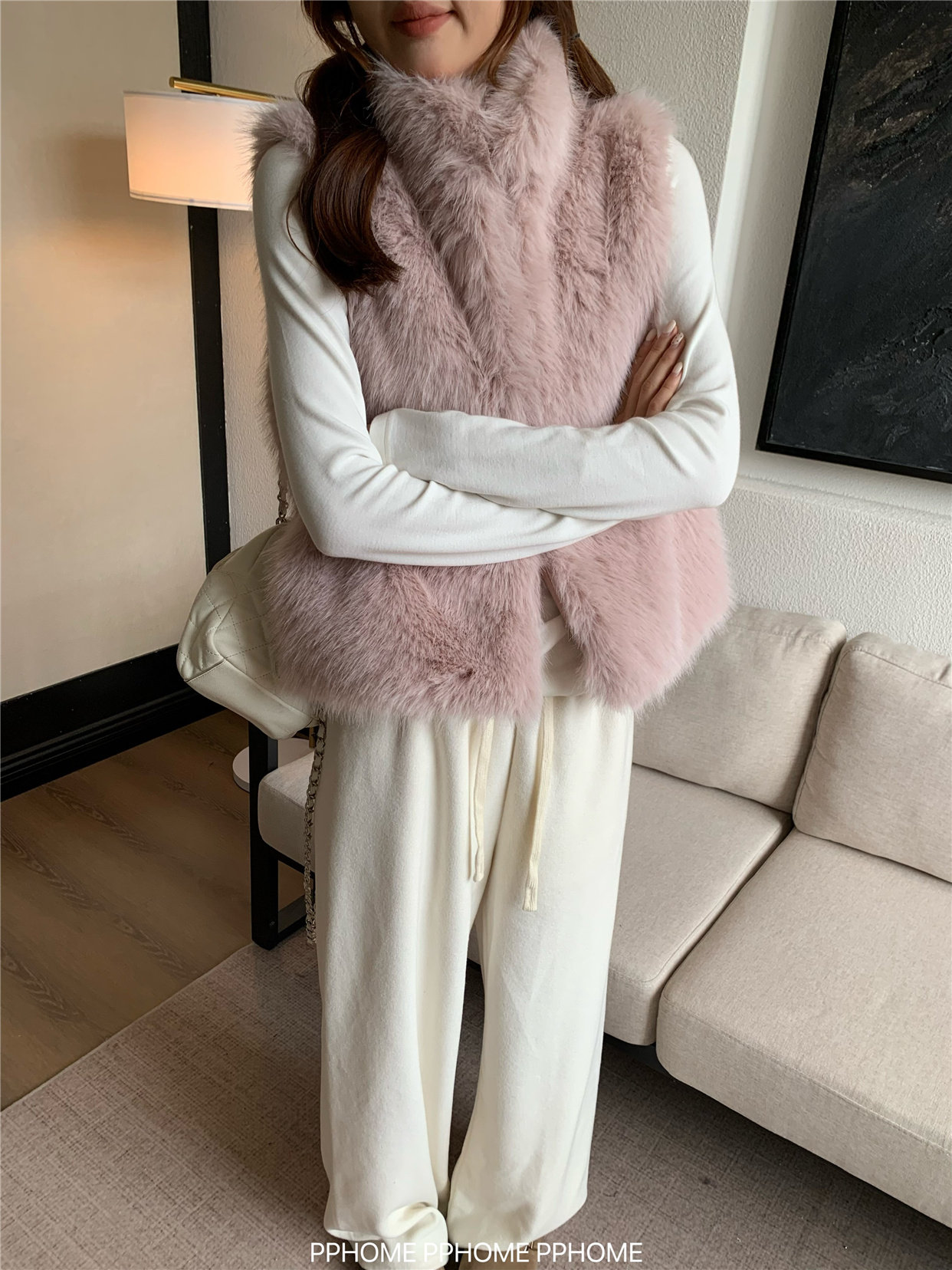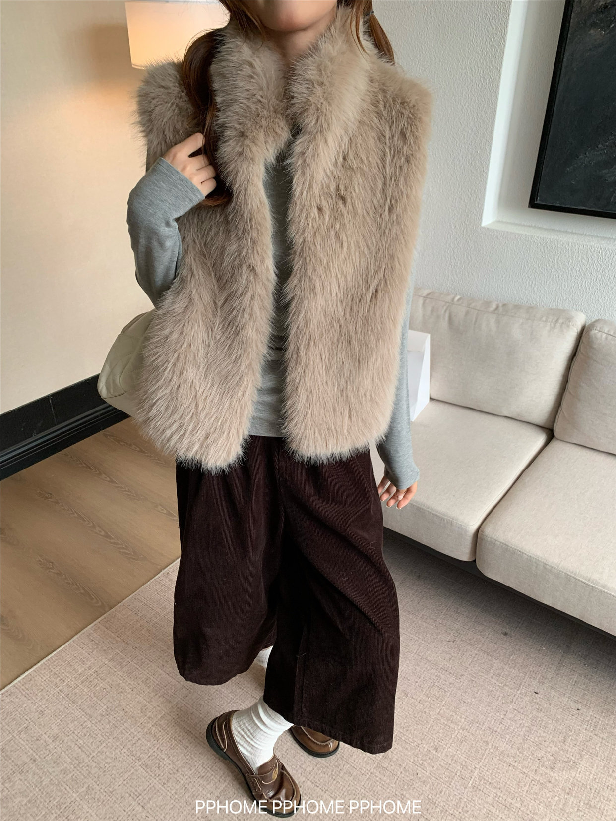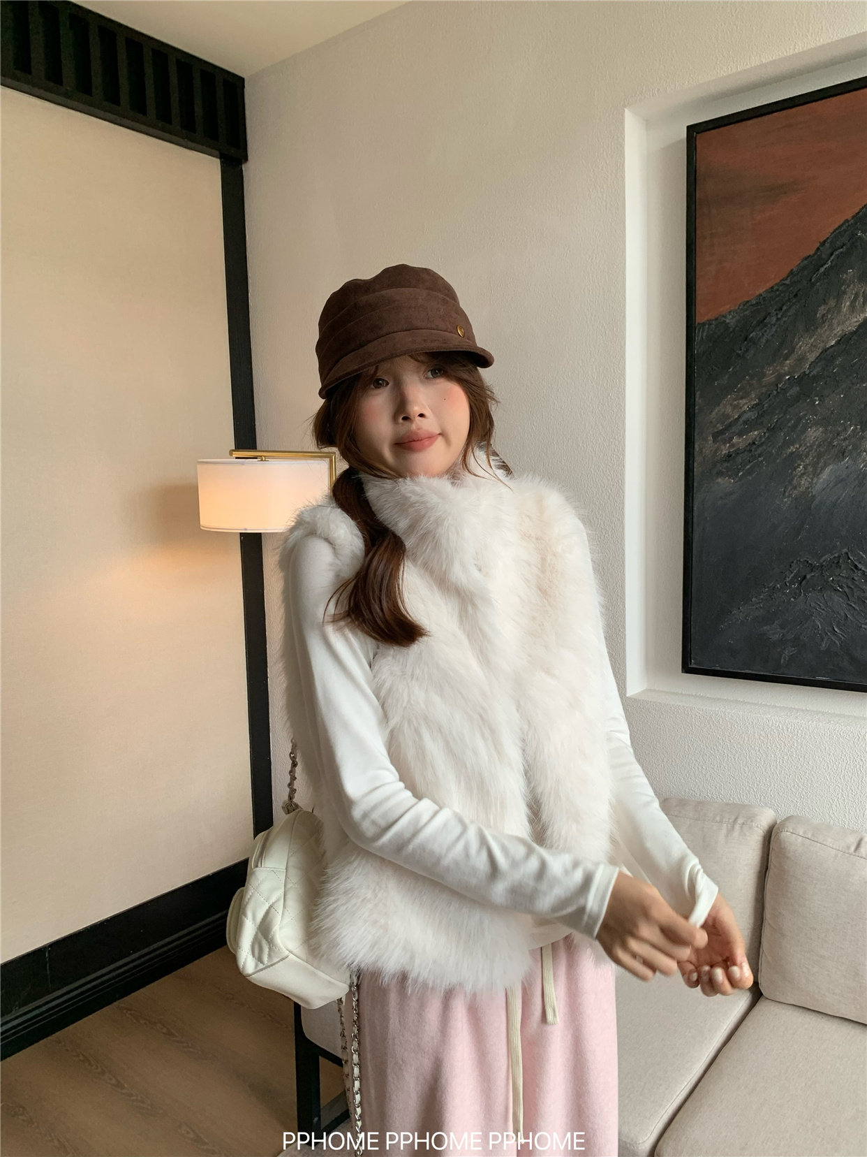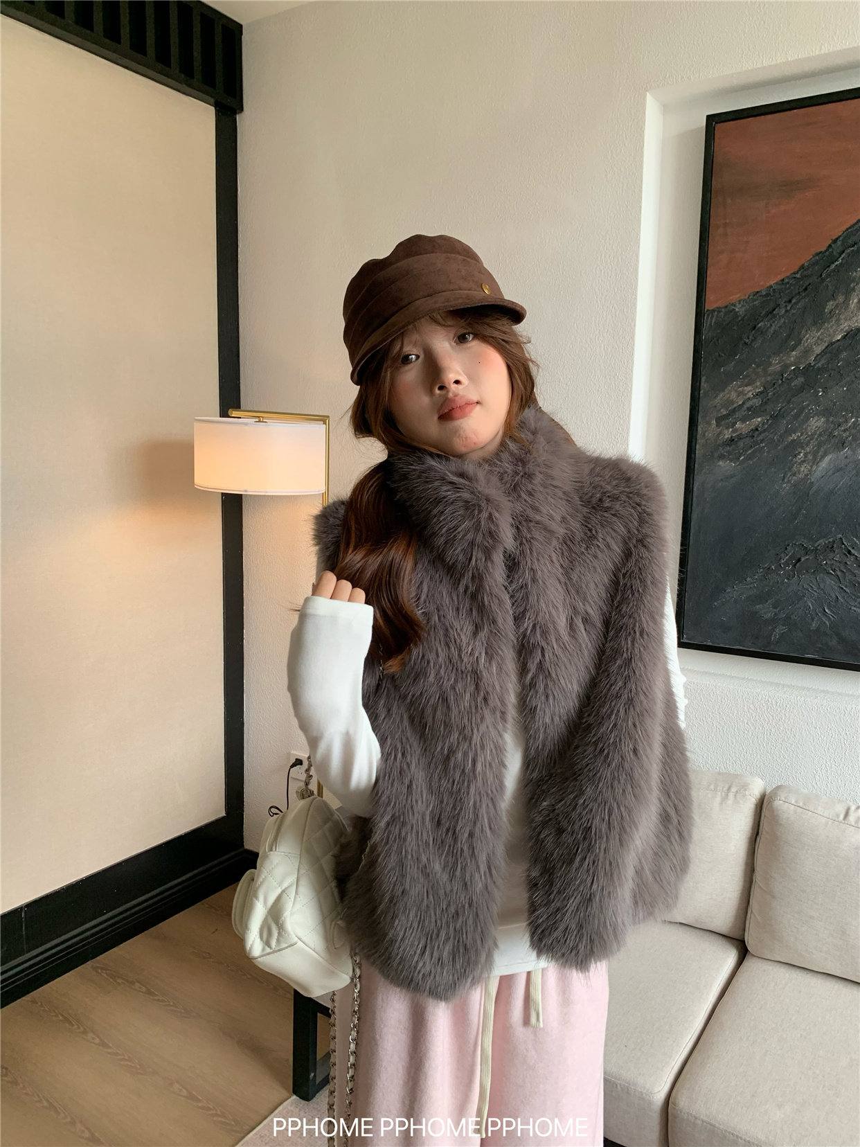 Pphome LAOSHU ~ Faux Fur Vest Eco-Friendly Fur Vest Coat Loose Autumn and Winter Stand Collar Vest Fur Coat