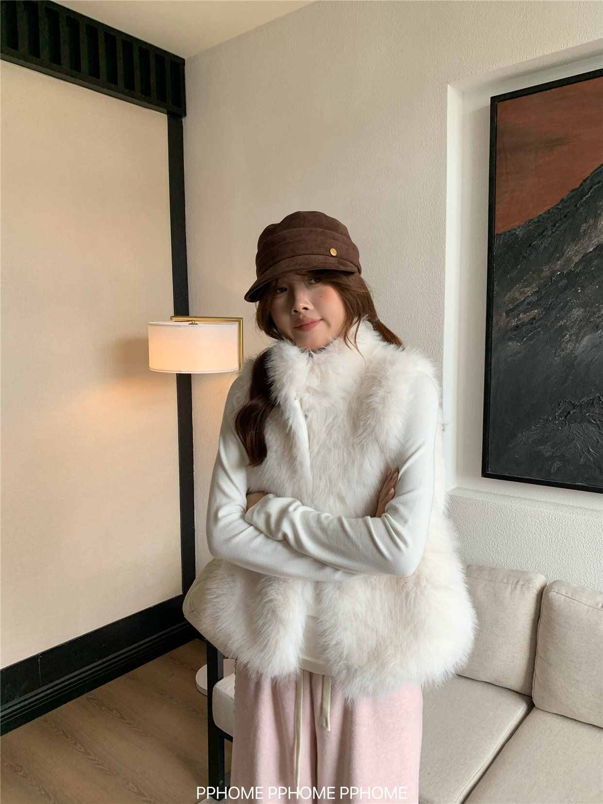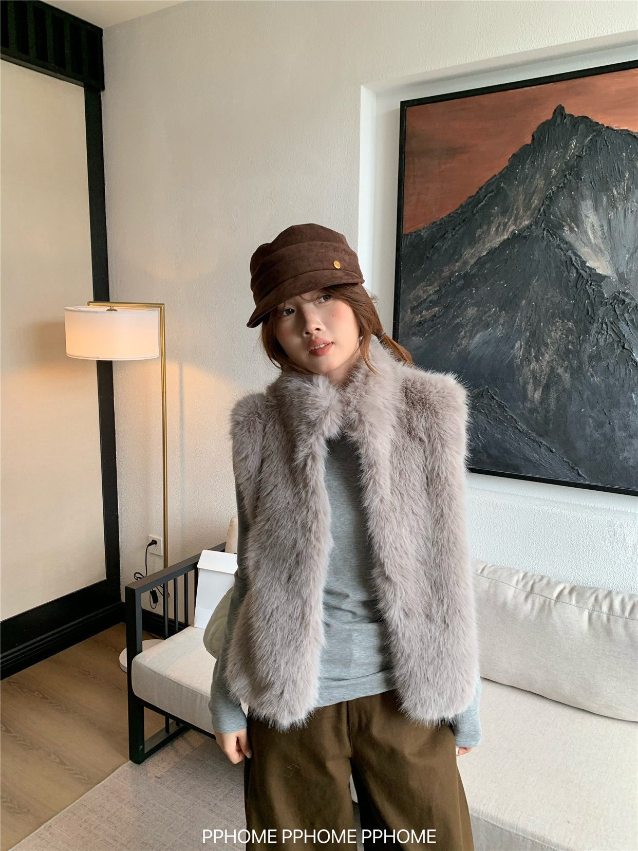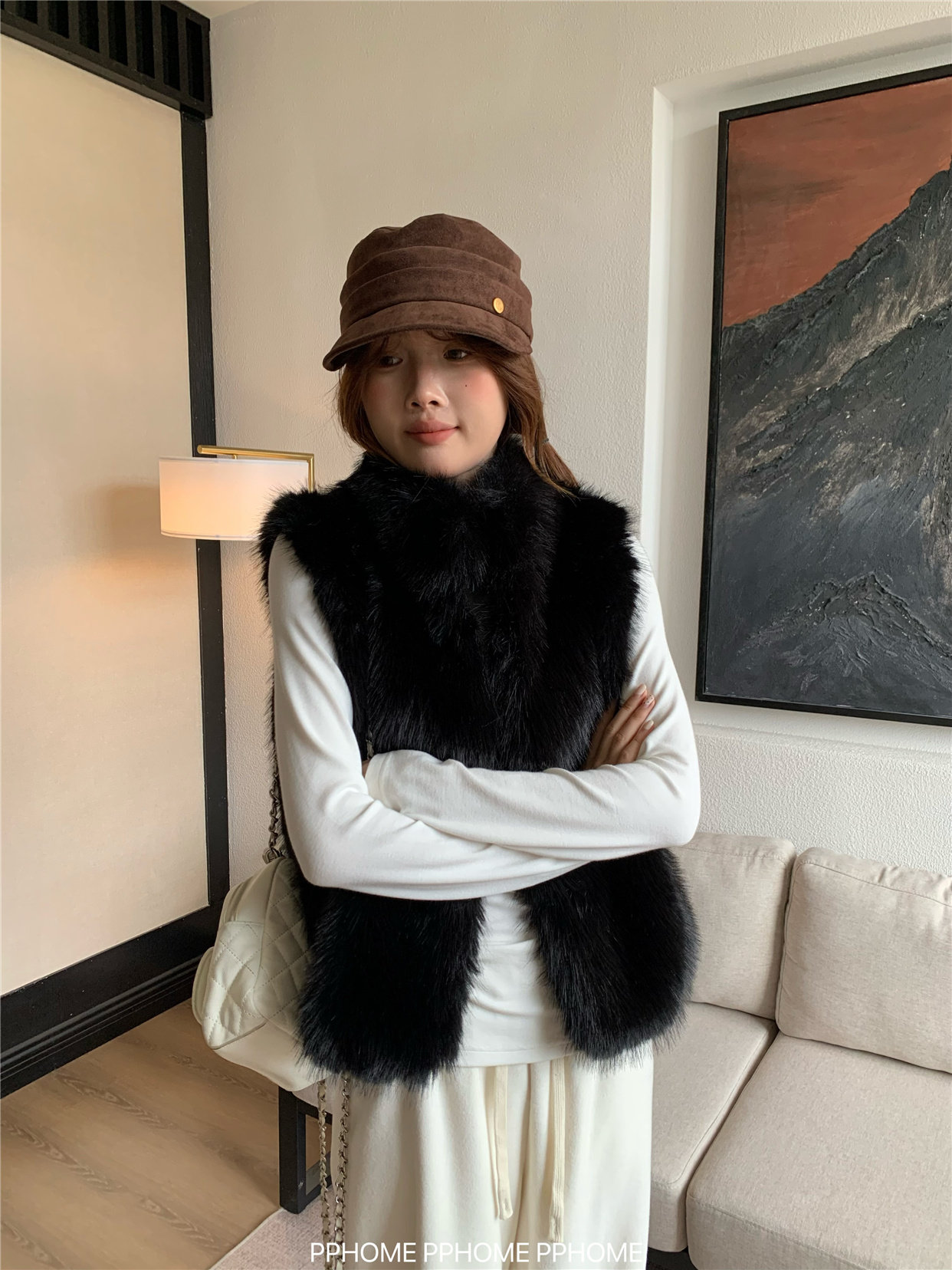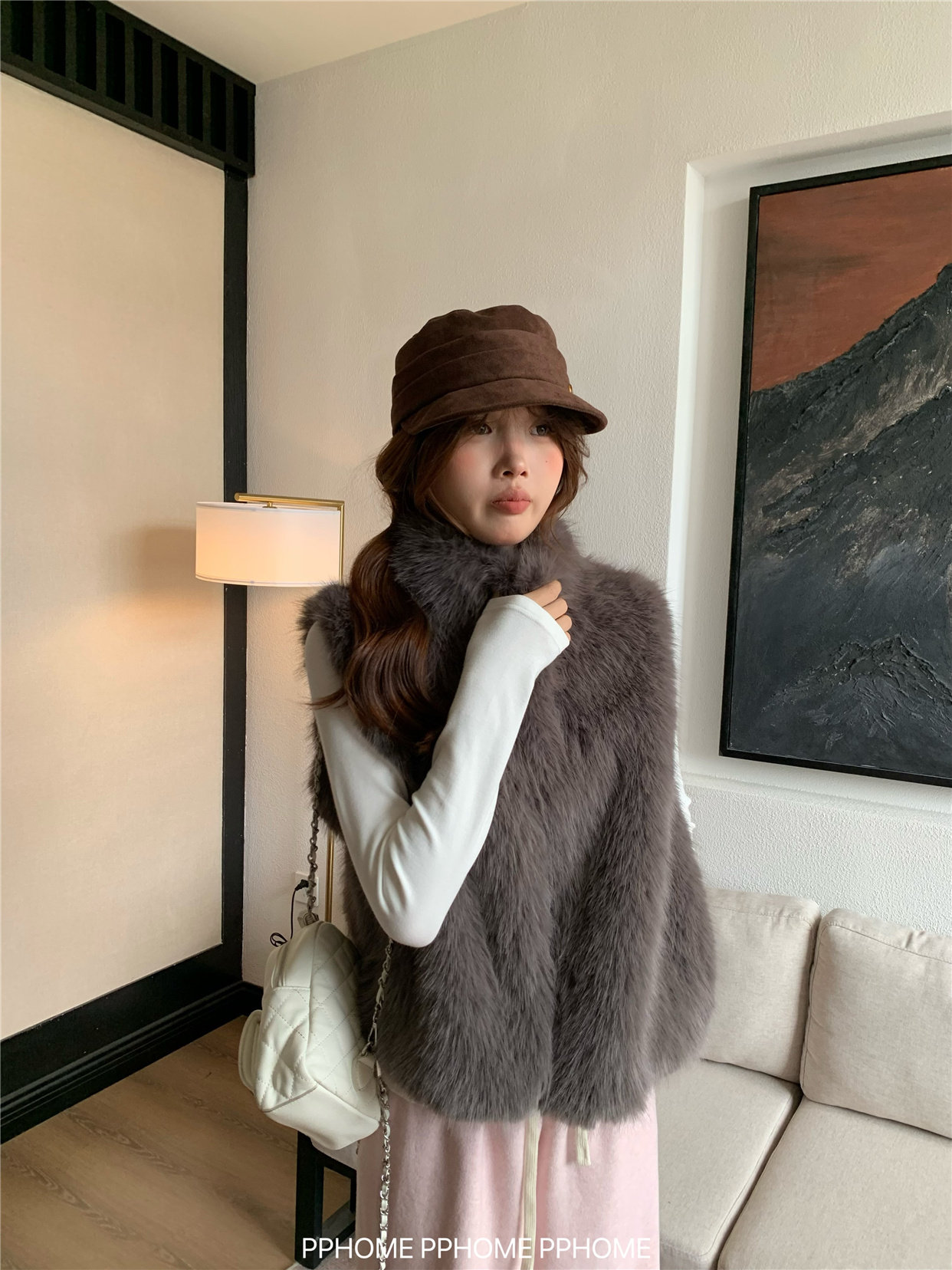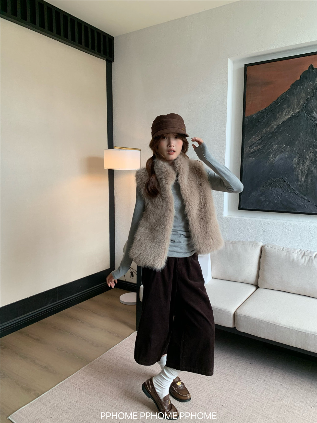 Pphome LAOSHU ~ Faux Fur Vest Eco-Friendly Fur Vest Coat Loose Autumn and Winter Stand Collar Vest Fur Coat