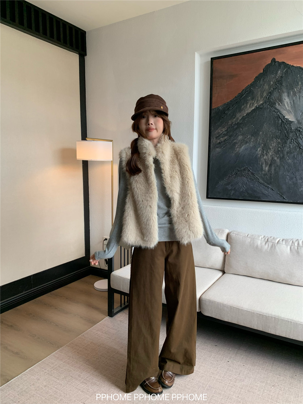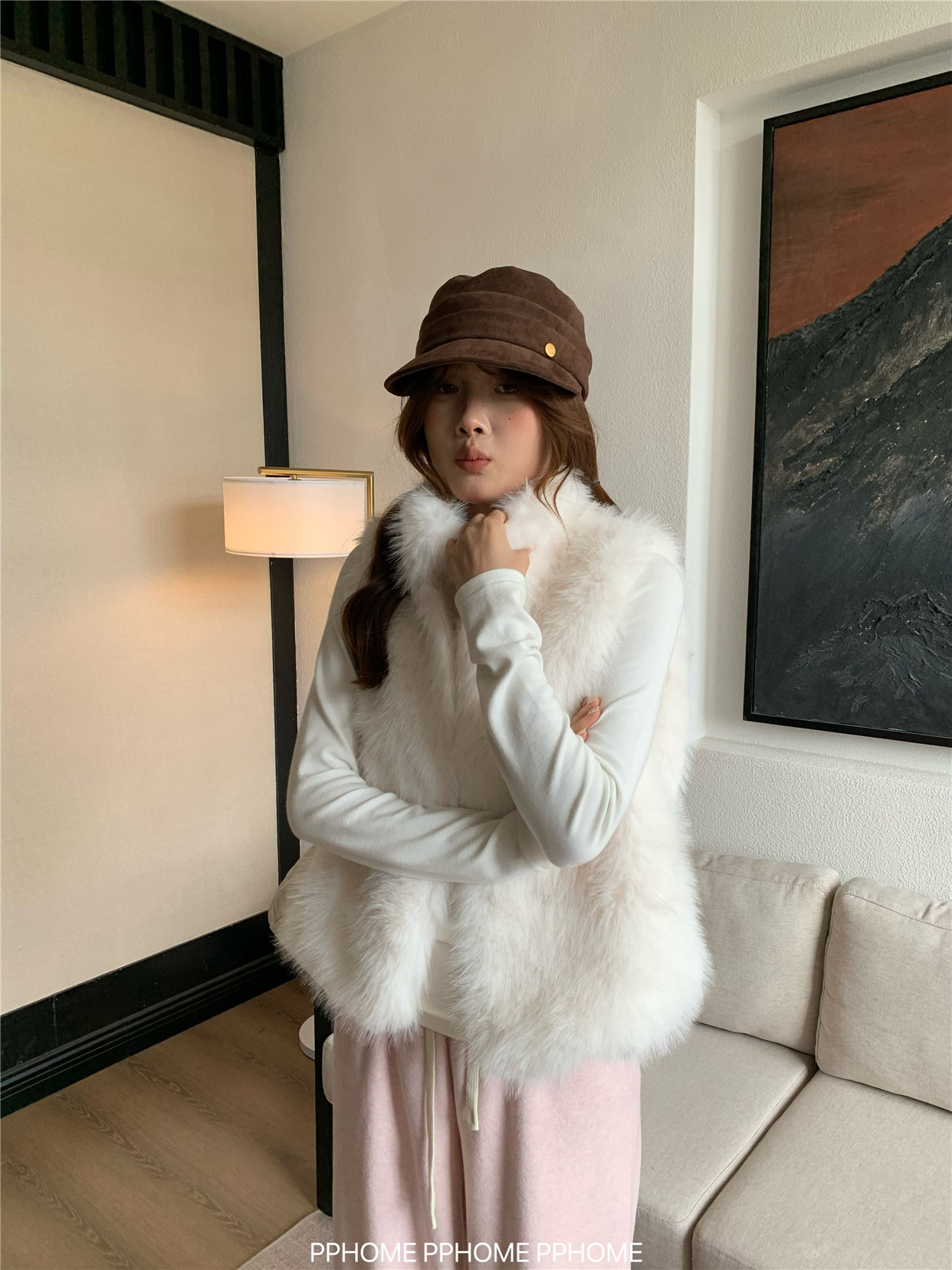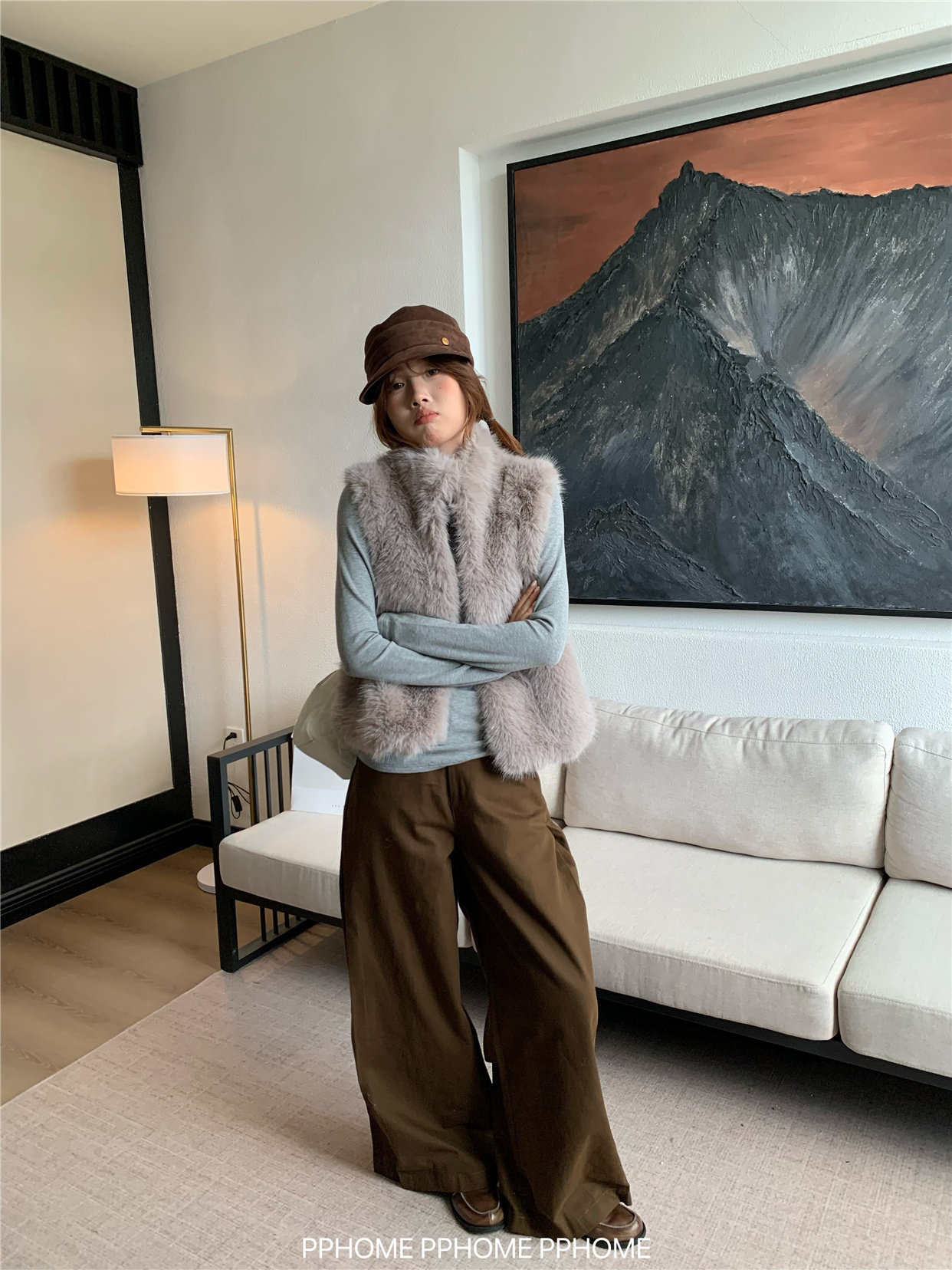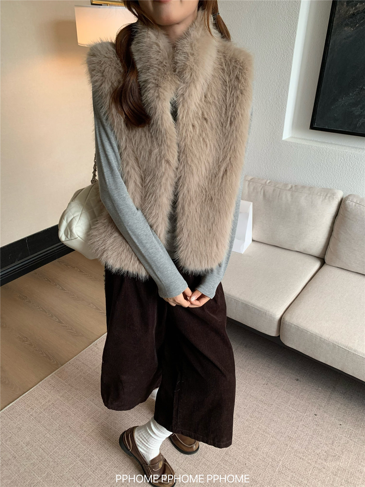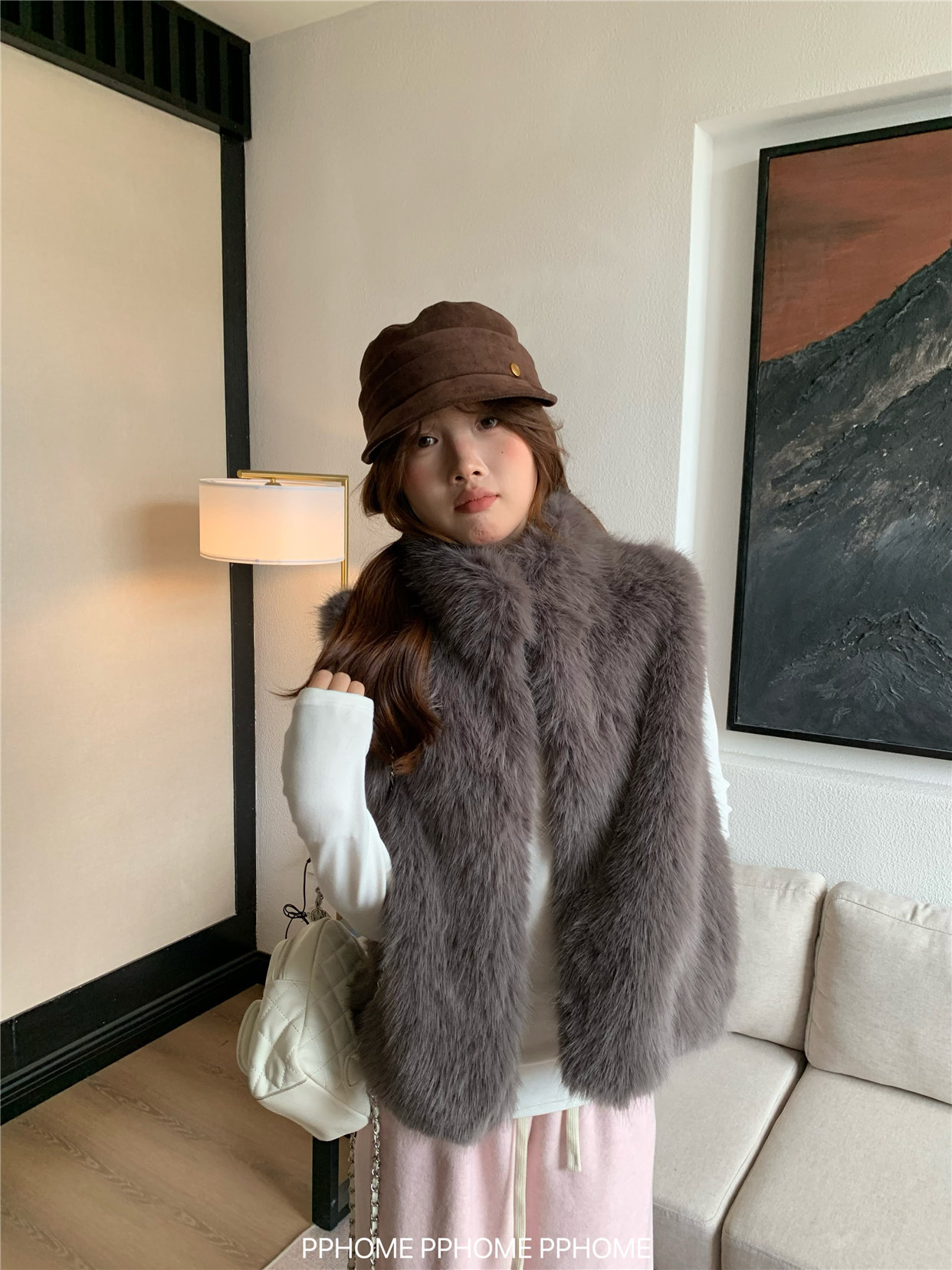 Pphome LAOSHU ~ Faux Fur Vest Eco-Friendly Fur Vest Coat Loose Autumn and Winter Stand Collar Vest Fur Coat