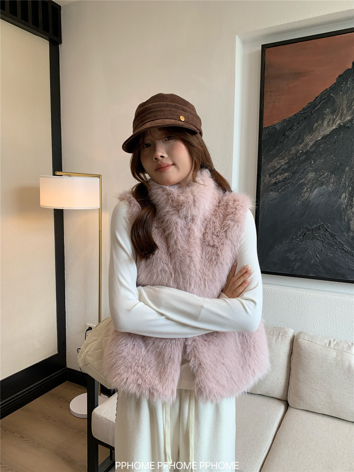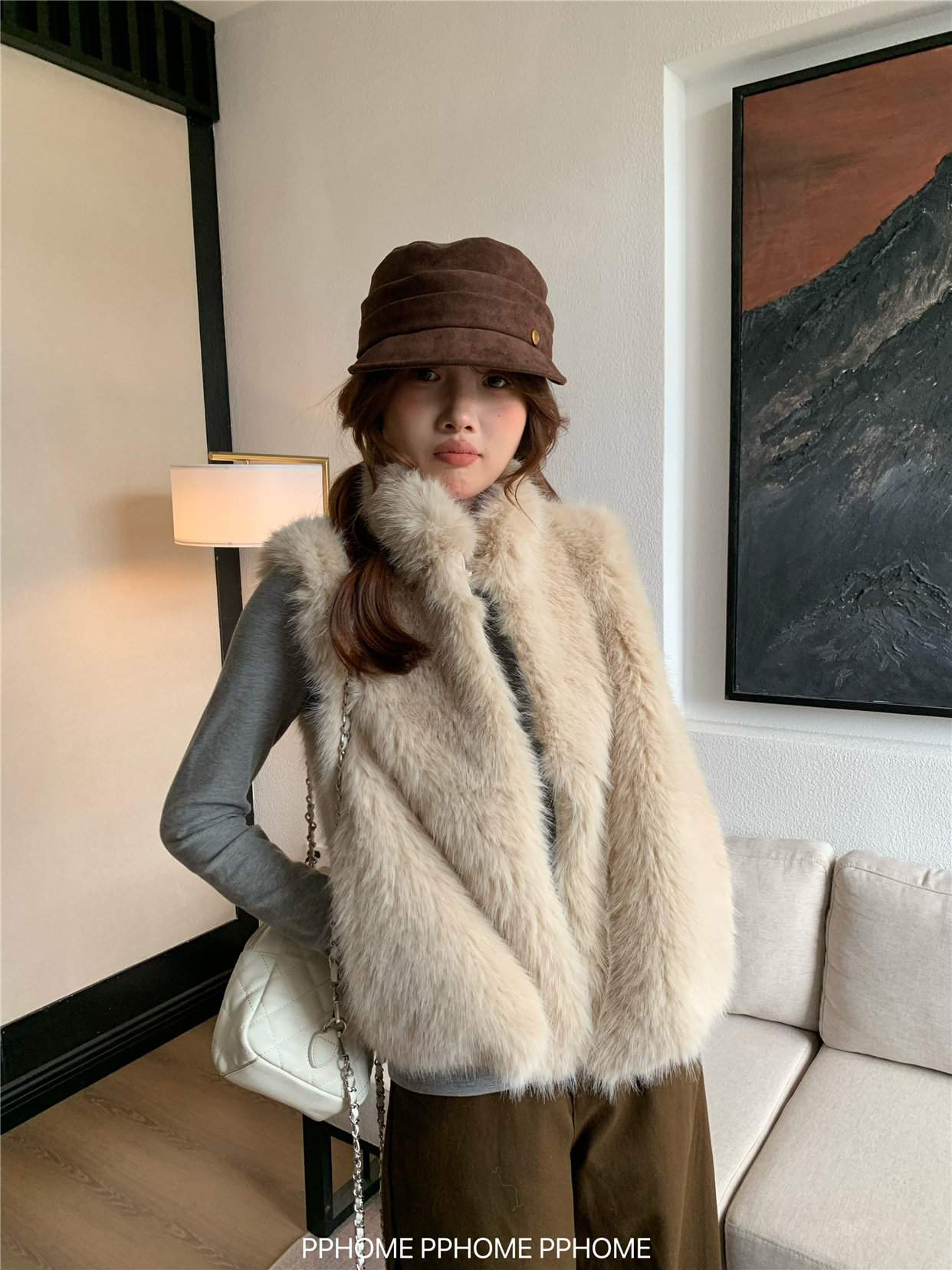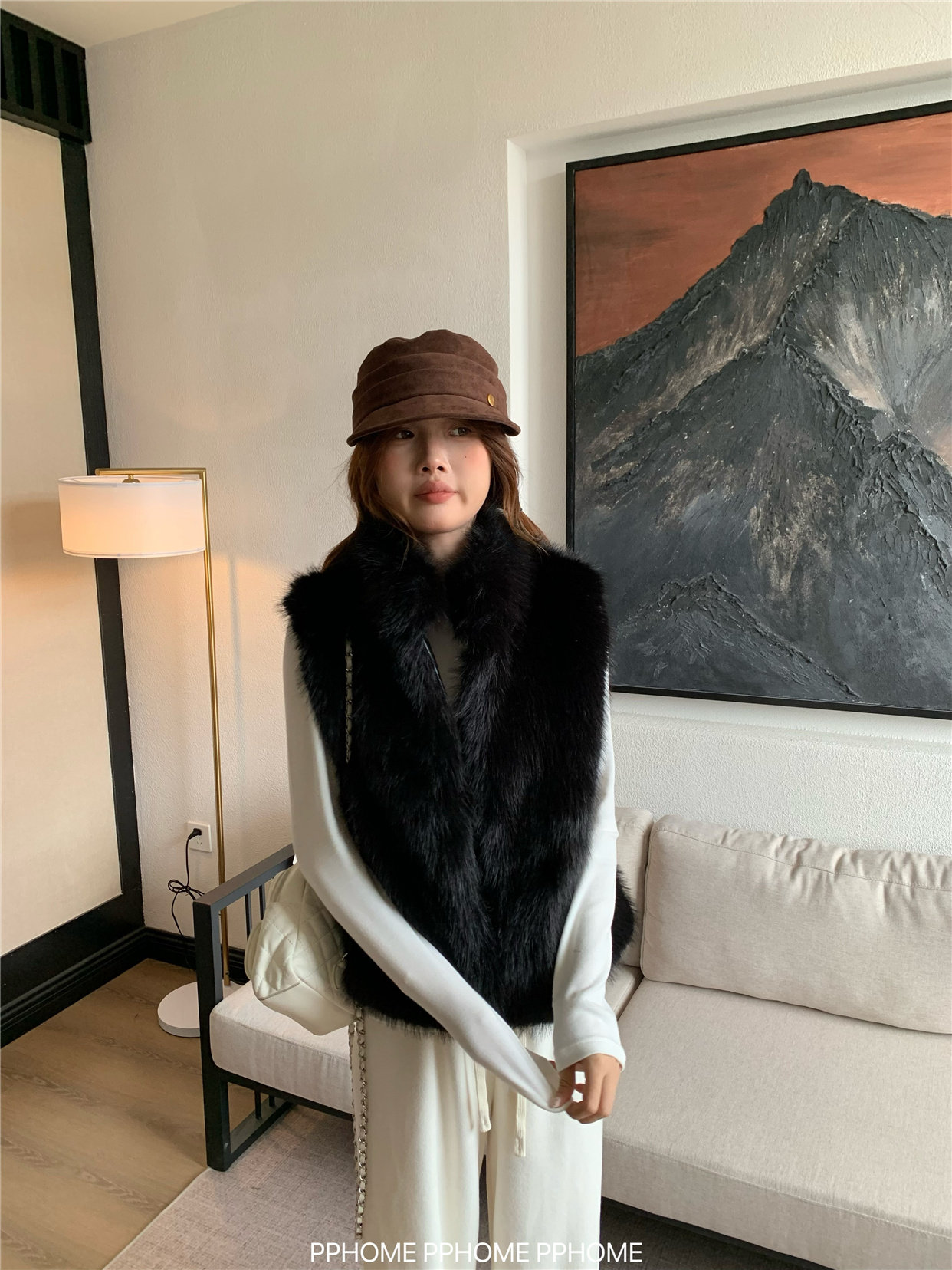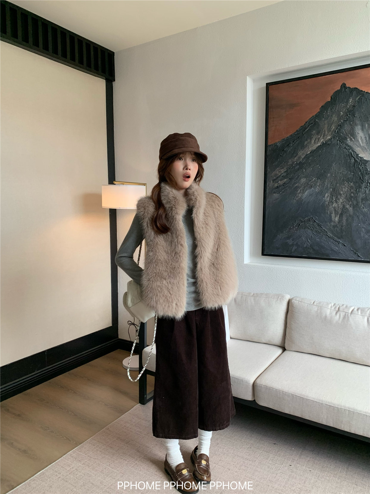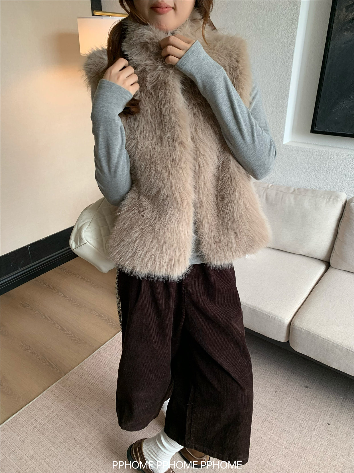 Pphome LAOSHU ~ Faux Fur Vest Eco-Friendly Fur Vest Coat Loose Autumn and Winter Stand Collar Vest Fur Coat