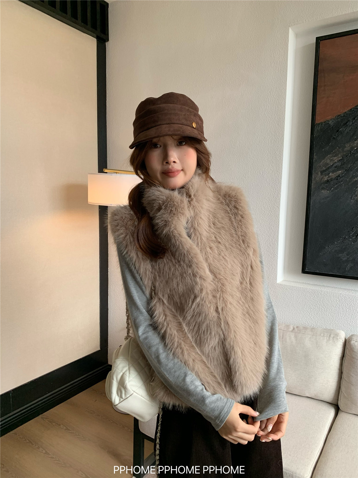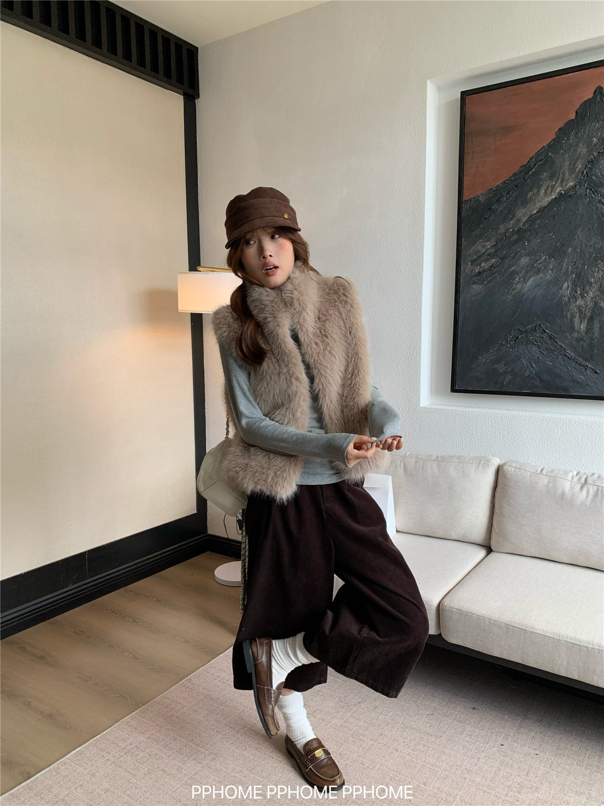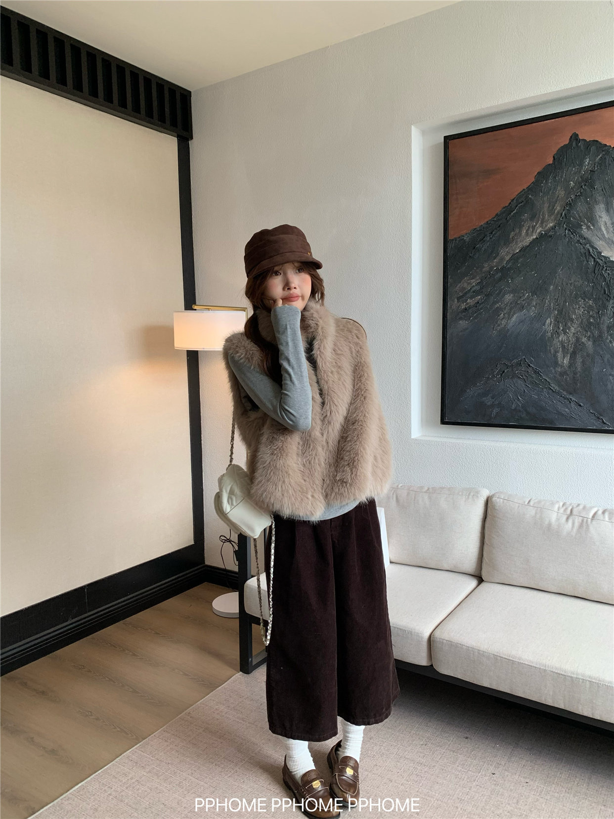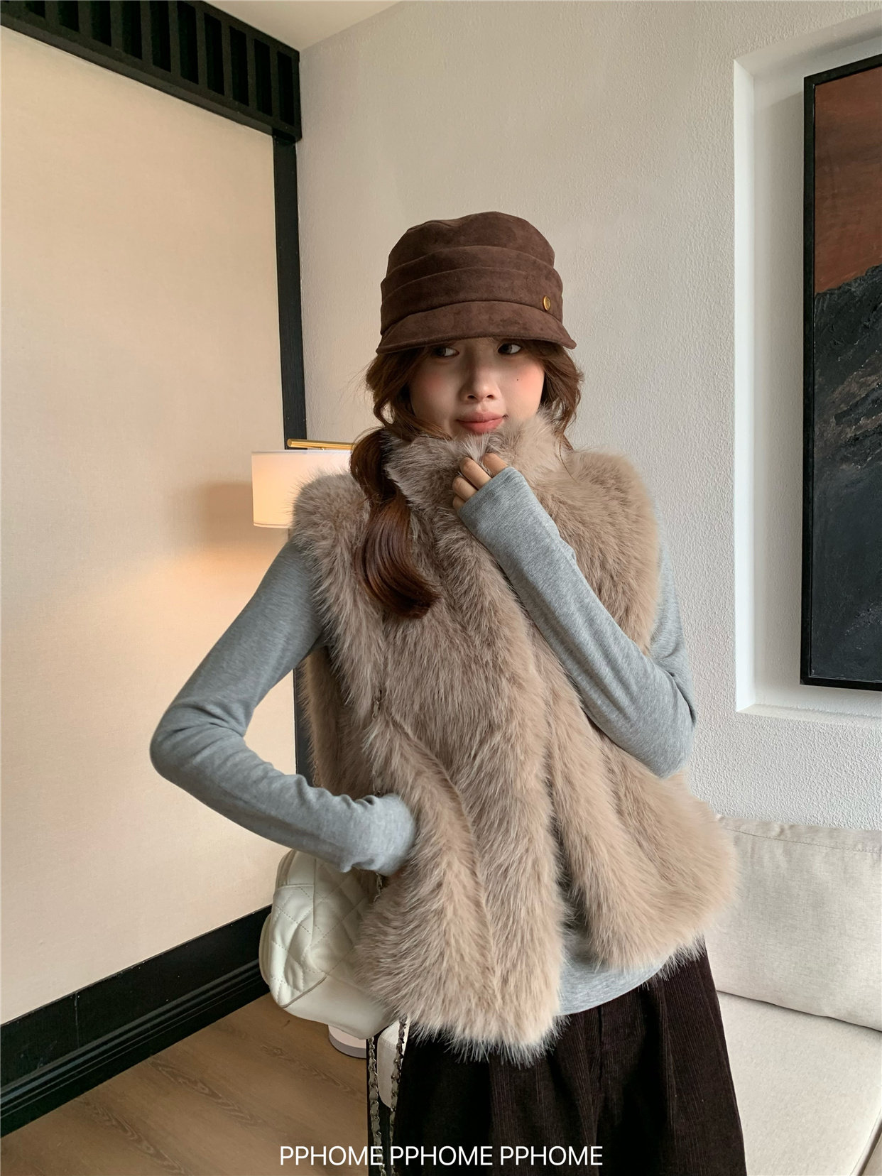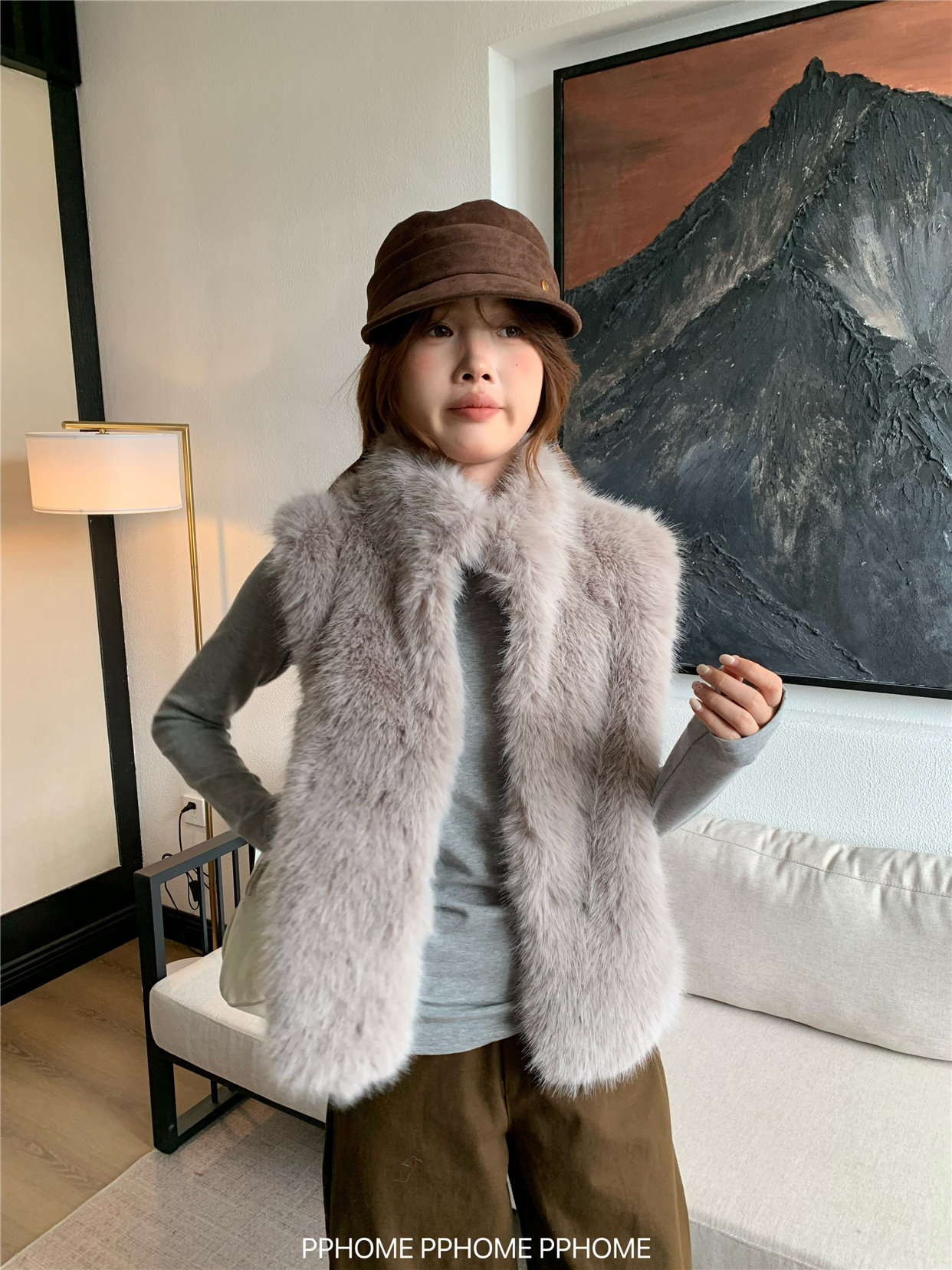 Pphome LAOSHU ~ Faux Fur Vest Eco-Friendly Fur Vest Coat Loose Autumn and Winter Stand Collar Vest Fur Coat