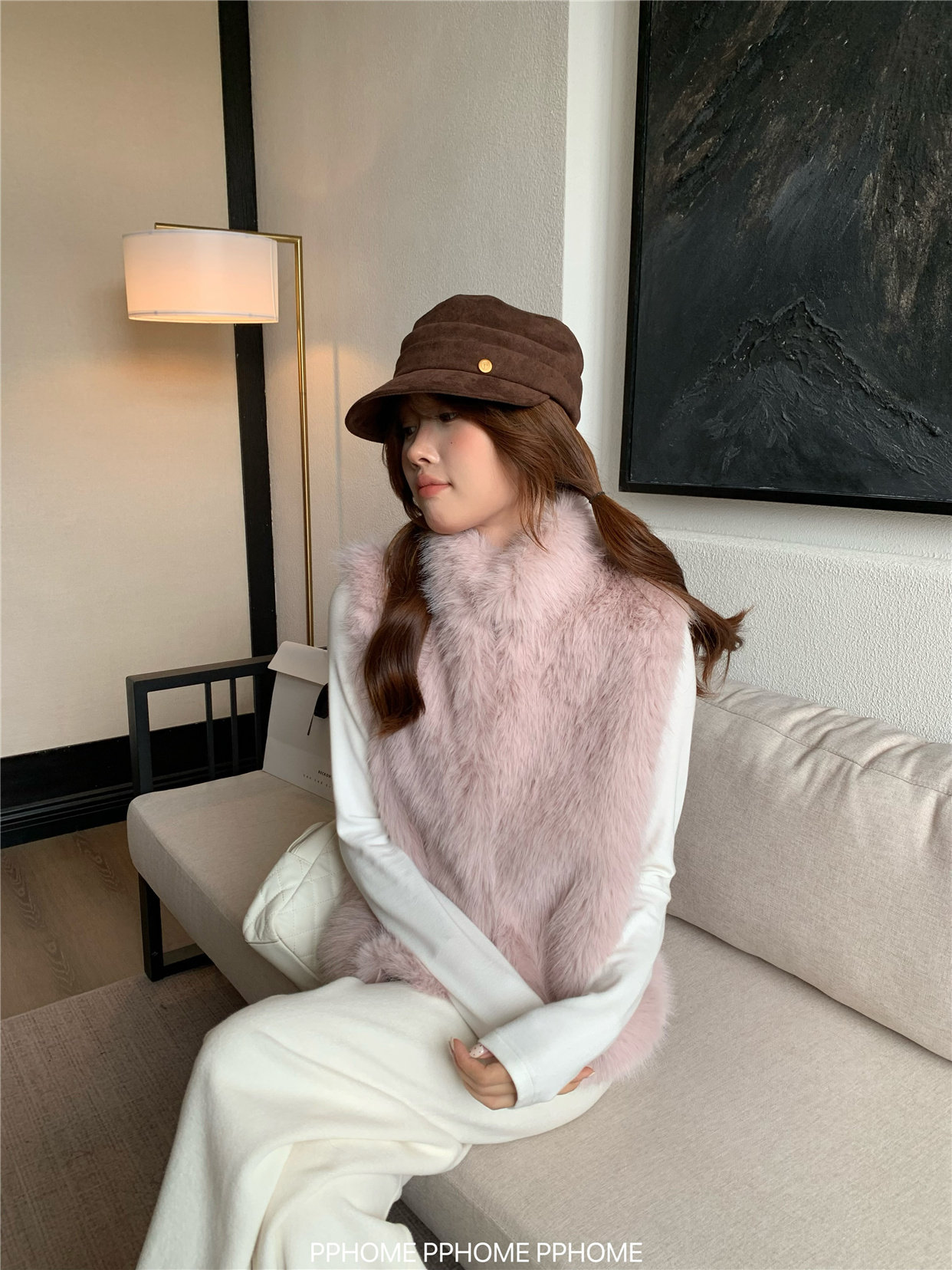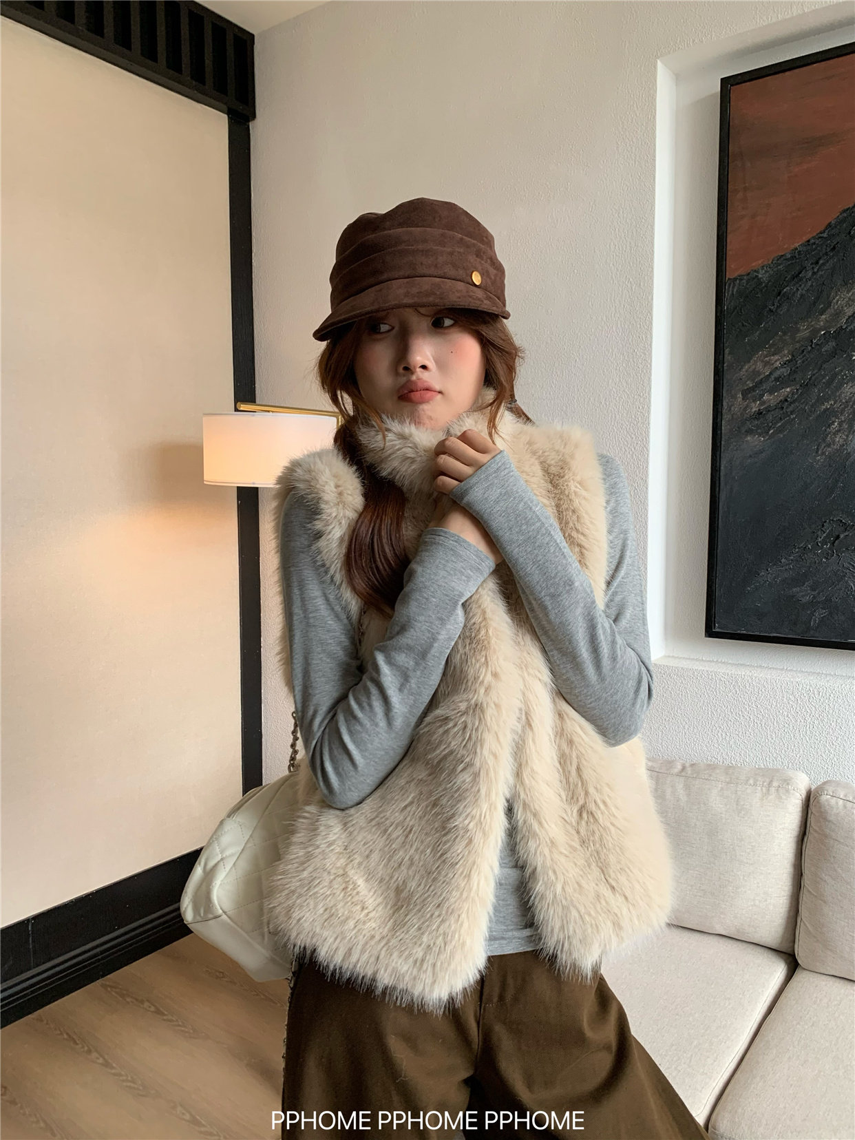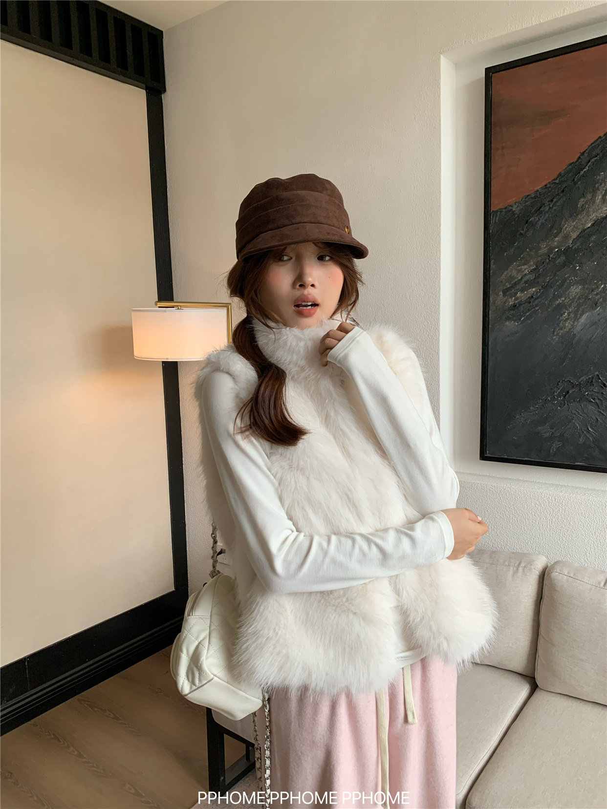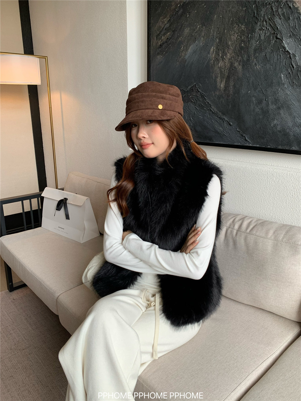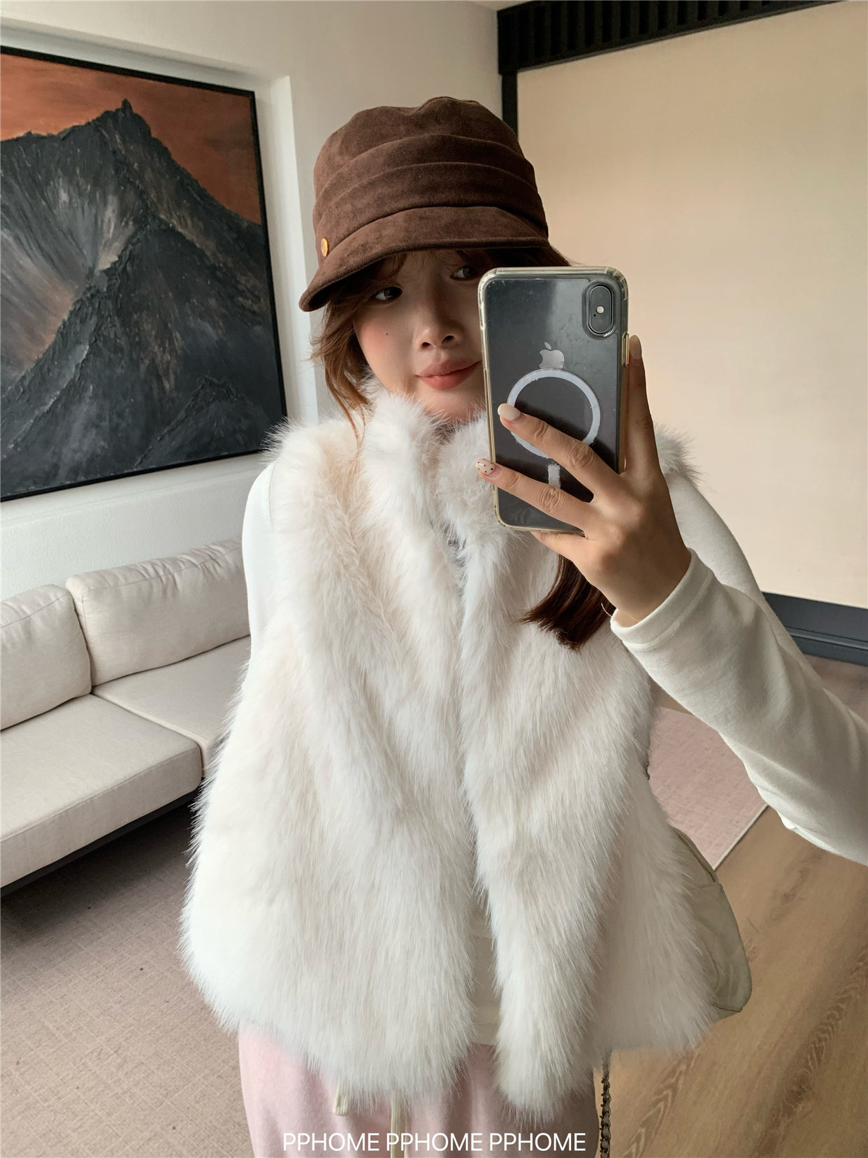 Pphome LAOSHU ~ Faux Fur Vest Eco-Friendly Fur Vest Coat Loose Autumn and Winter Stand Collar Vest Fur Coat