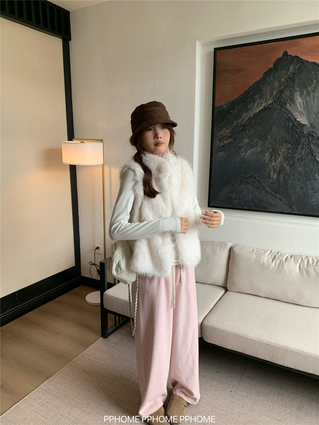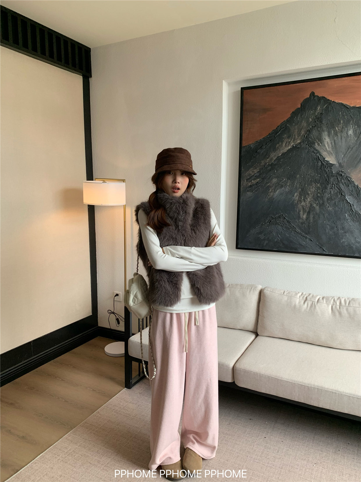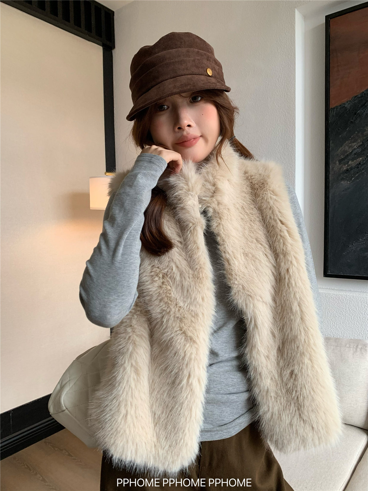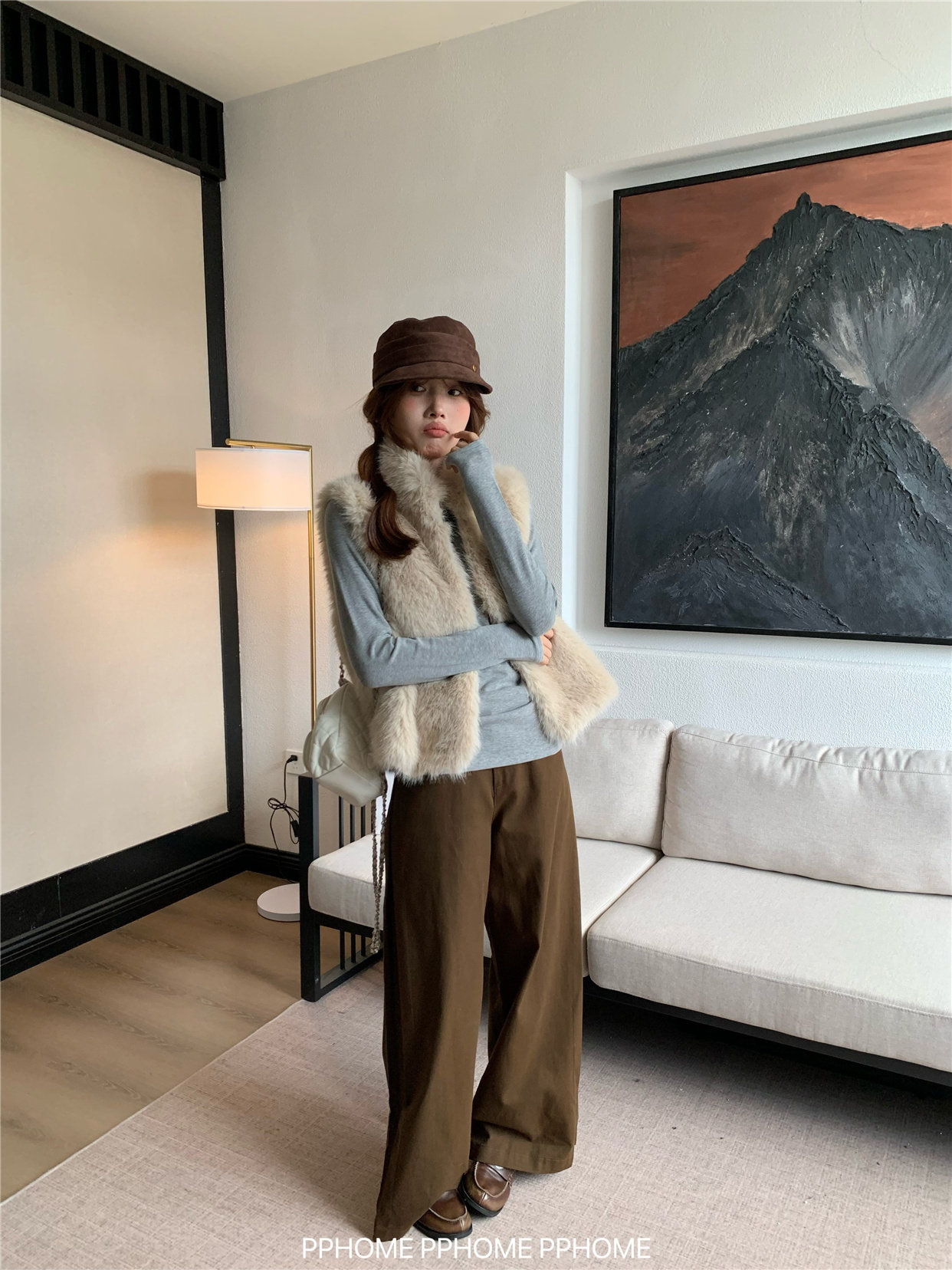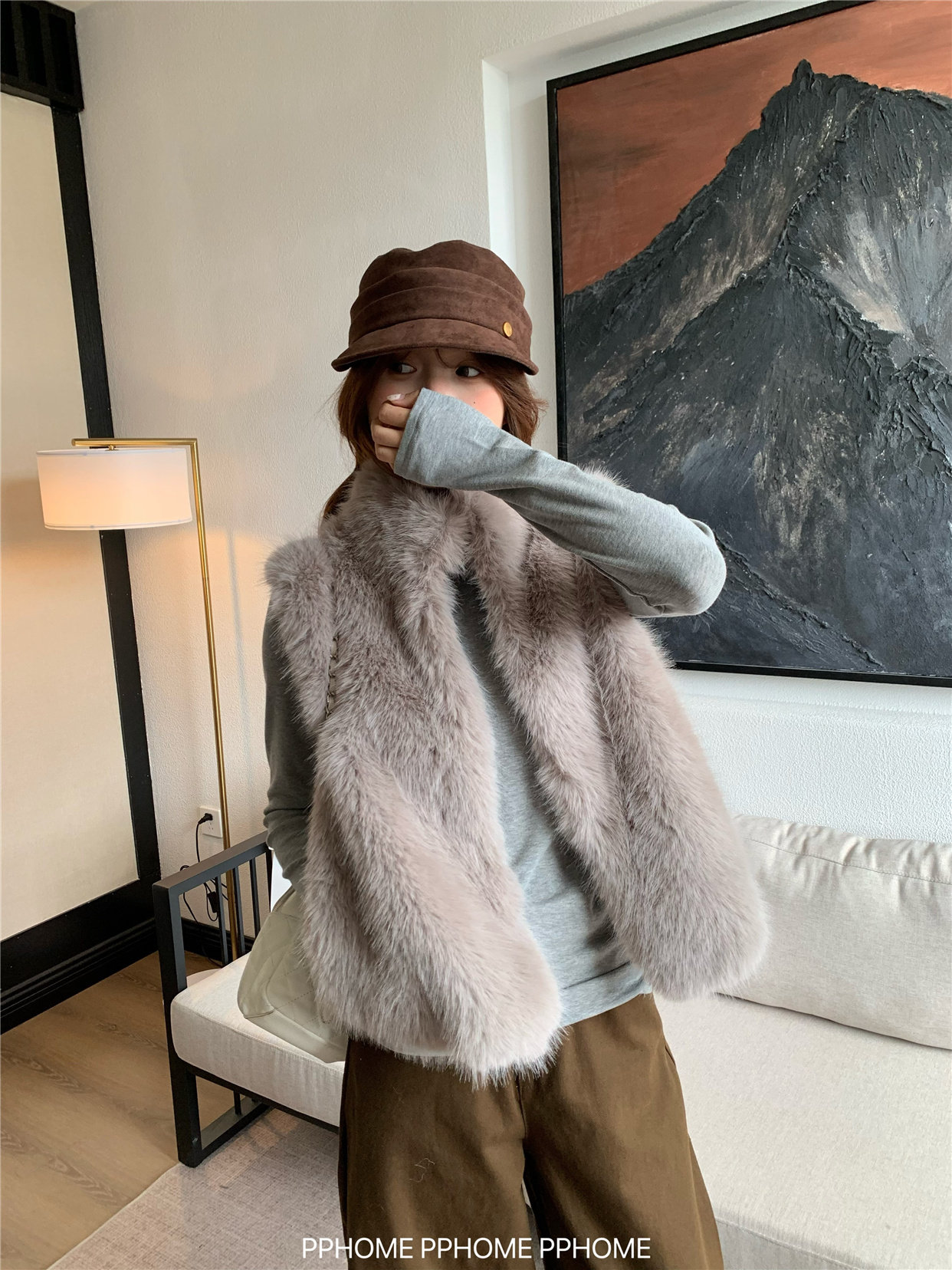 Pphome LAOSHU ~ Faux Fur Vest Eco-Friendly Fur Vest Coat Loose Autumn and Winter Stand Collar Vest Fur Coat