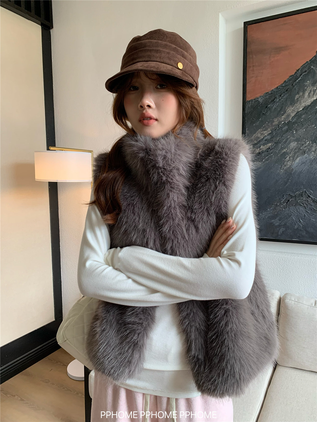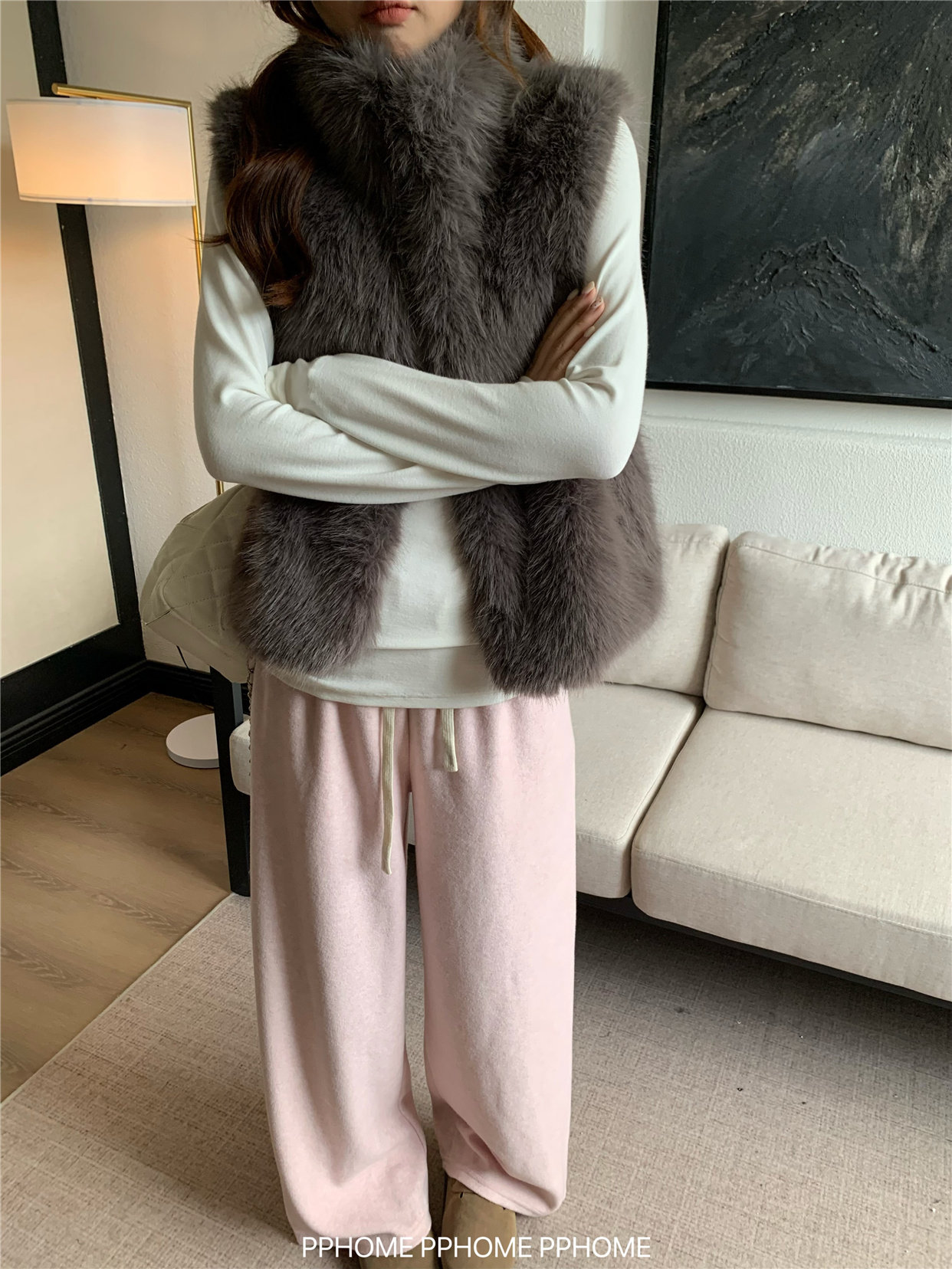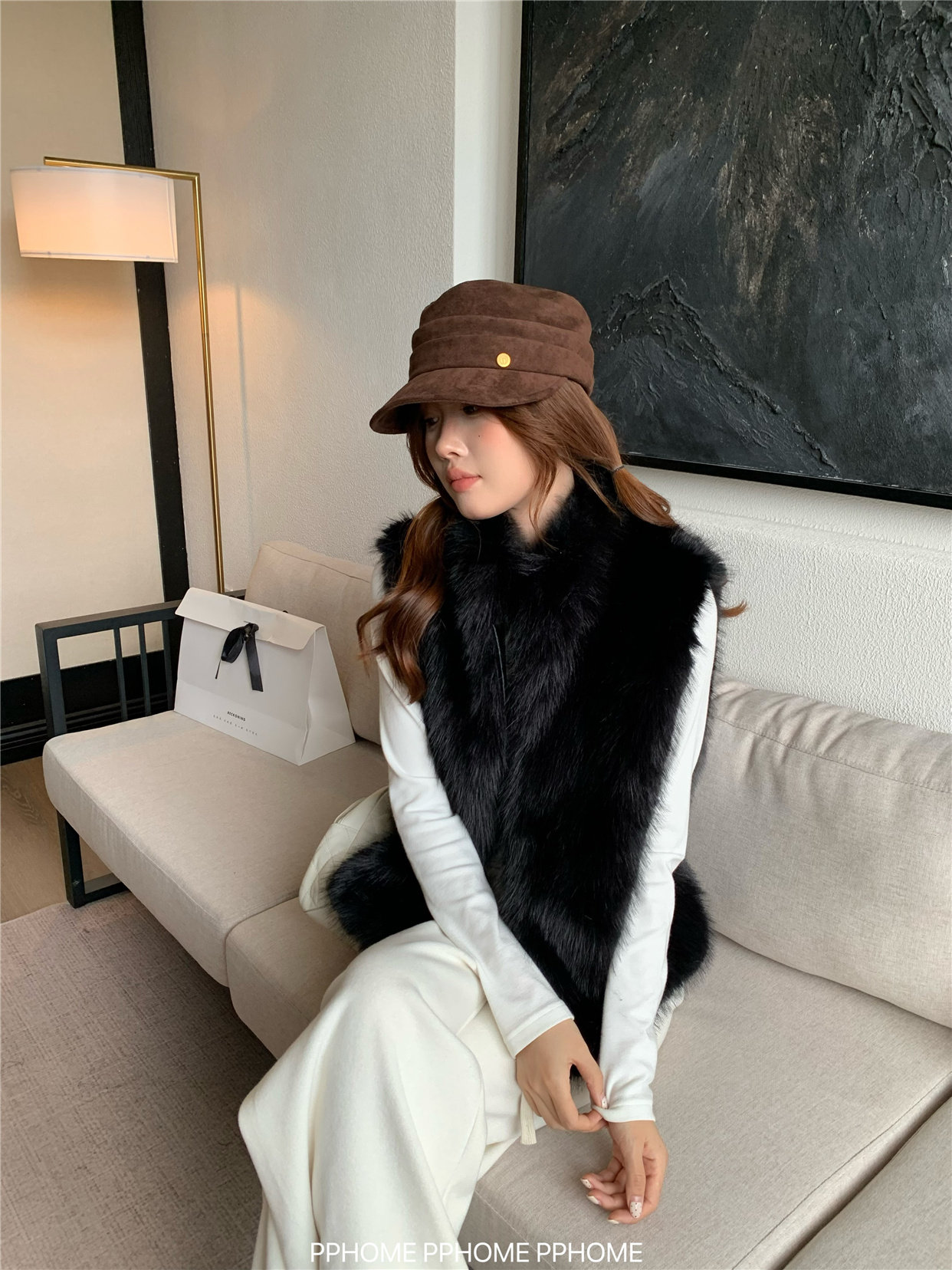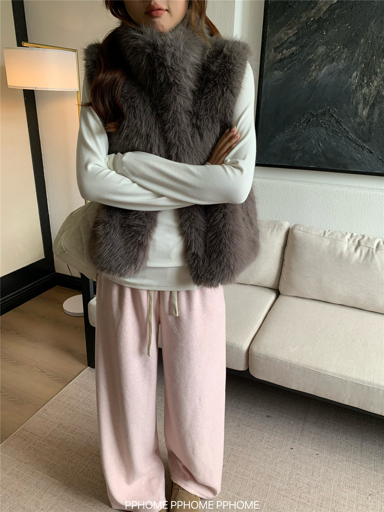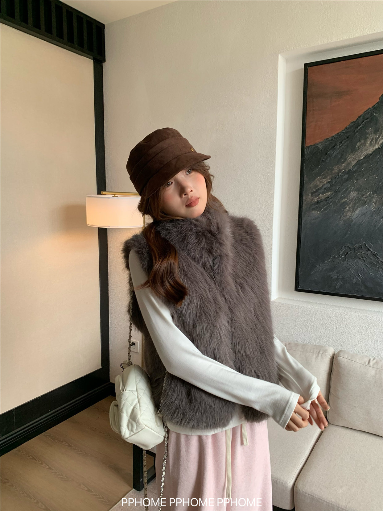 Pphome LAOSHU ~ Faux Fur Vest Eco-Friendly Fur Vest Coat Loose Autumn and Winter Stand Collar Vest Fur Coat