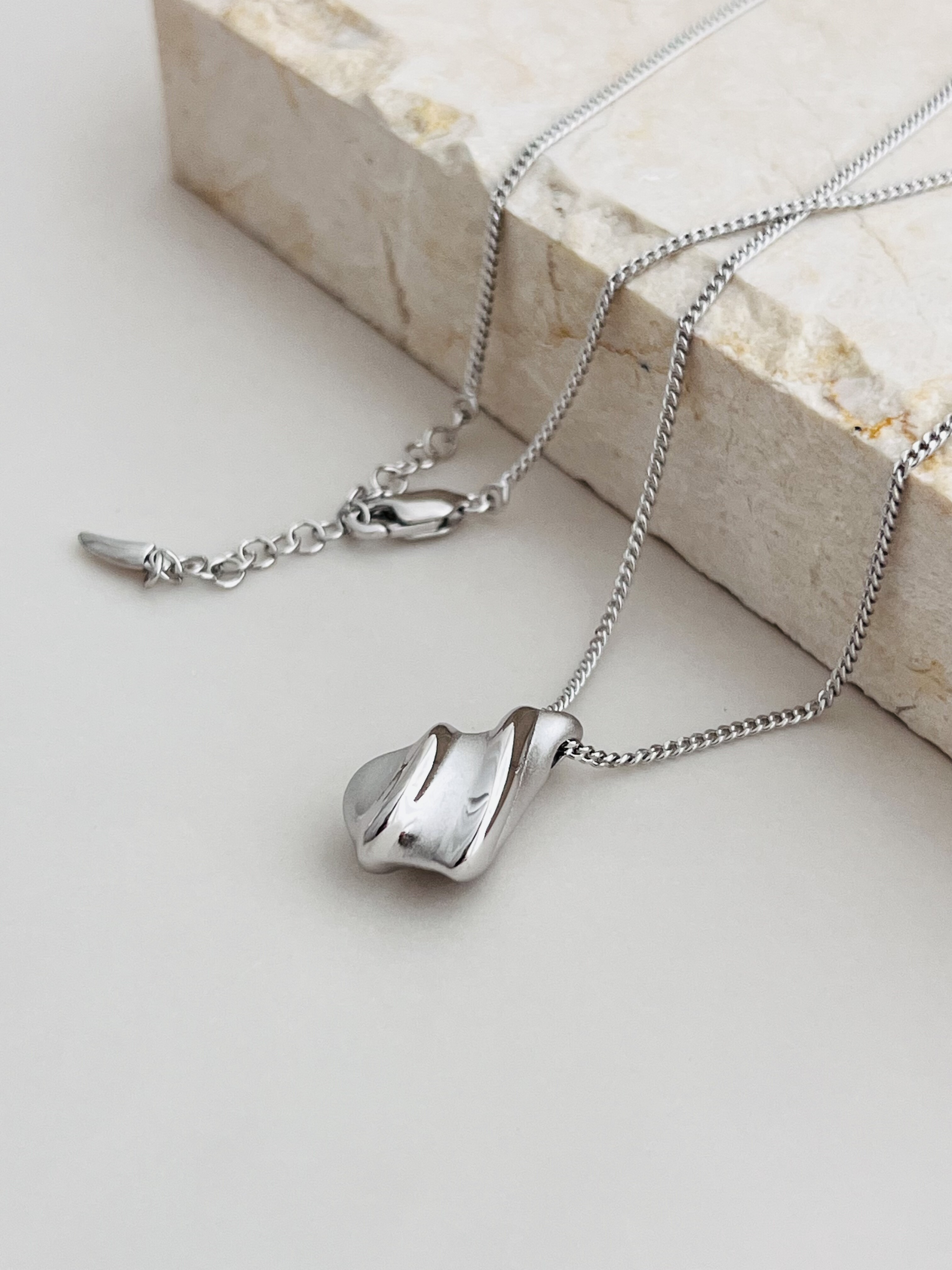 WZ & SILVER Designer S925 SILVER Rhodium Plated Gold Water Ripple Pendant Necklace Classy Minimalist Easiest for match