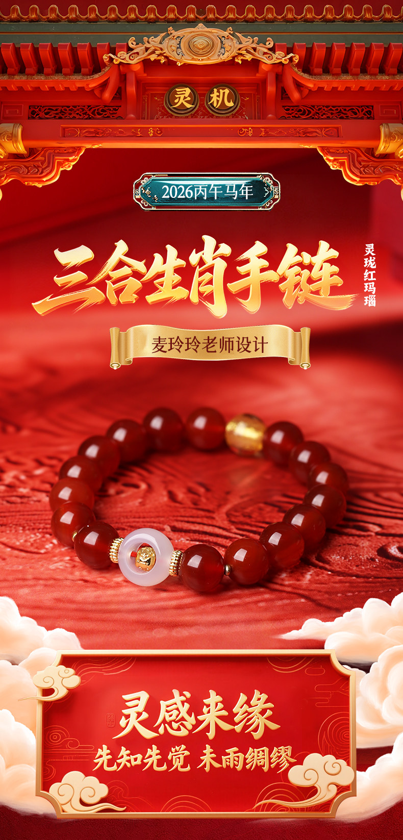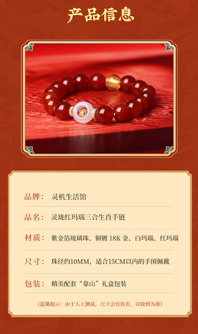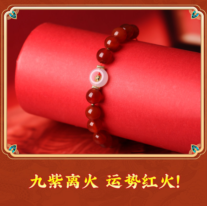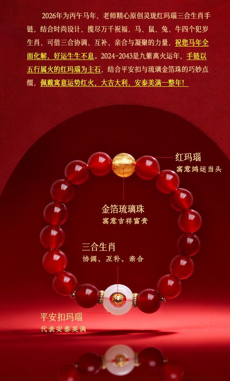Lingji Mai Lingling 2026 Year of the Horse Linglong Three Harmonies Agate Zodiac Bracelet for Ox, Rabbit, and Rat Birth Year Tai Sui Bracelet