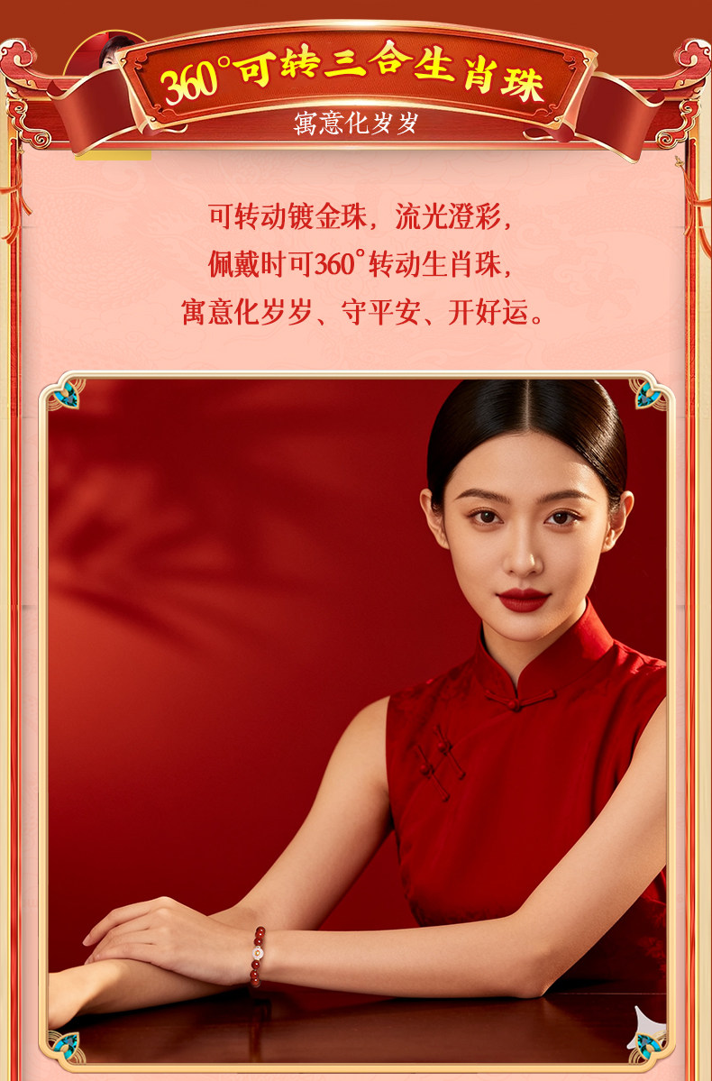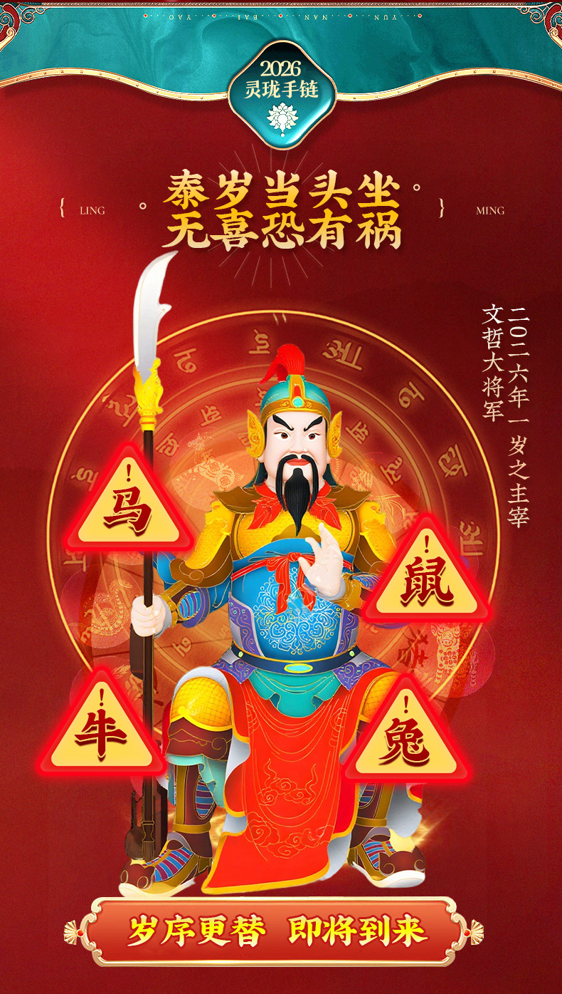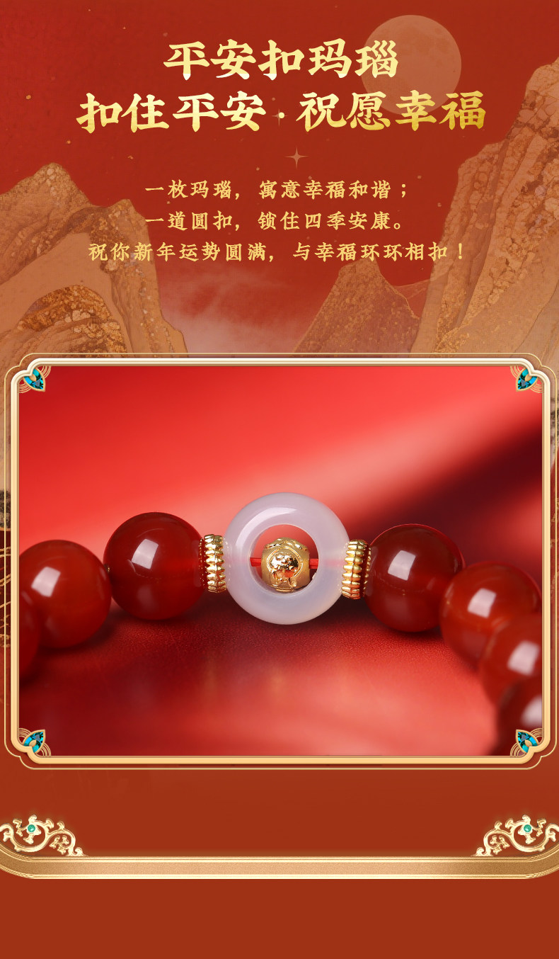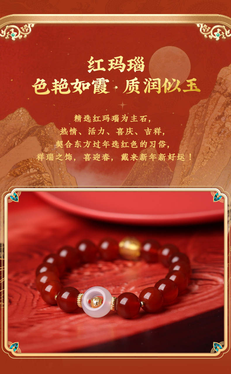 Lingji Mai Lingling 2026 Year of the Horse Linglong Three Harmonies Agate Zodiac Bracelet for Ox, Rabbit, and Rat Birth Year Tai Sui Bracelet
