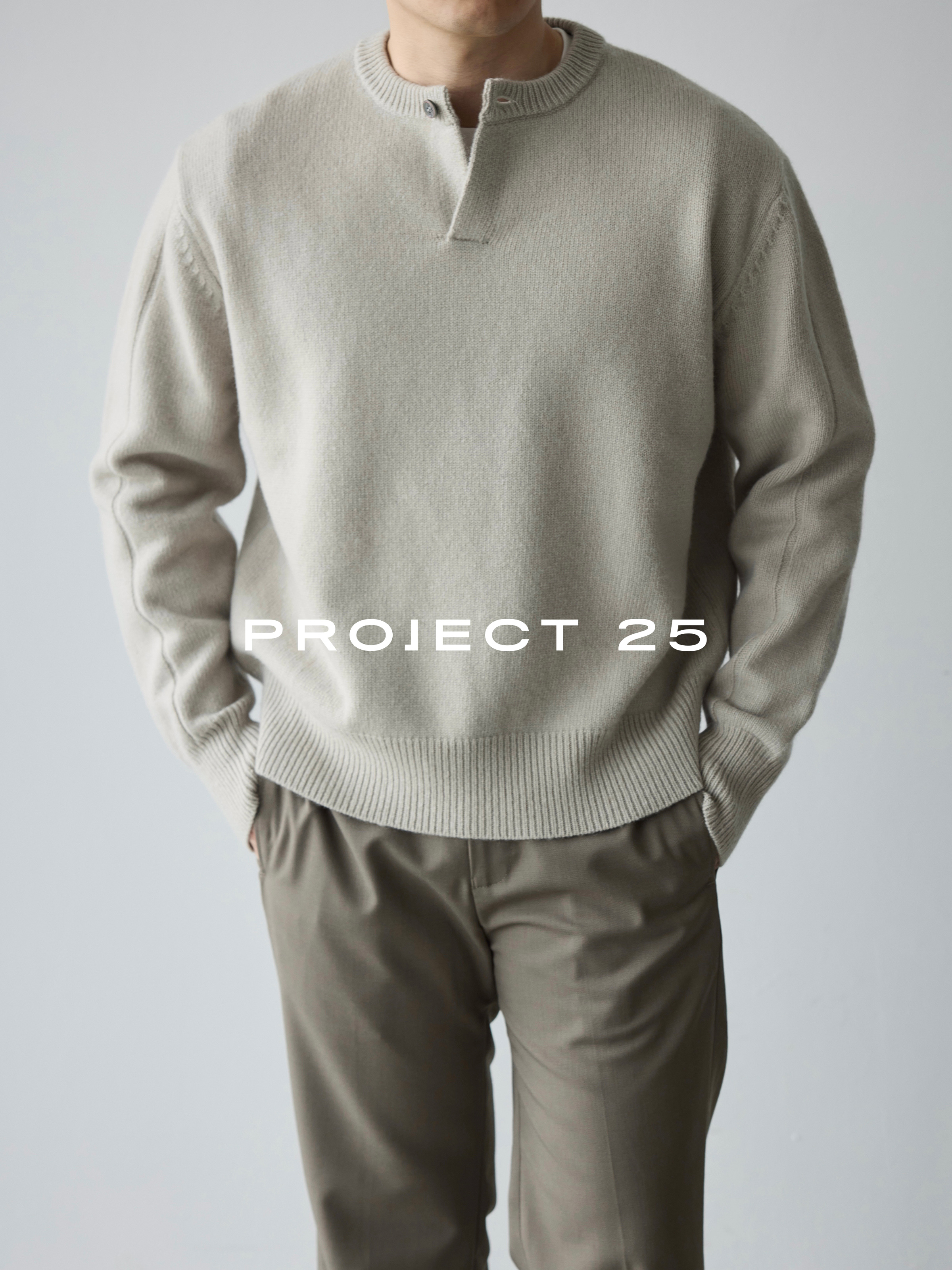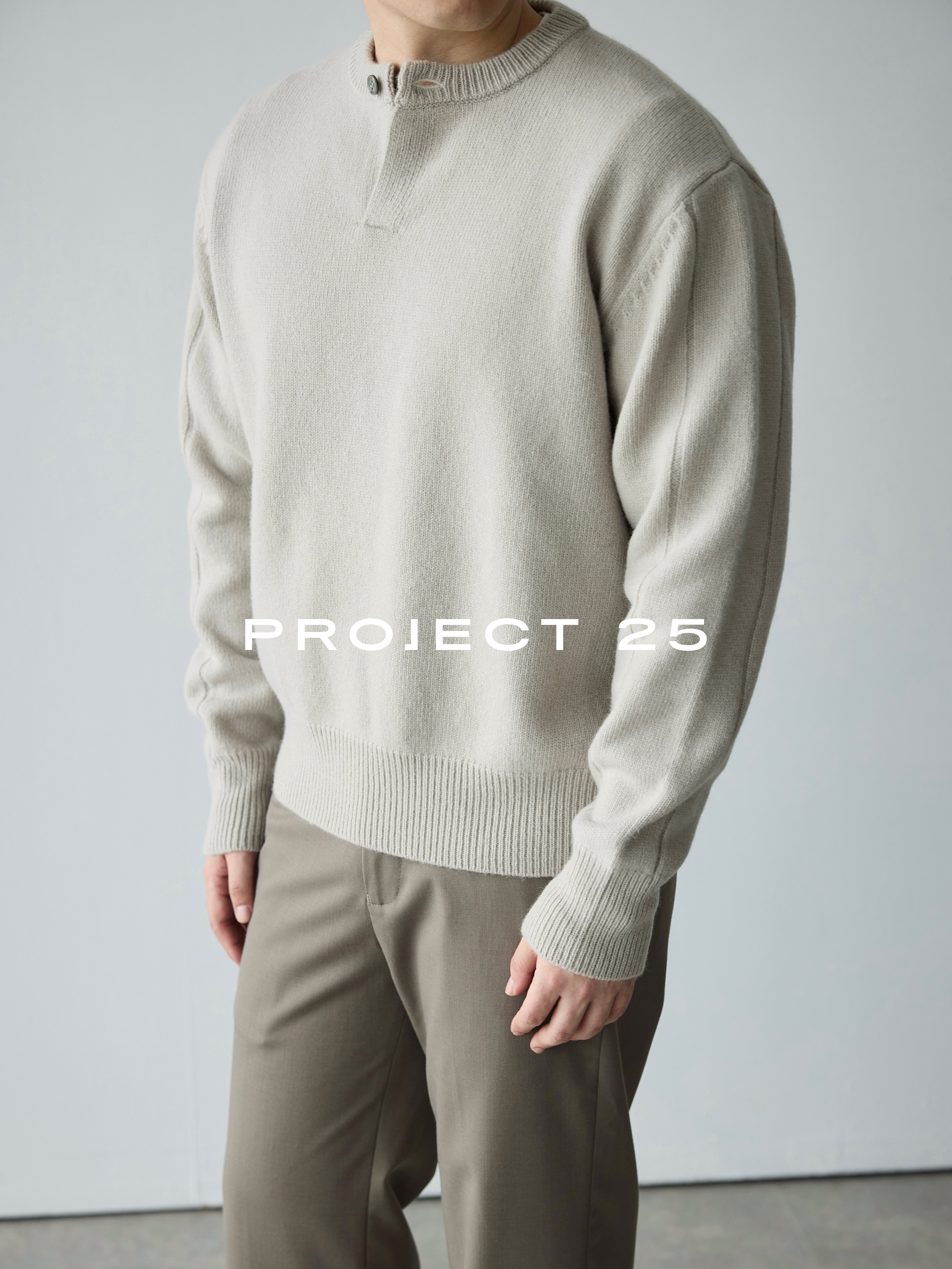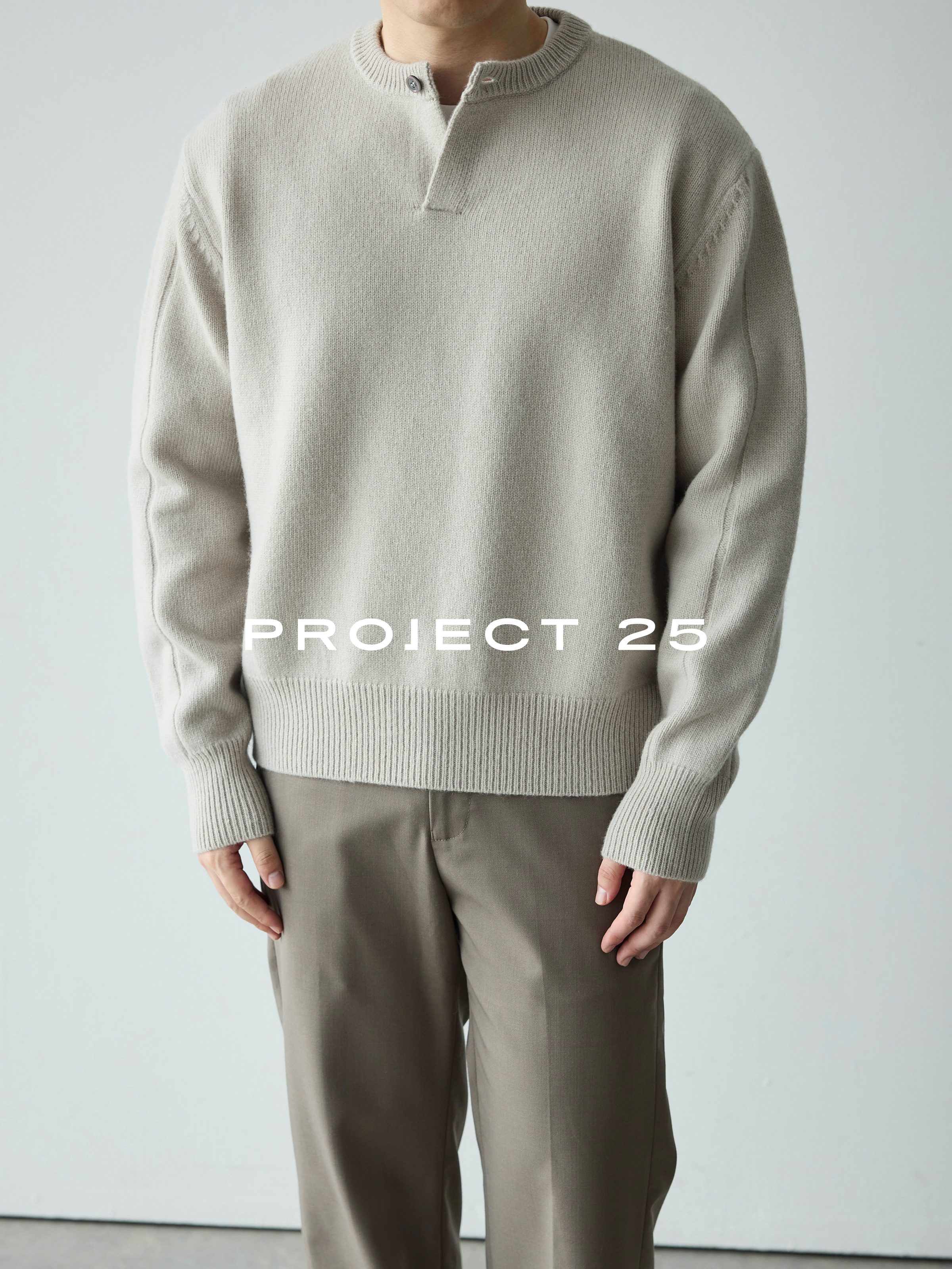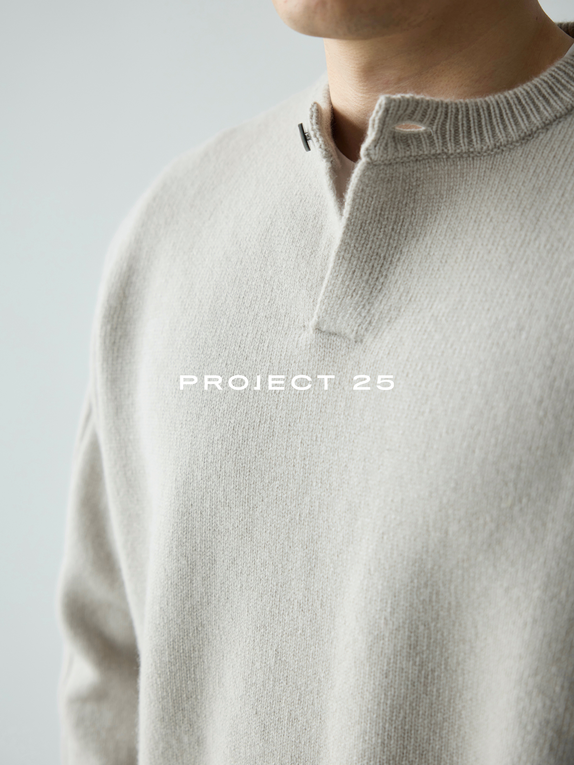 Project 25 7-Gauge 16-Count Italian 100% Wool Single-Button Henry Collar Pullover Knit Sweater