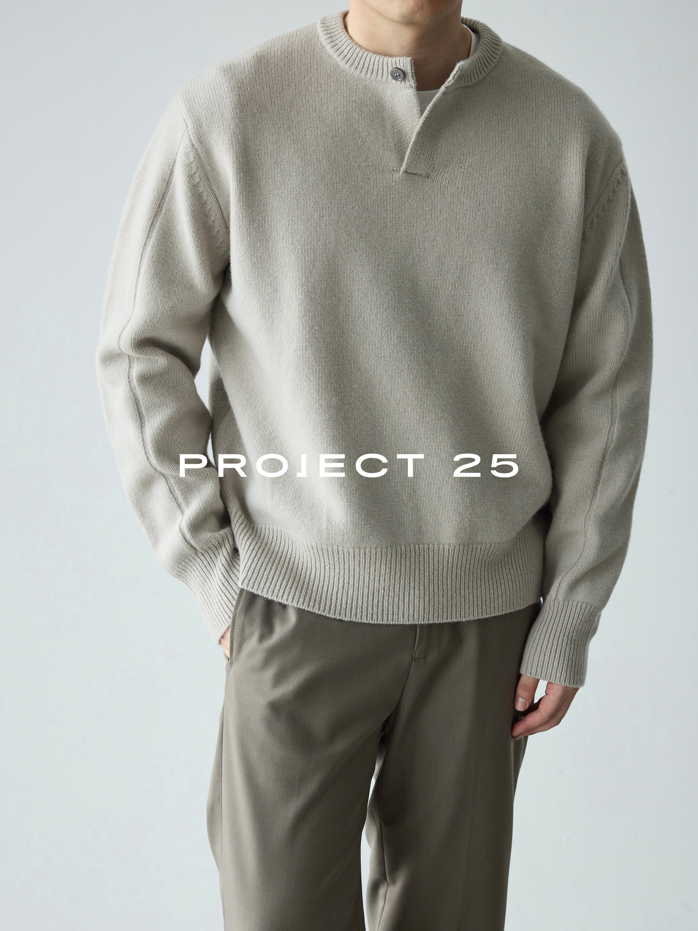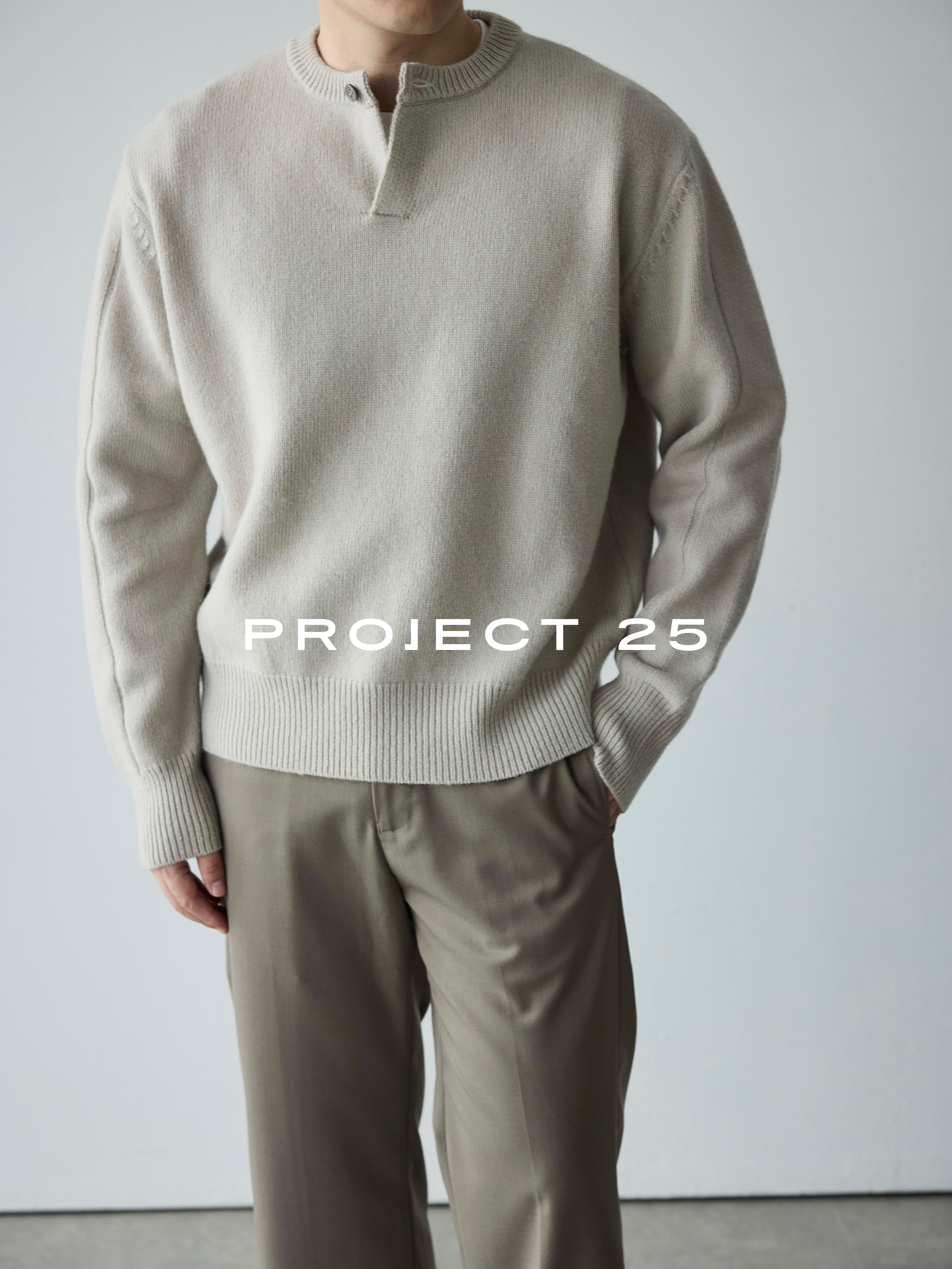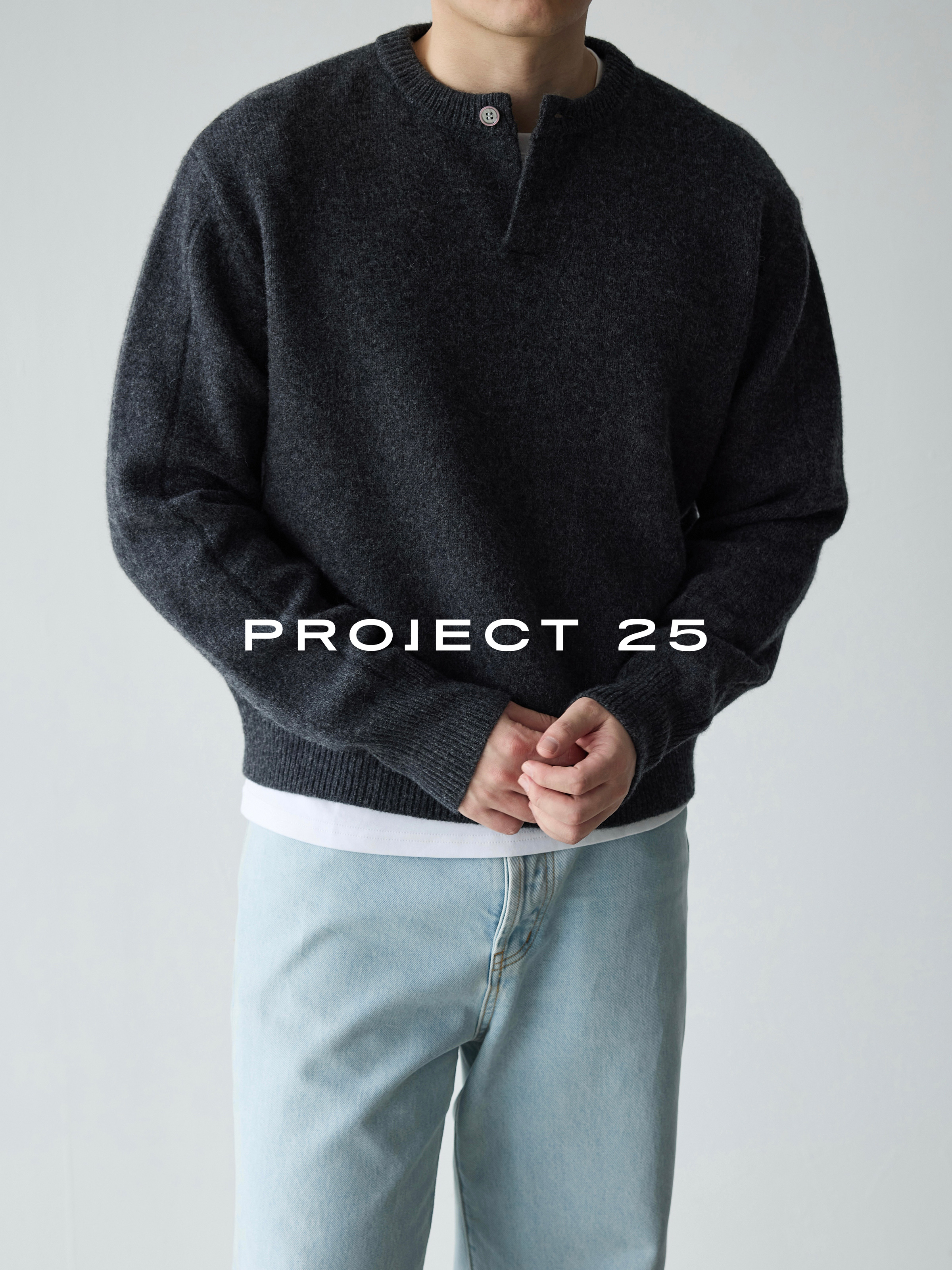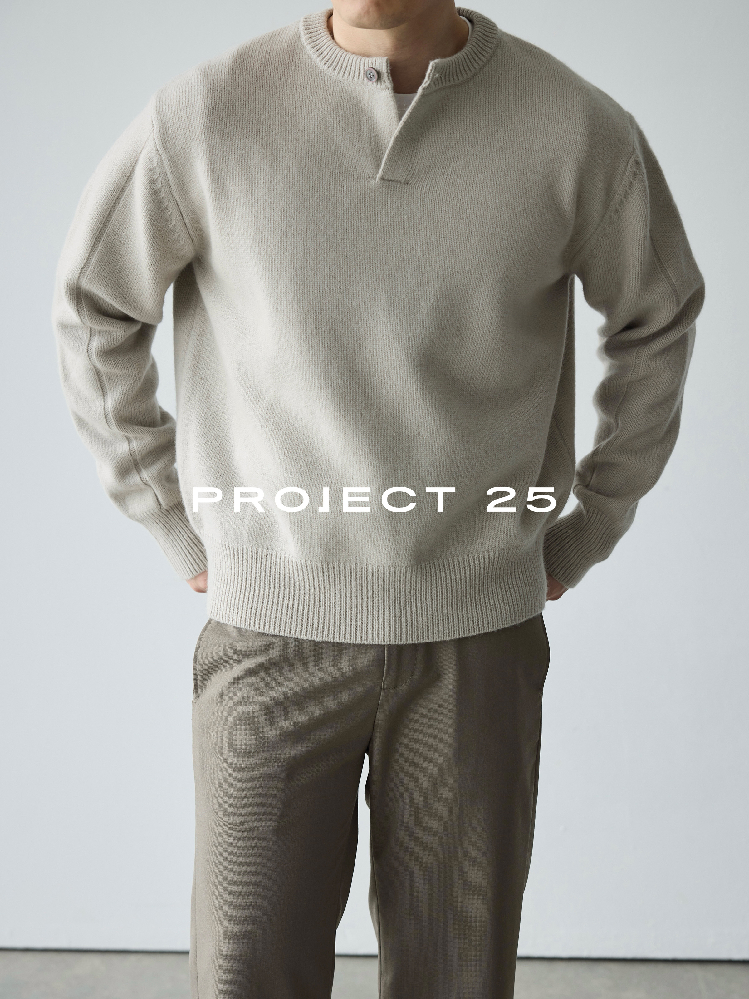 Project 25 7-Gauge 16-Count Italian 100% Wool Single-Button Henry Collar Pullover Knit Sweater