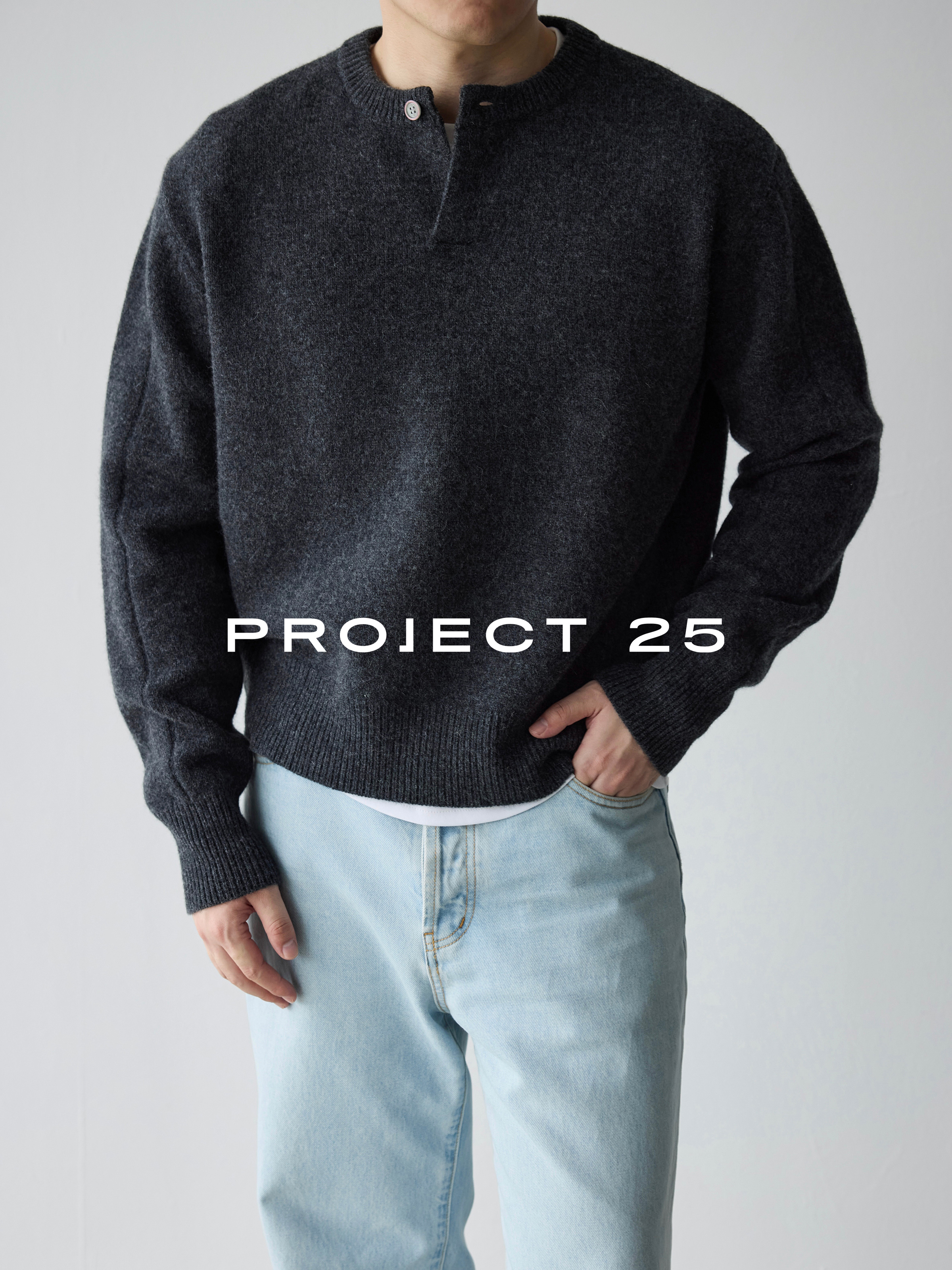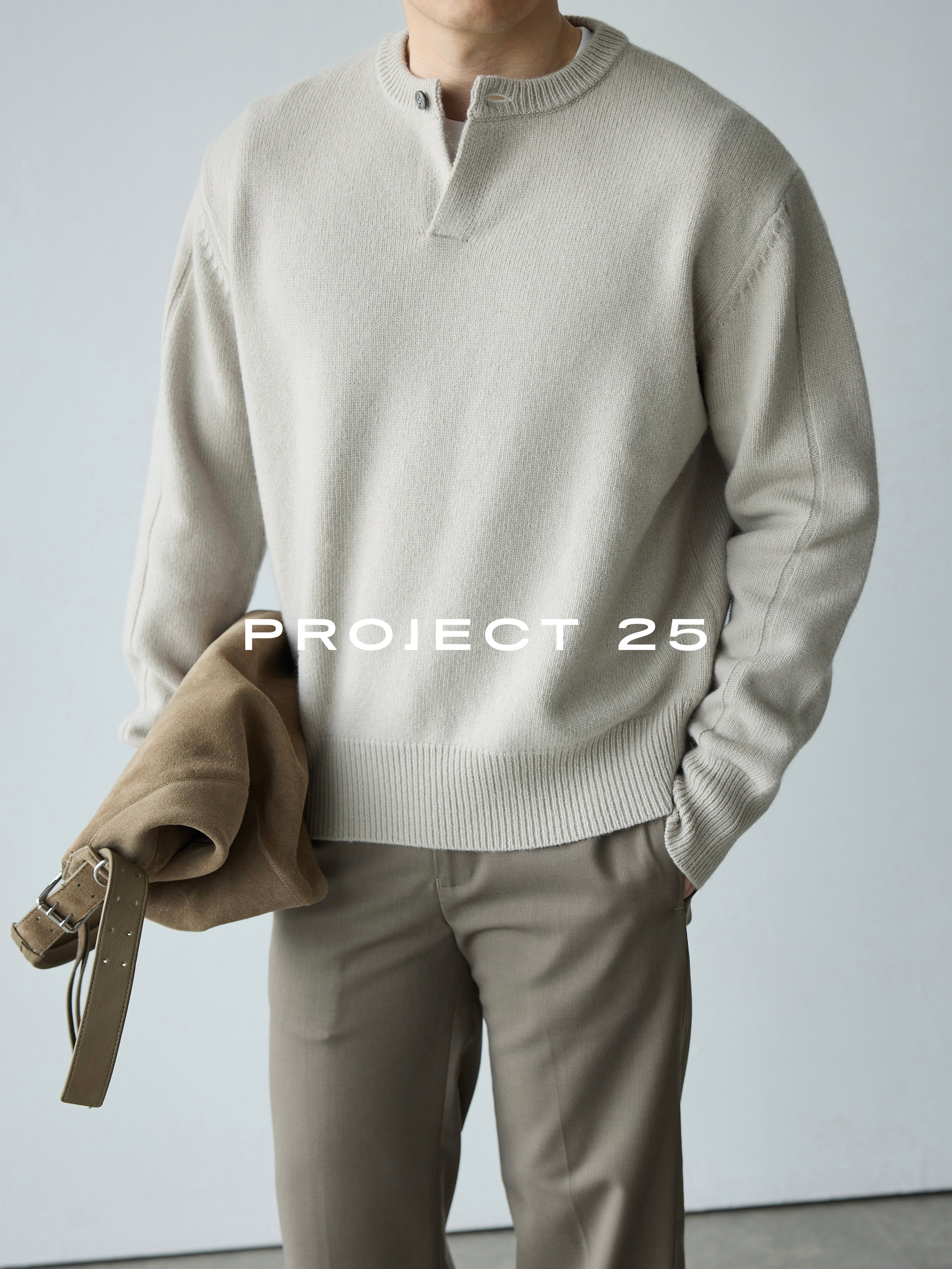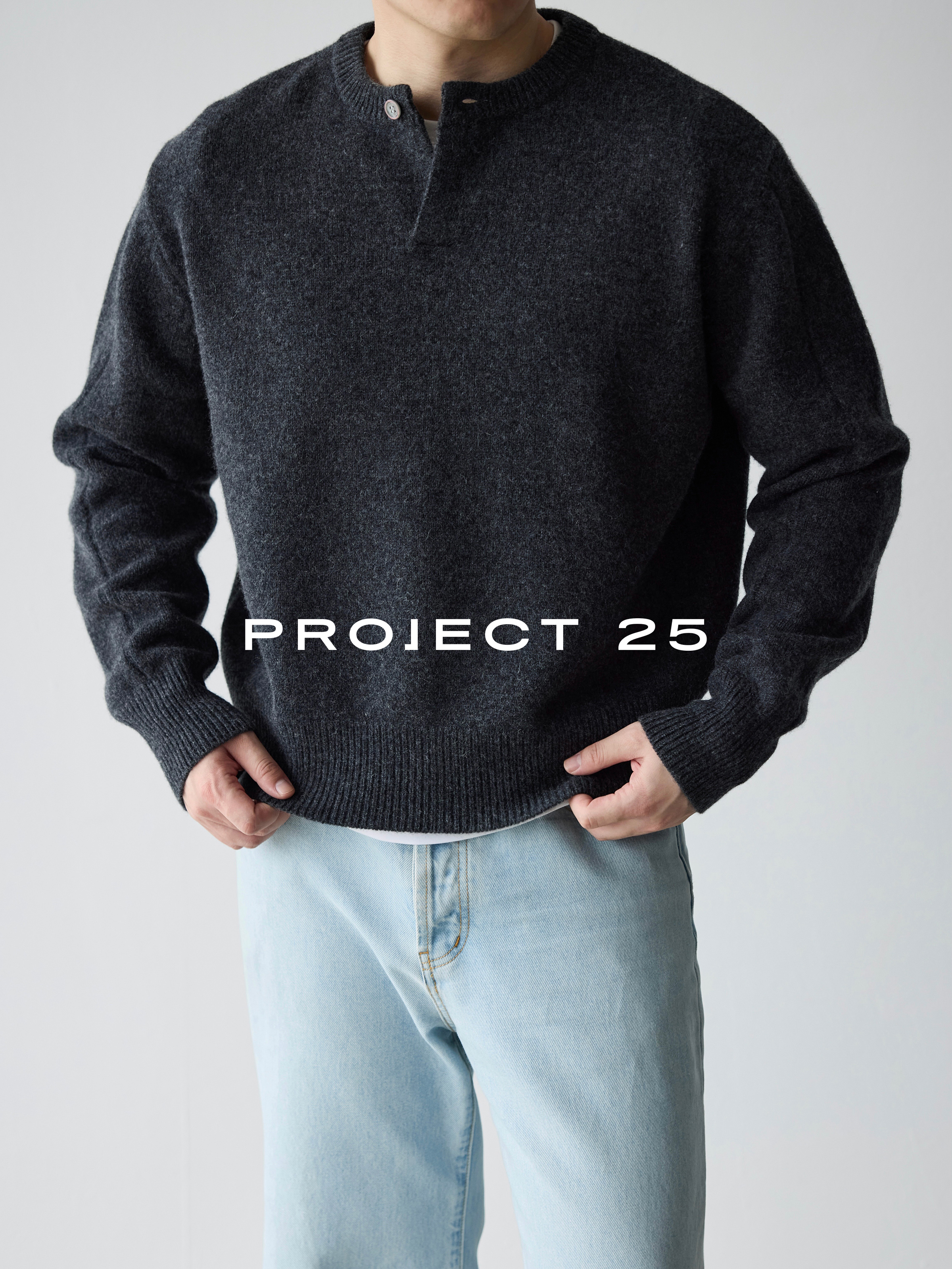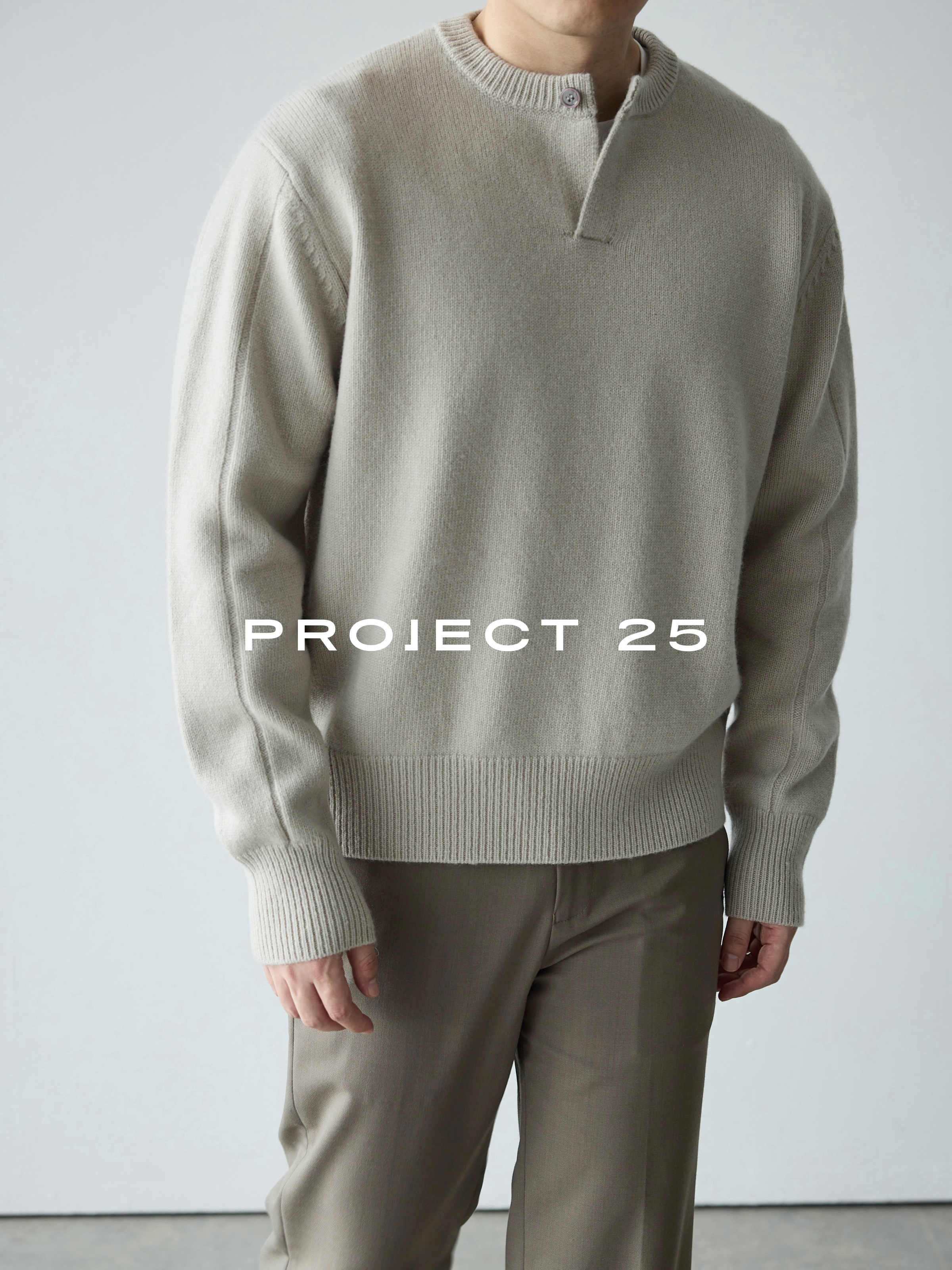Project 25 7-Gauge 16-Count Italian 100% Wool Single-Button Henry Collar Pullover Knit Sweater