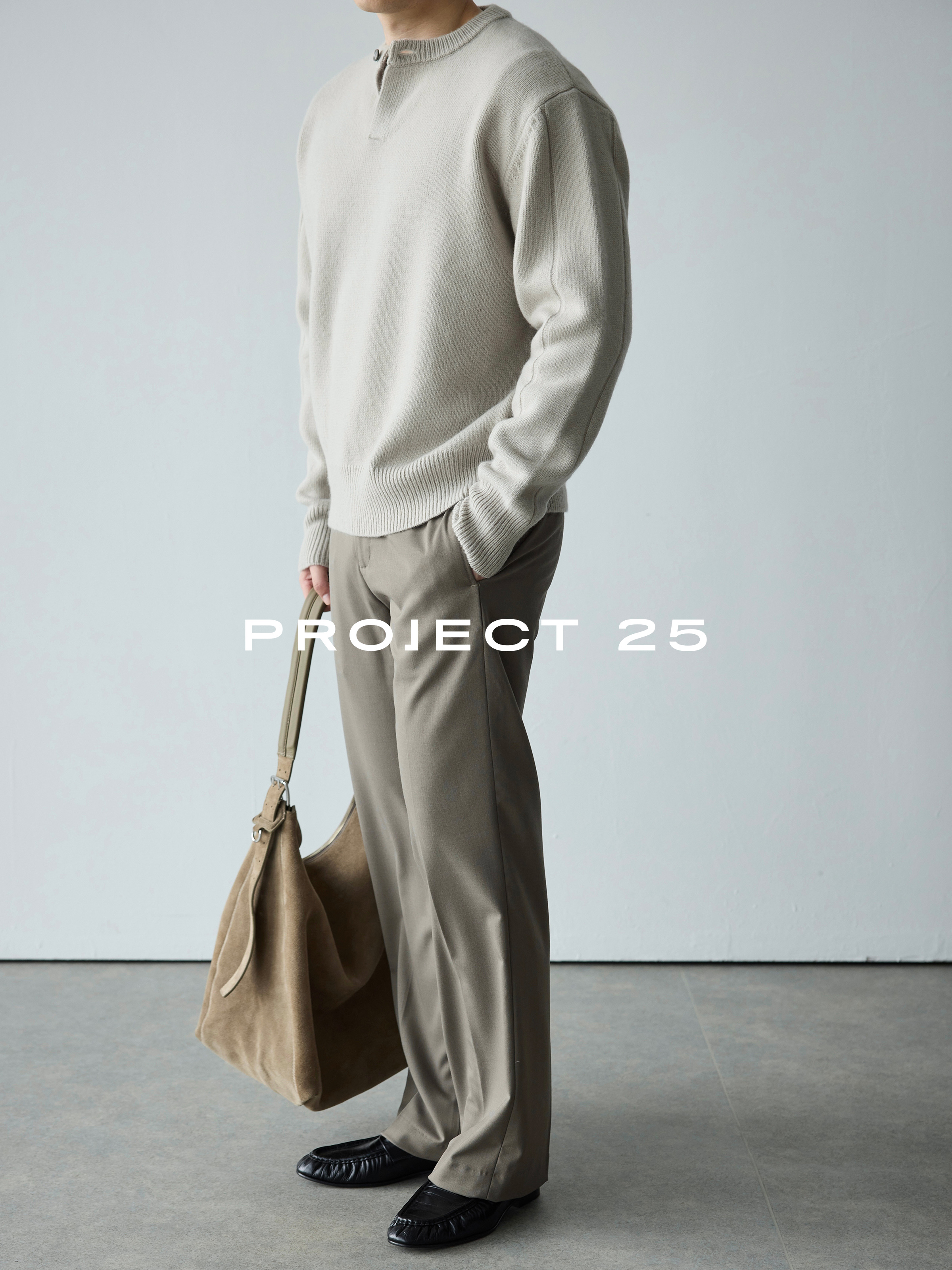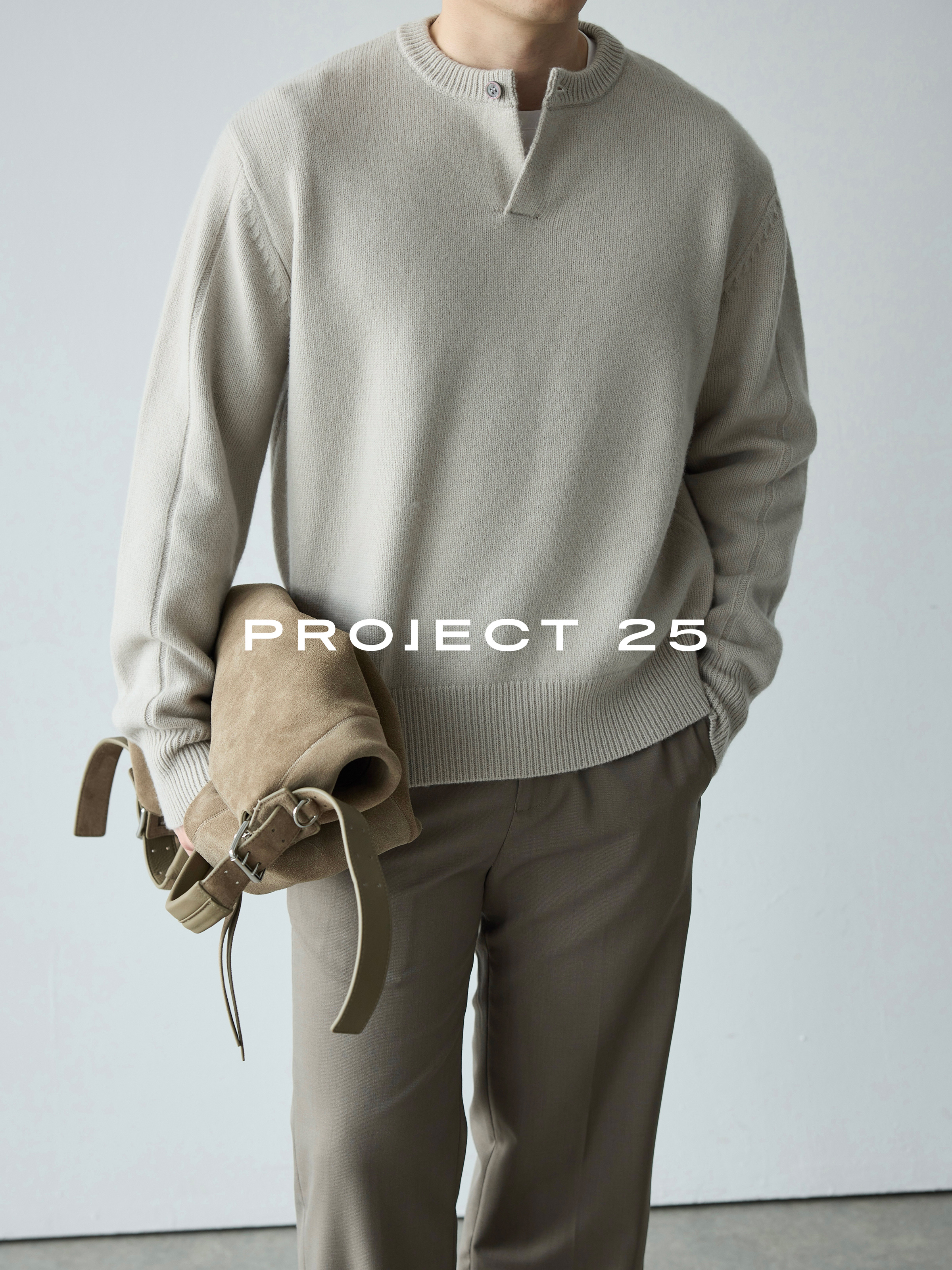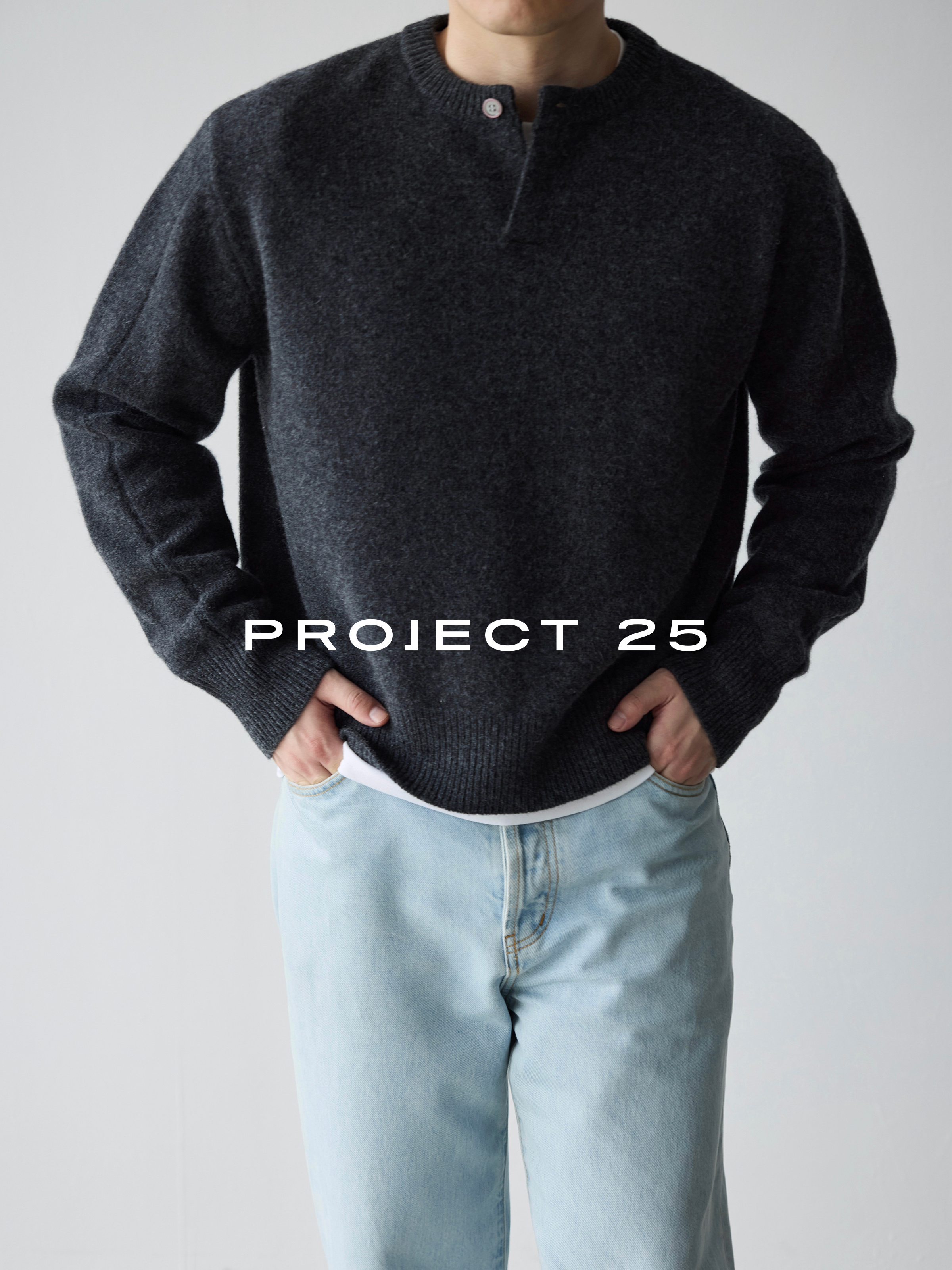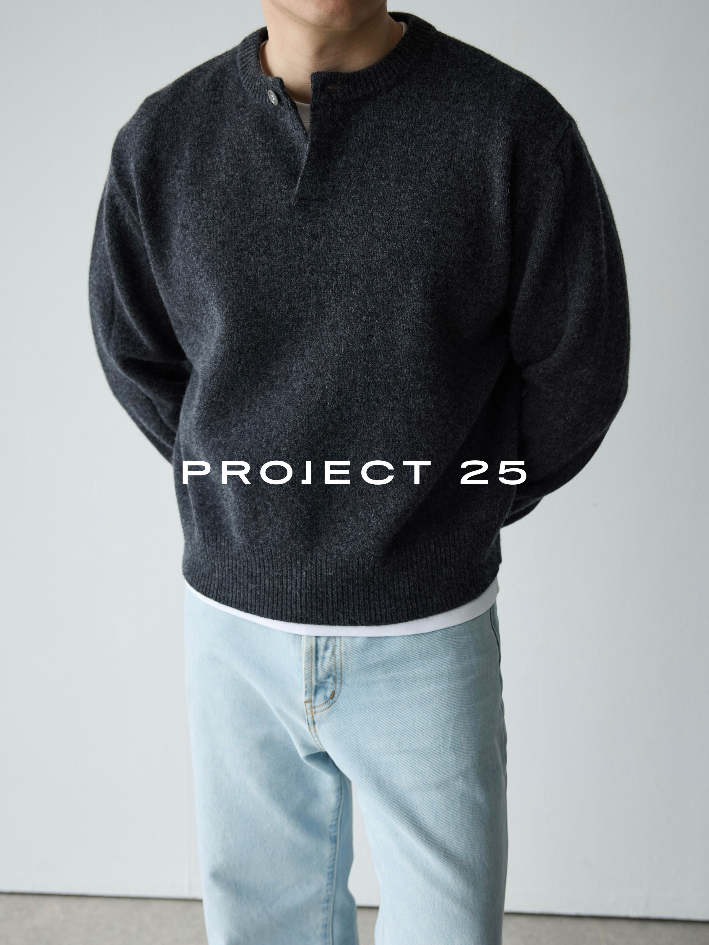 Project 25 7-Gauge 16-Count Italian 100% Wool Single-Button Henry Collar Pullover Knit Sweater