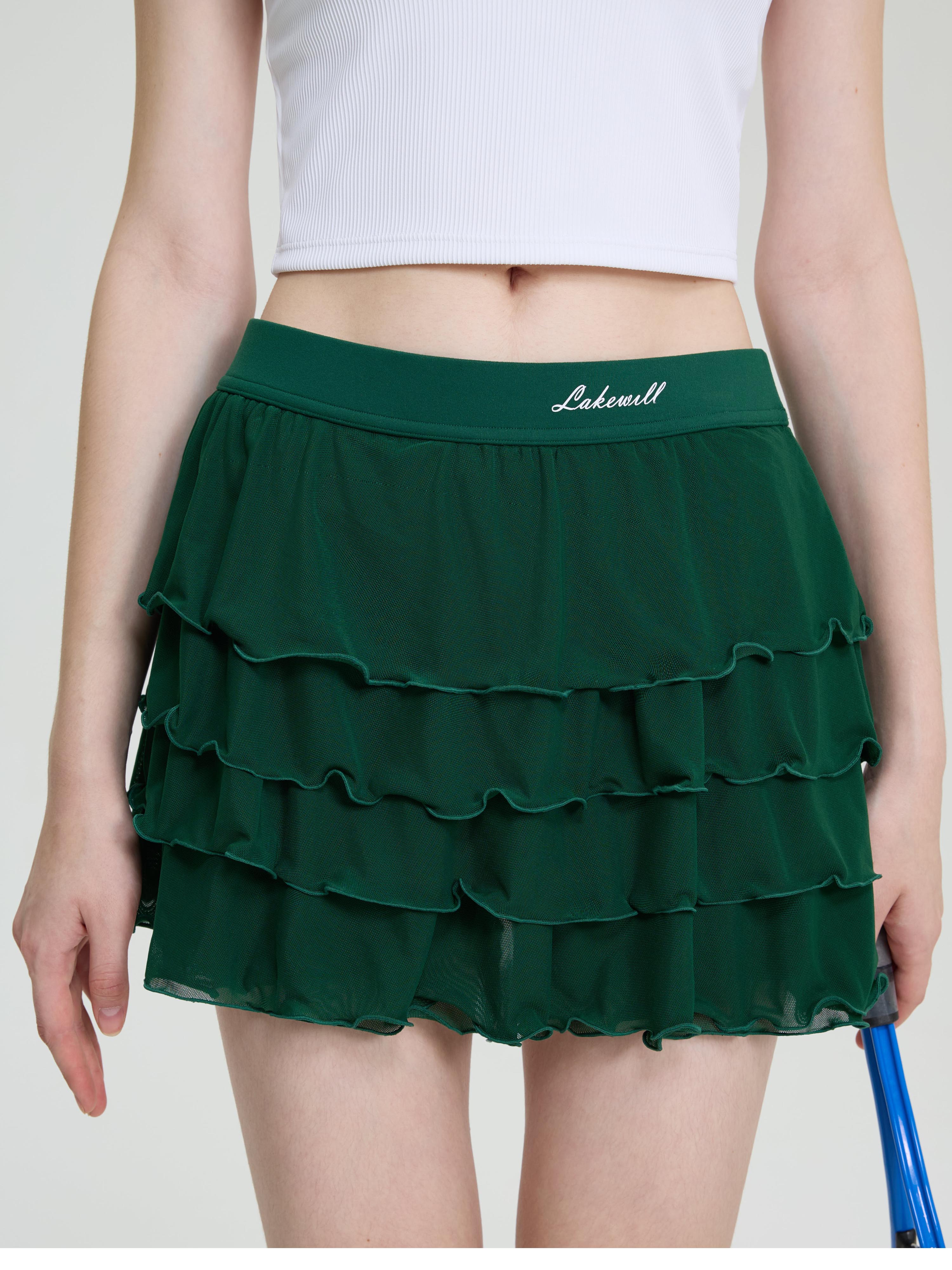 Lakewill Slimming A-Line Lace Mesh Cake Skirt for Women, Body-Covering Short Skirt, Slimming Half Skirt, Tennis Sports Skirt